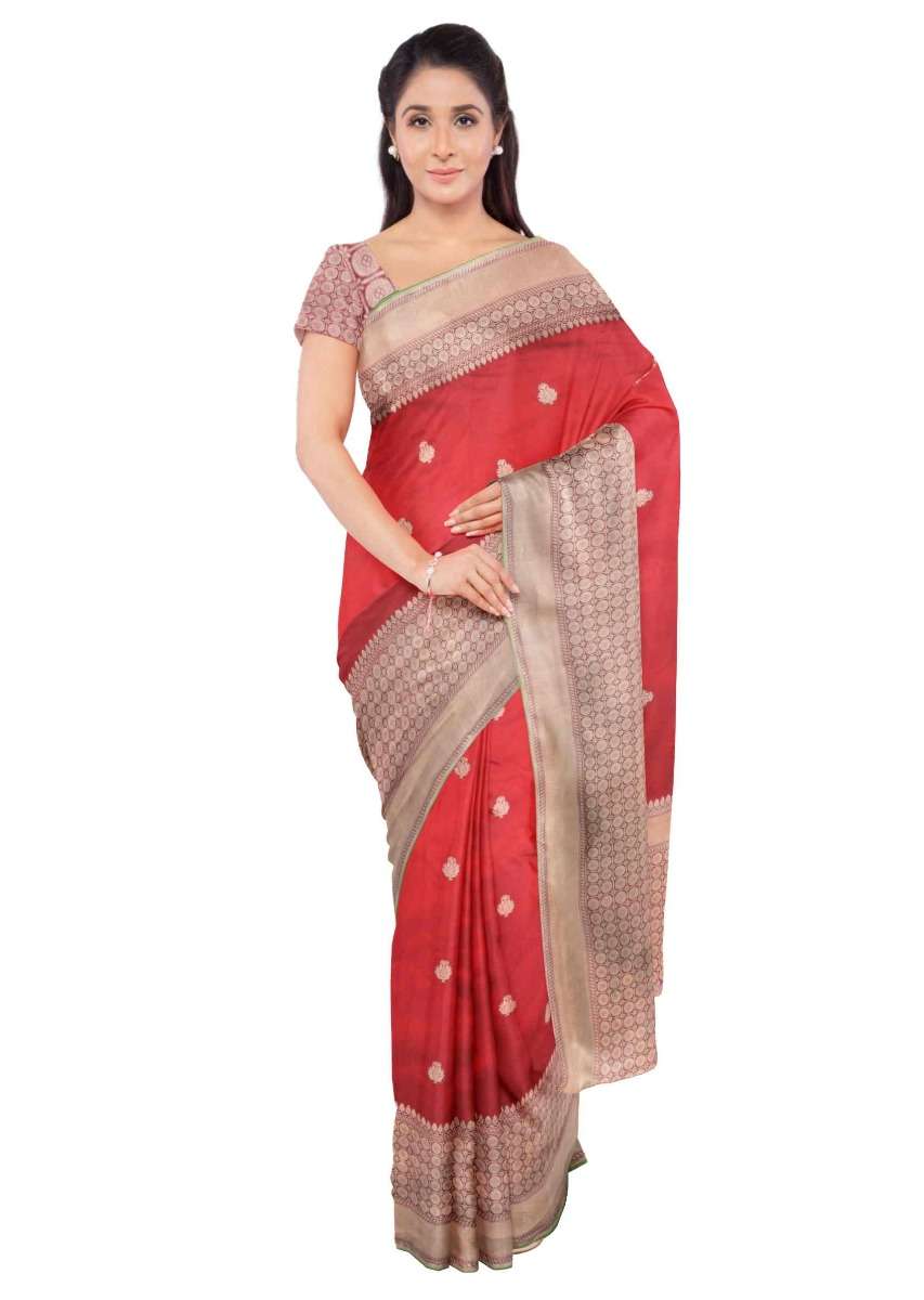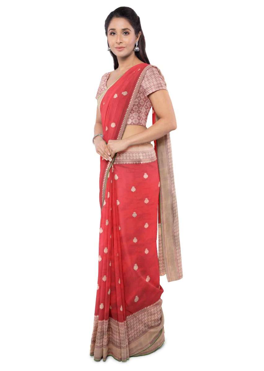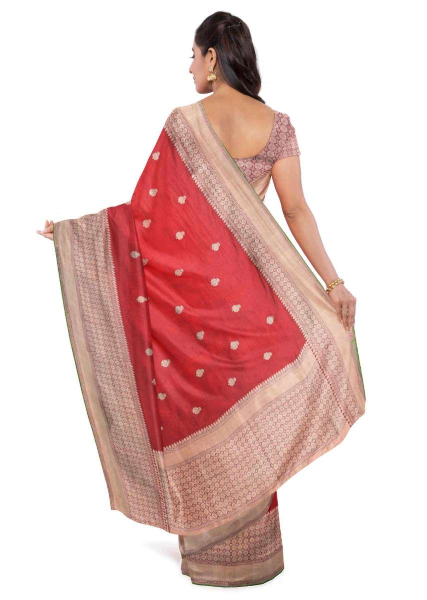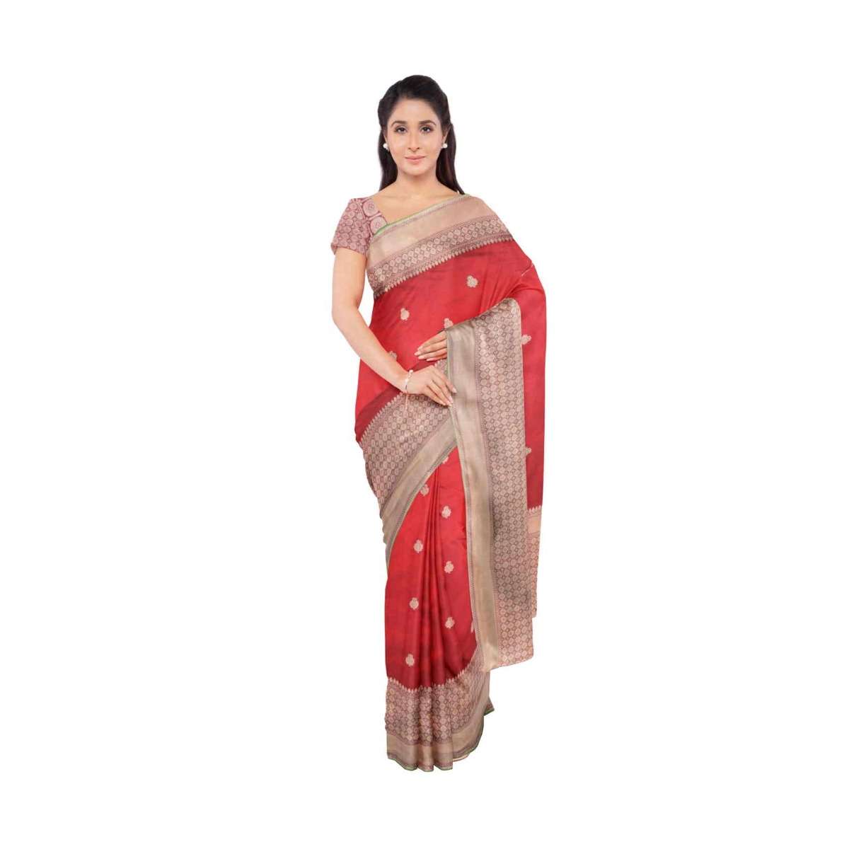 Red Orange Banarasi Silk Saree With Matching Brocade Blouse Piece Online - Kalki Fashion