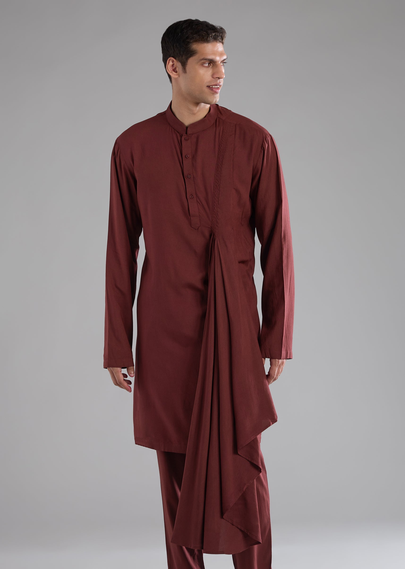 Fit Tips:The front buttons and hook eye closure provide a structured, comfortable fit, while the tailored pants ensure ease of movement and a clean silhouette.size_chart_new.mens-kurta