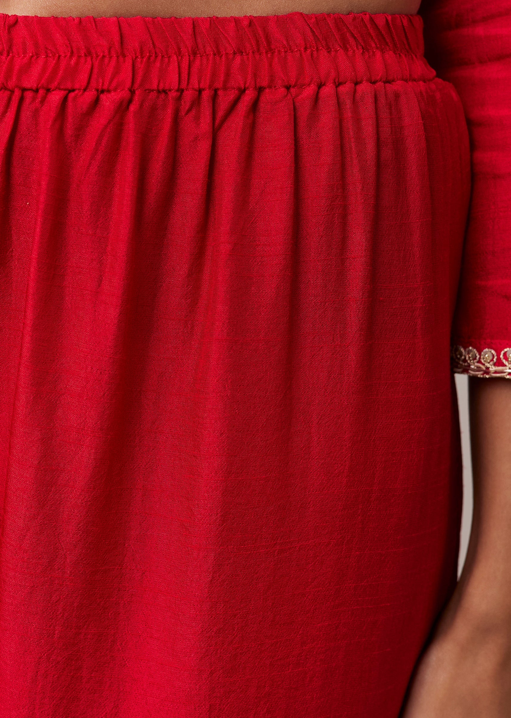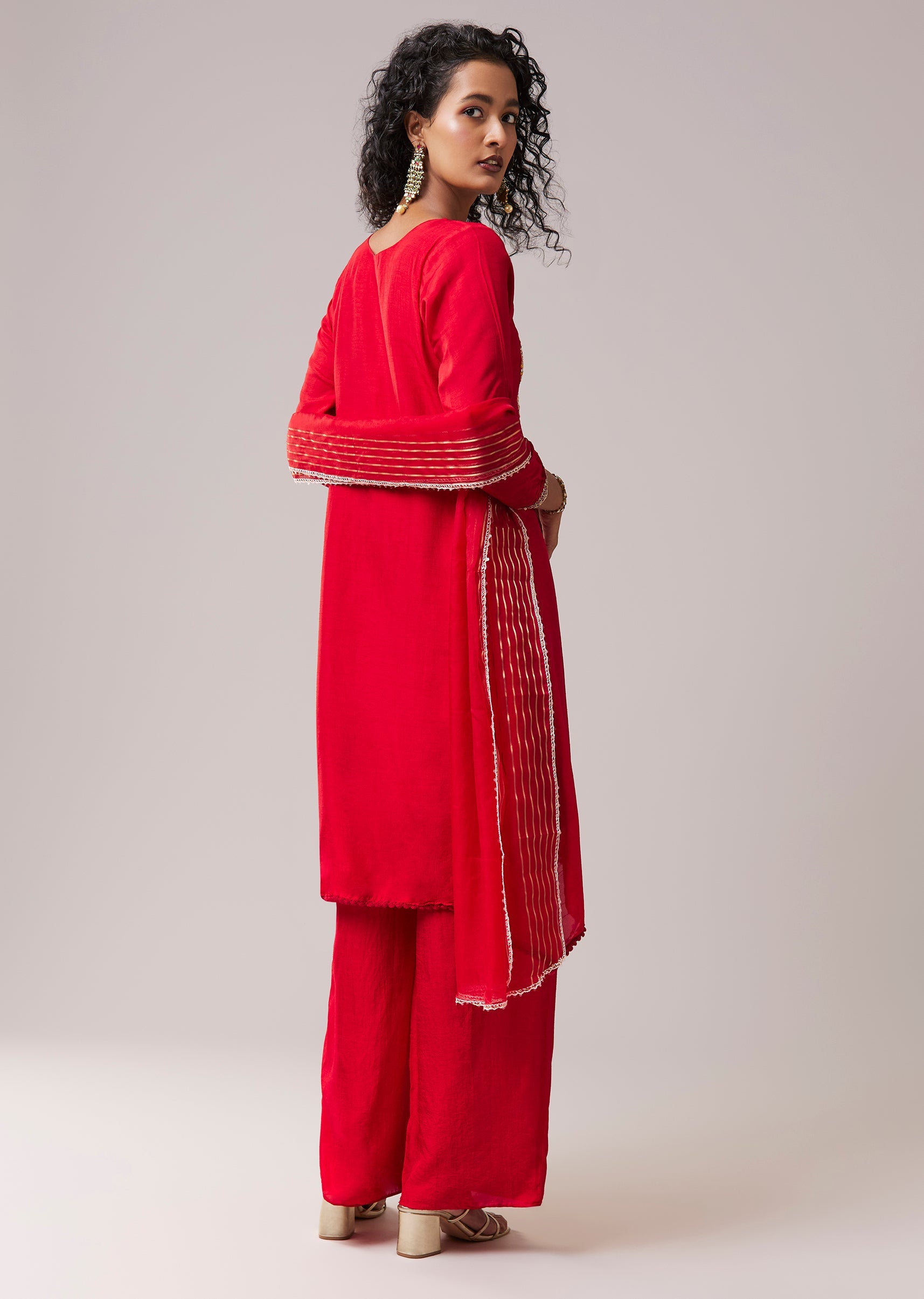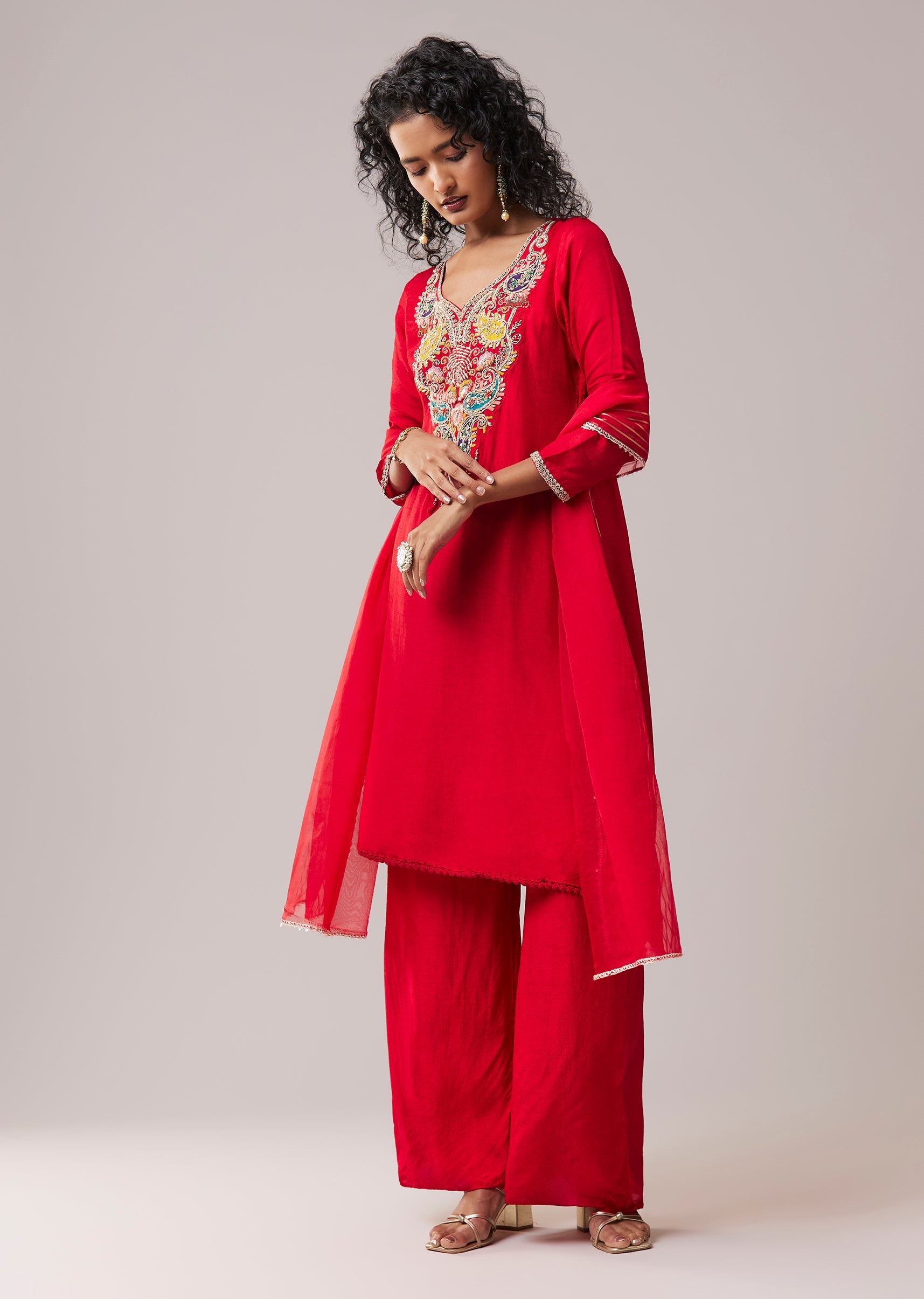 Red Resham Work Silk Kurta Palazzo Set