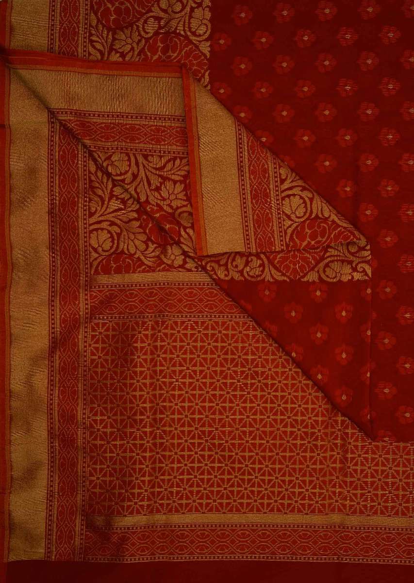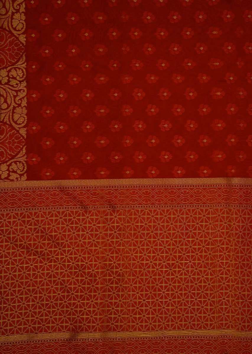 Red Saree In Chanderi Silk With Floral Weaved Pattern Online - Kalki Fashion