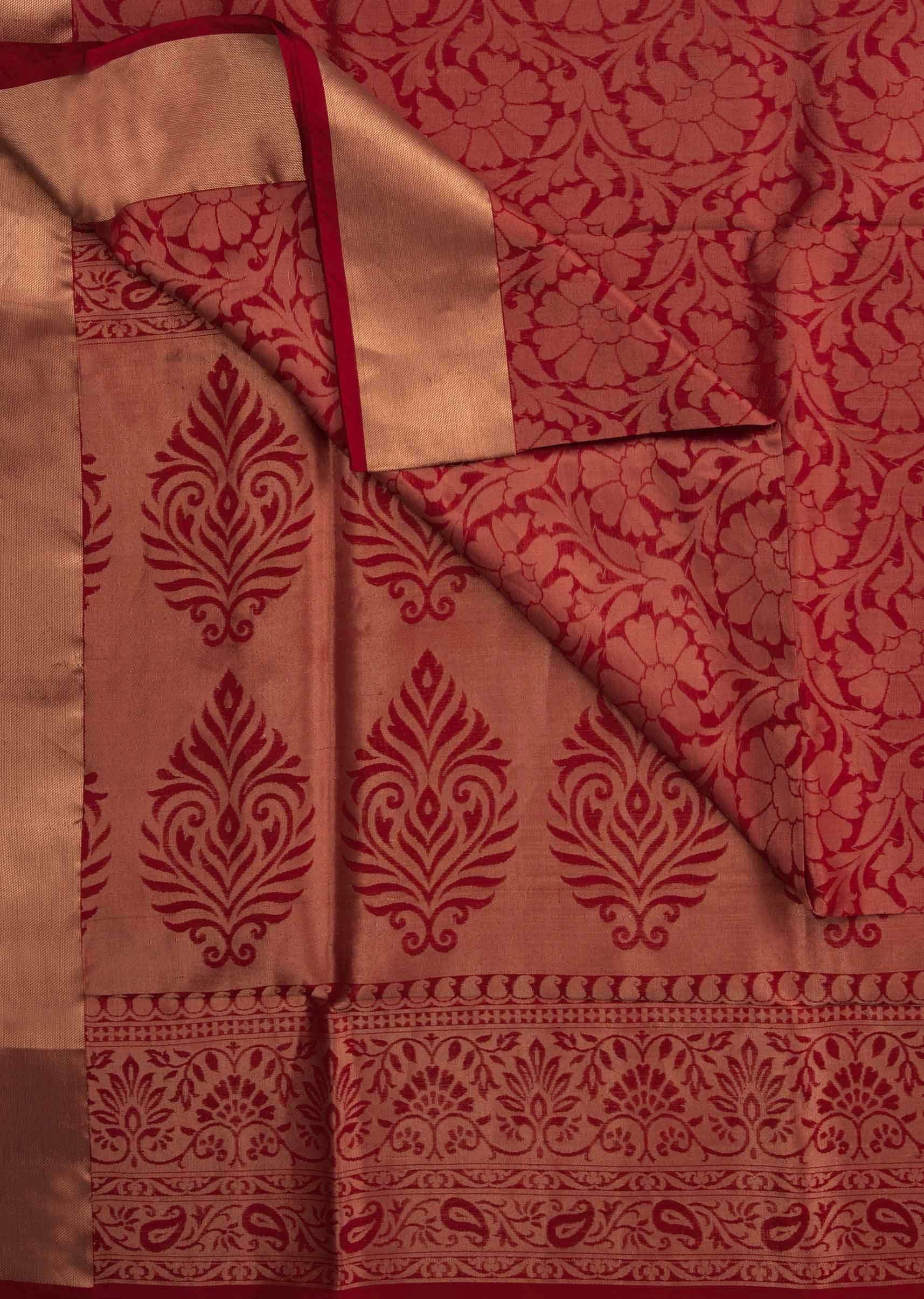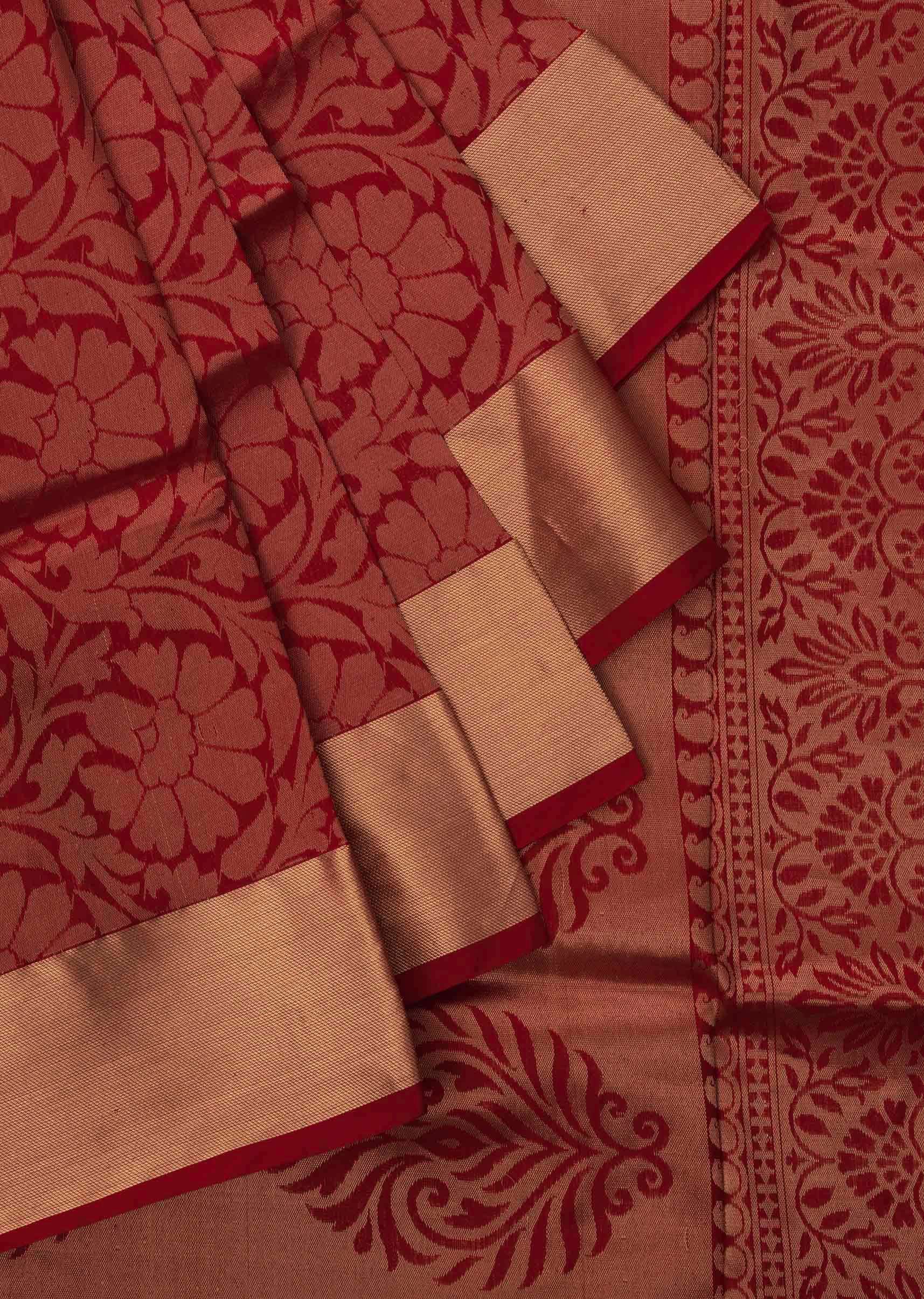 Red Saree In Silk Beautified In Weaved Embroidery Online - Kalki Fashion