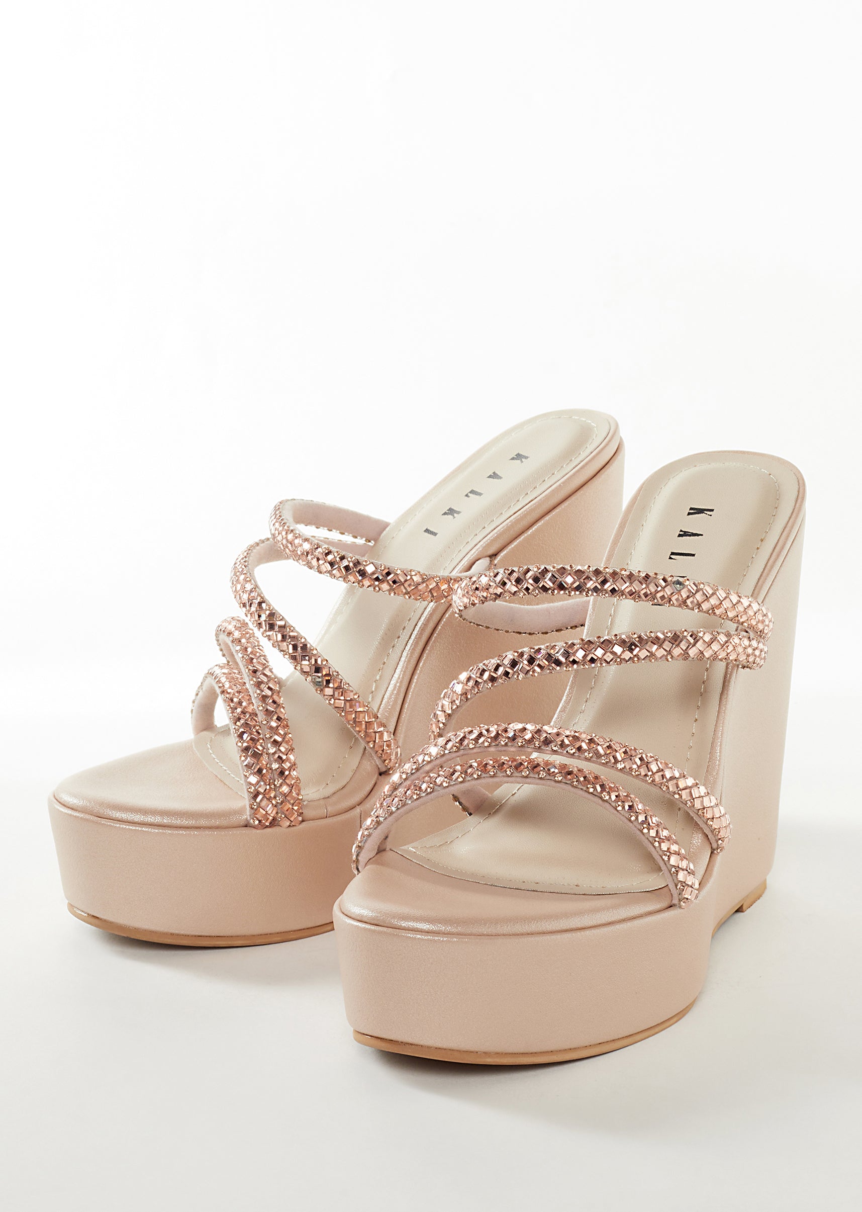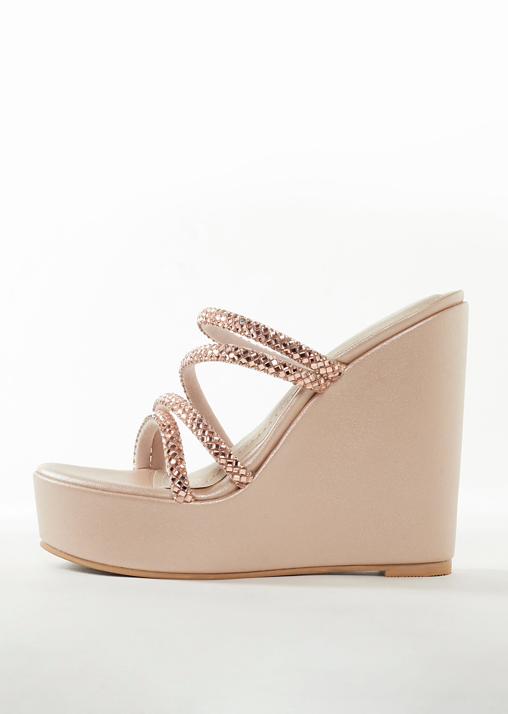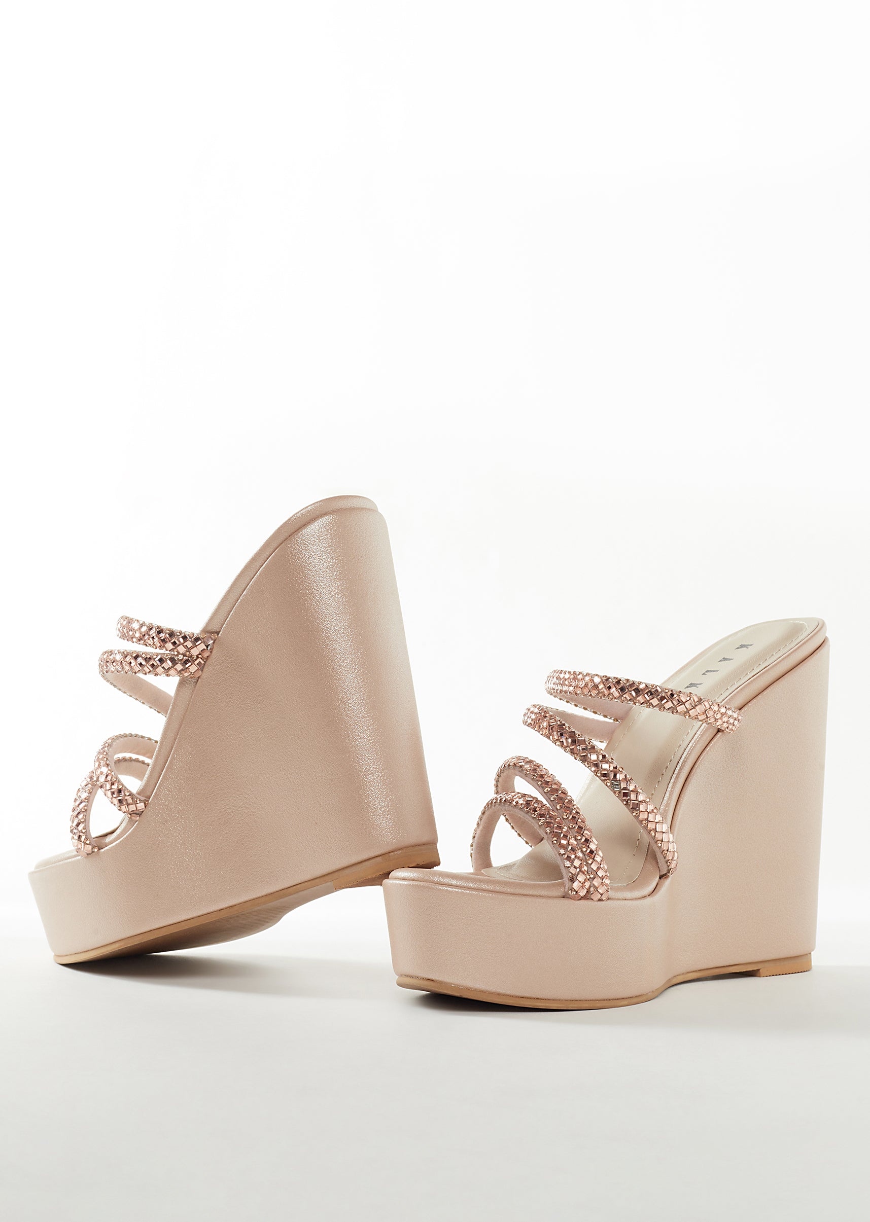 Elegant and contemporary, these rose gold footwear pieces bring a soft shimmer perfect for receptions, cocktail evenings, and wedding celebrations. Crafted in smooth faux leather, the design features delicate embellished... More Product Details