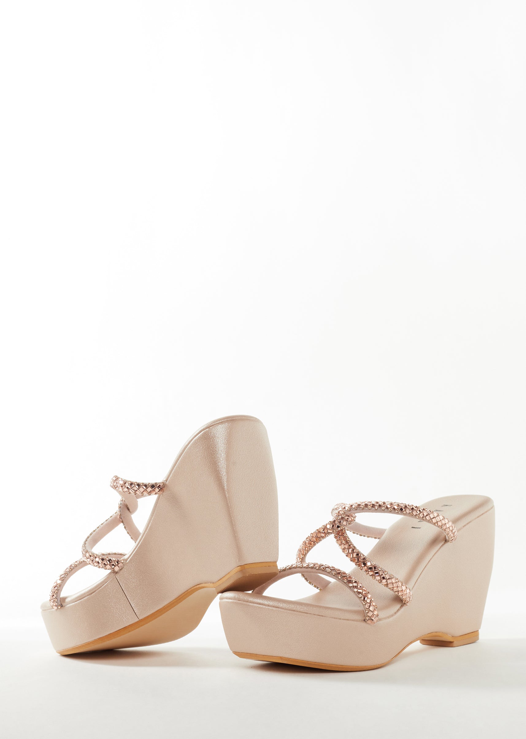 Rose Gold Womens Footwear With Embellished Detail Work