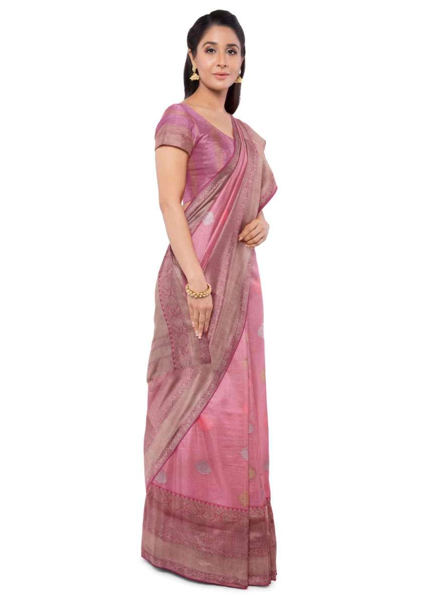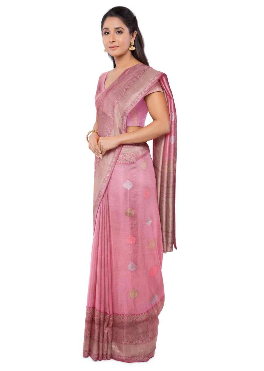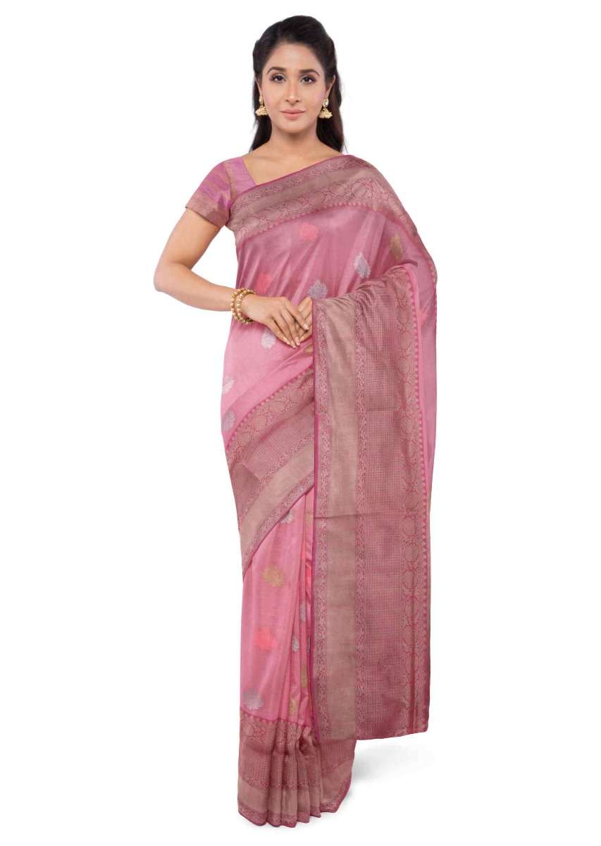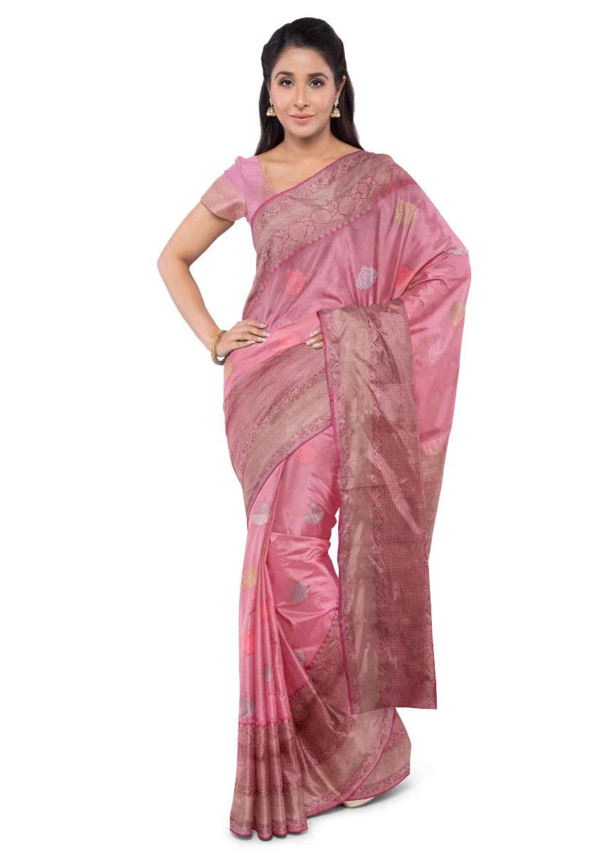 Rose pink banarasi saree with matching blouse piece only on Kalki
