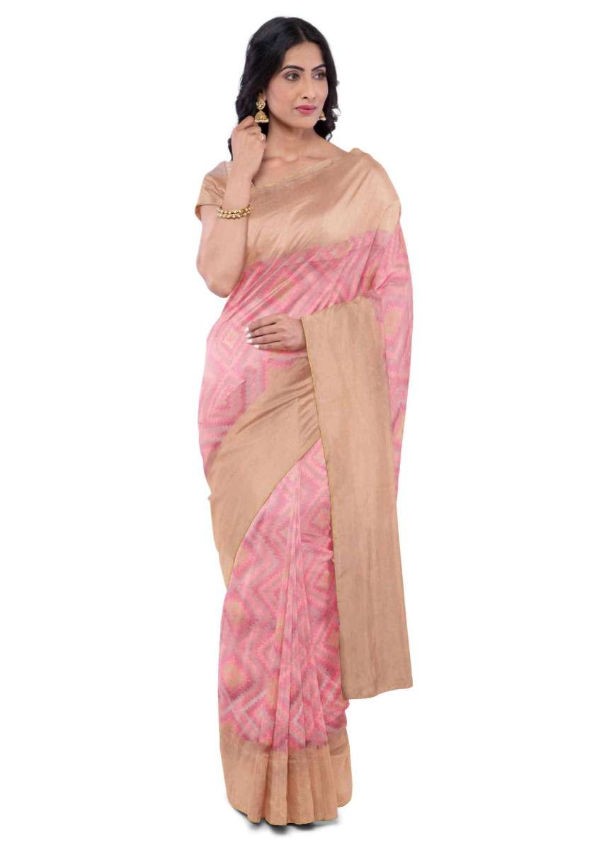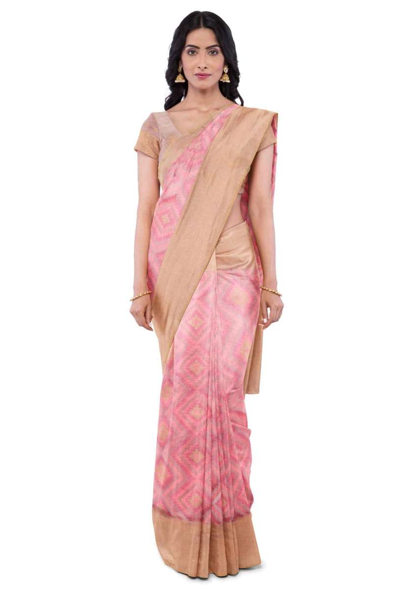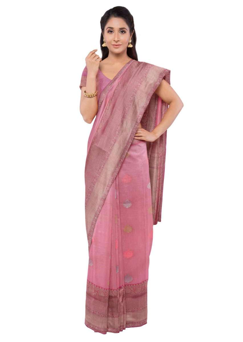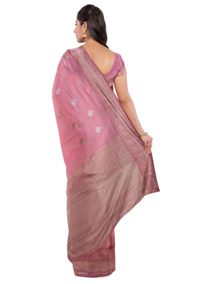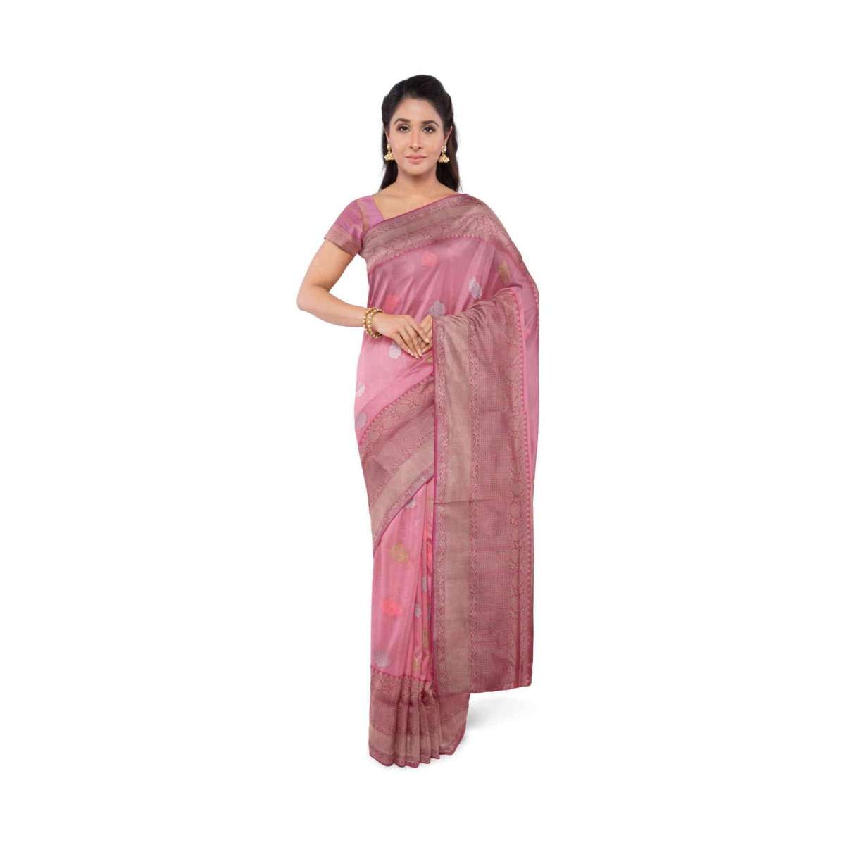 Rose pink banarasi saree with matching blouse piece only on Kalki