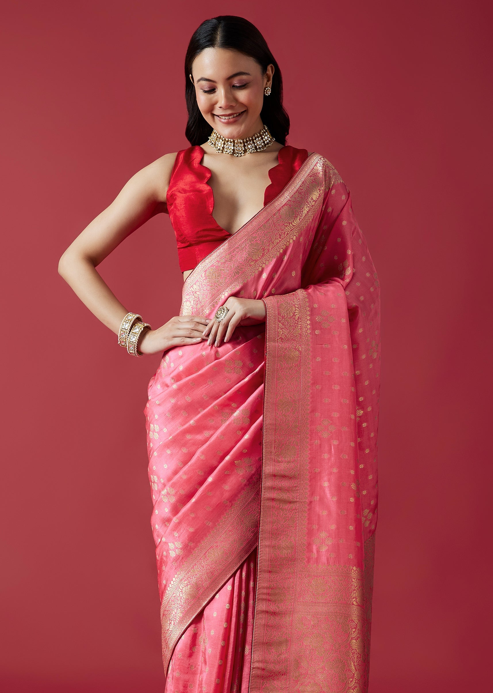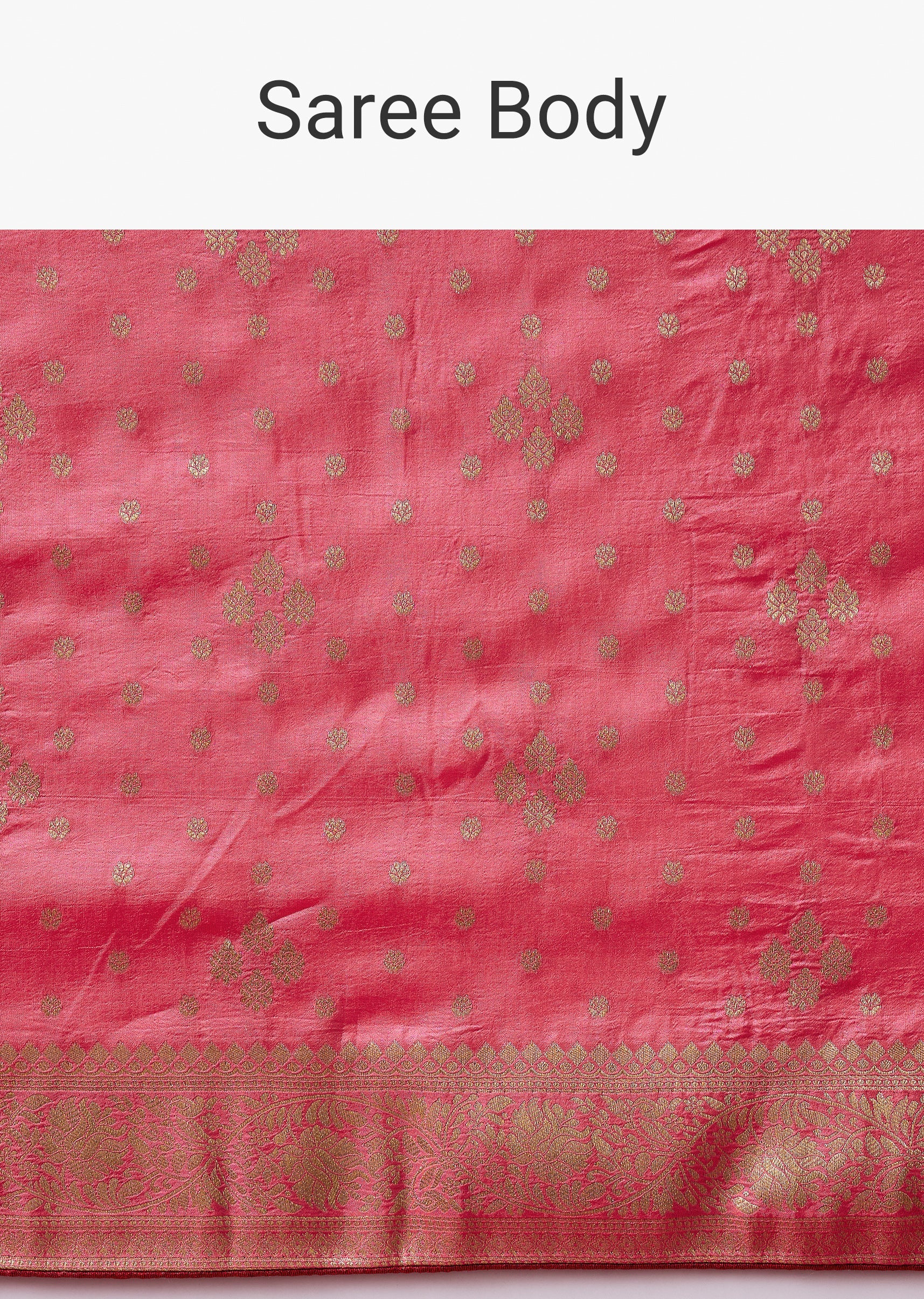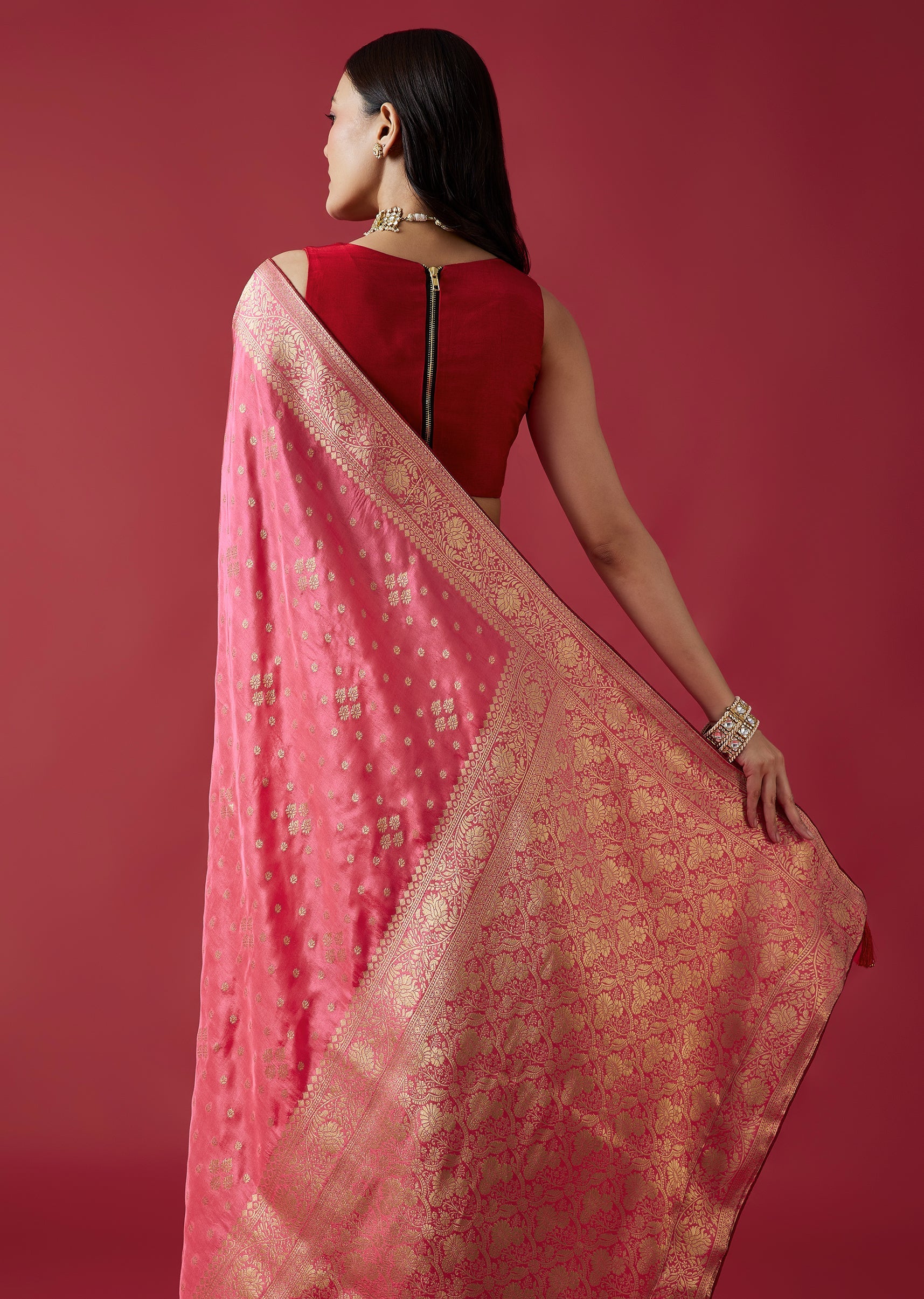 Rose Pink Dola Silk Woven Saree With Zari Floral Border