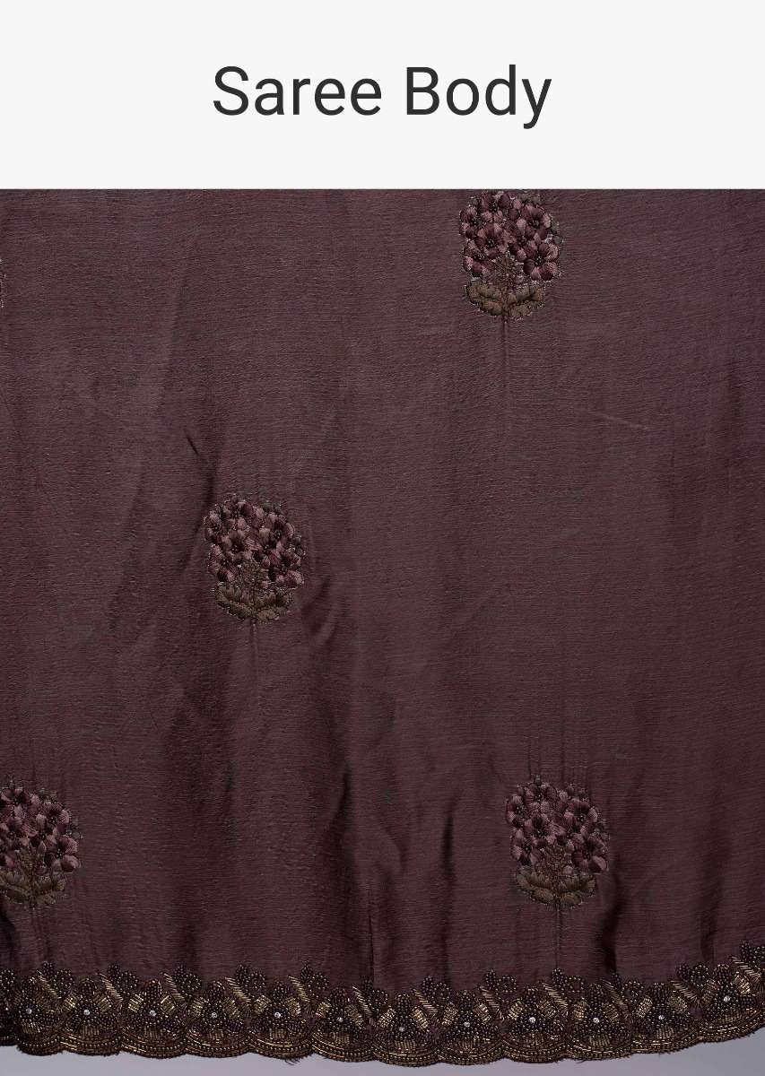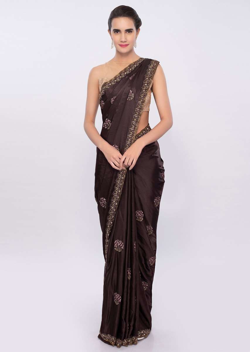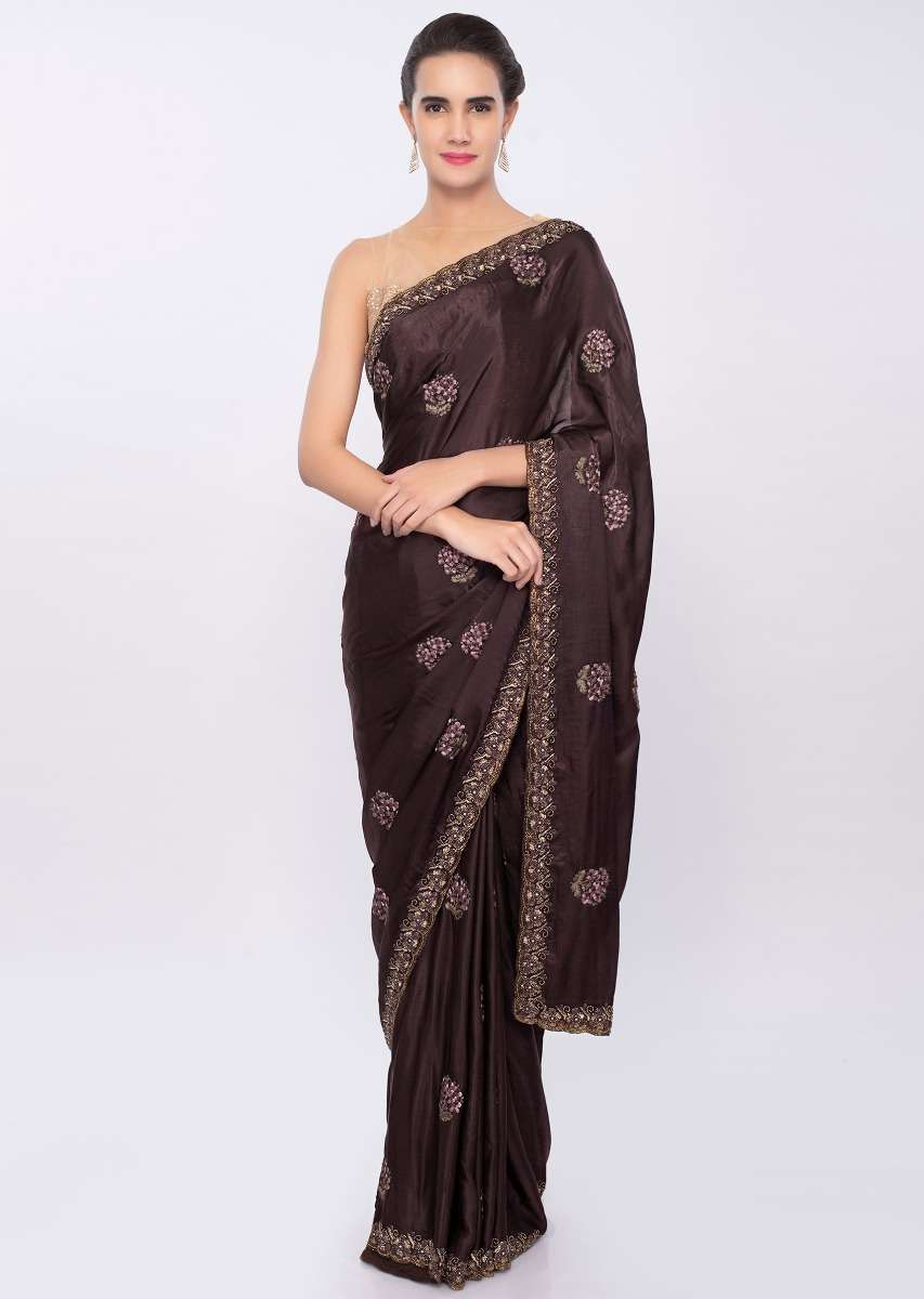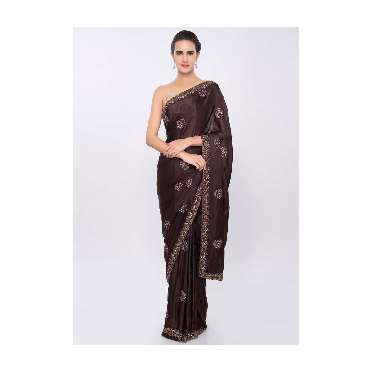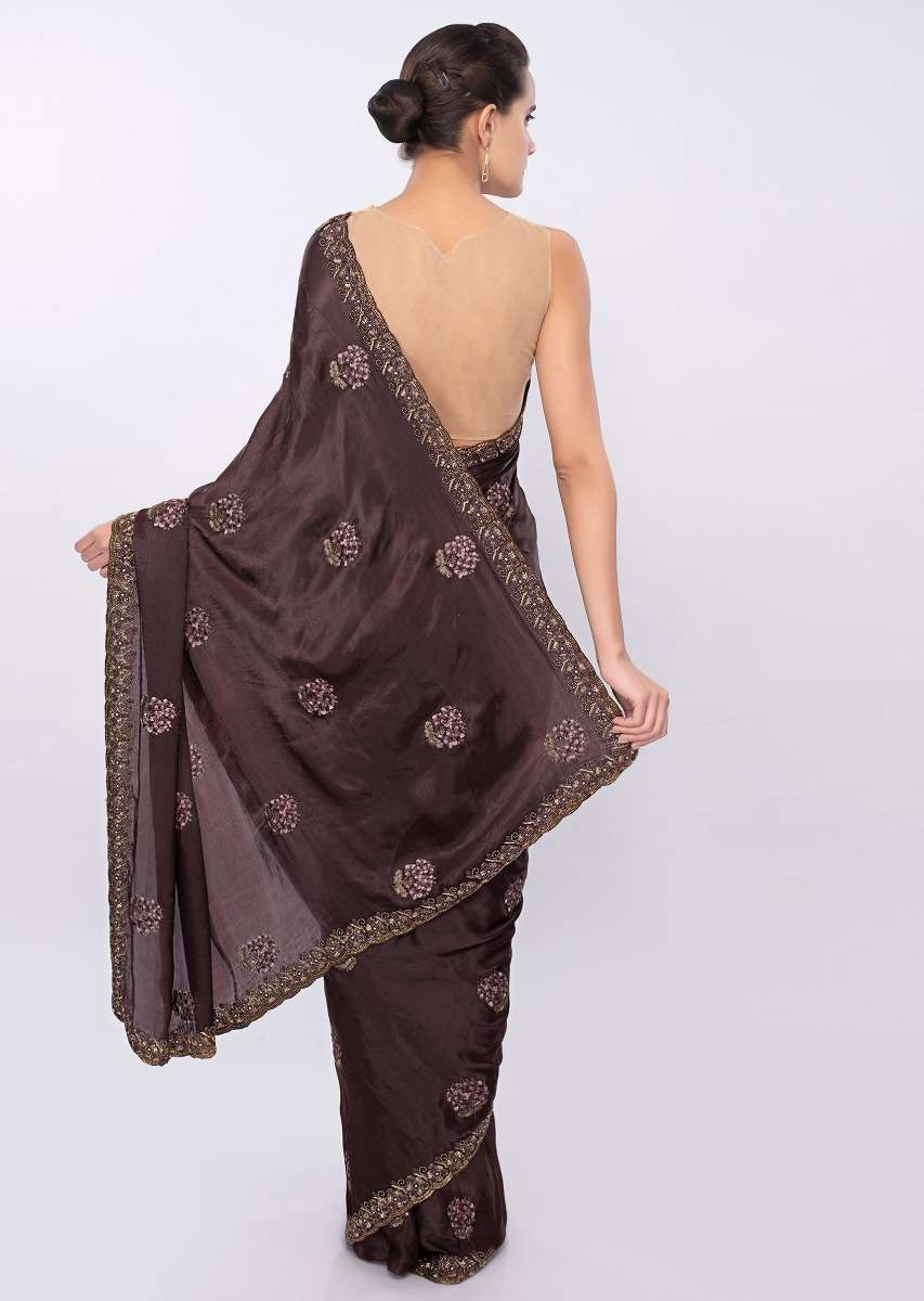 Rose Wood Brown Chiffon Saree With Embroidery And Butti Online - Kalki Fashion