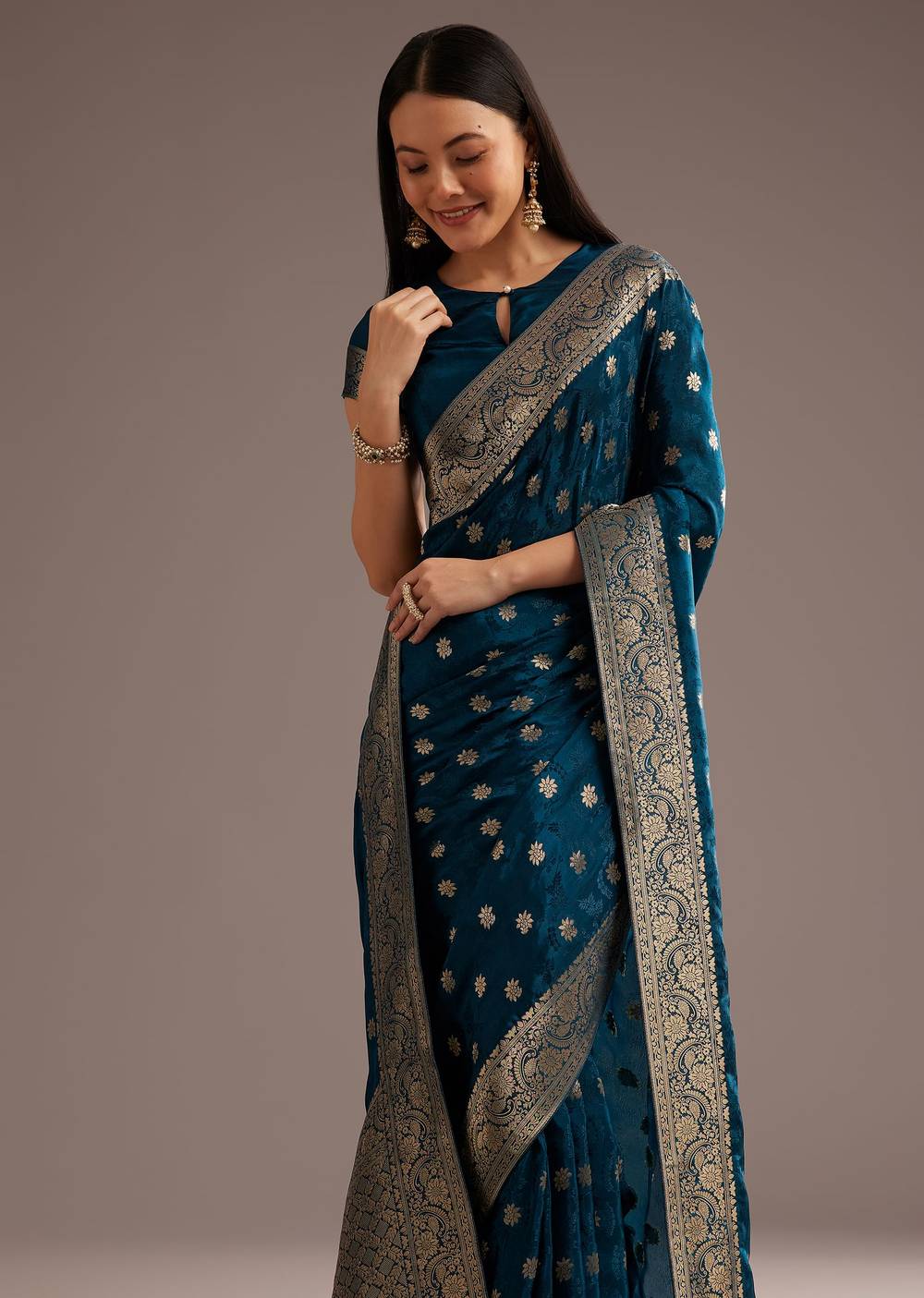 Embrace Opulence With This Royal Blue Jaquard Silk Saree Beautifully Crafted With Zari Woven Butti And A Brocade Border Pallu. Its Luxurious Design And Rich Color Make It A Splendid Choice For Grand Occasions And Special Celebrations.Awarded As The Most Trusted Brand We'Re Delivering Styles You Love Just As Promised.