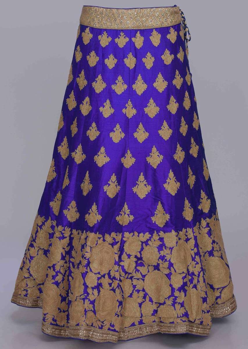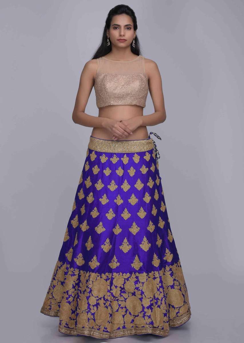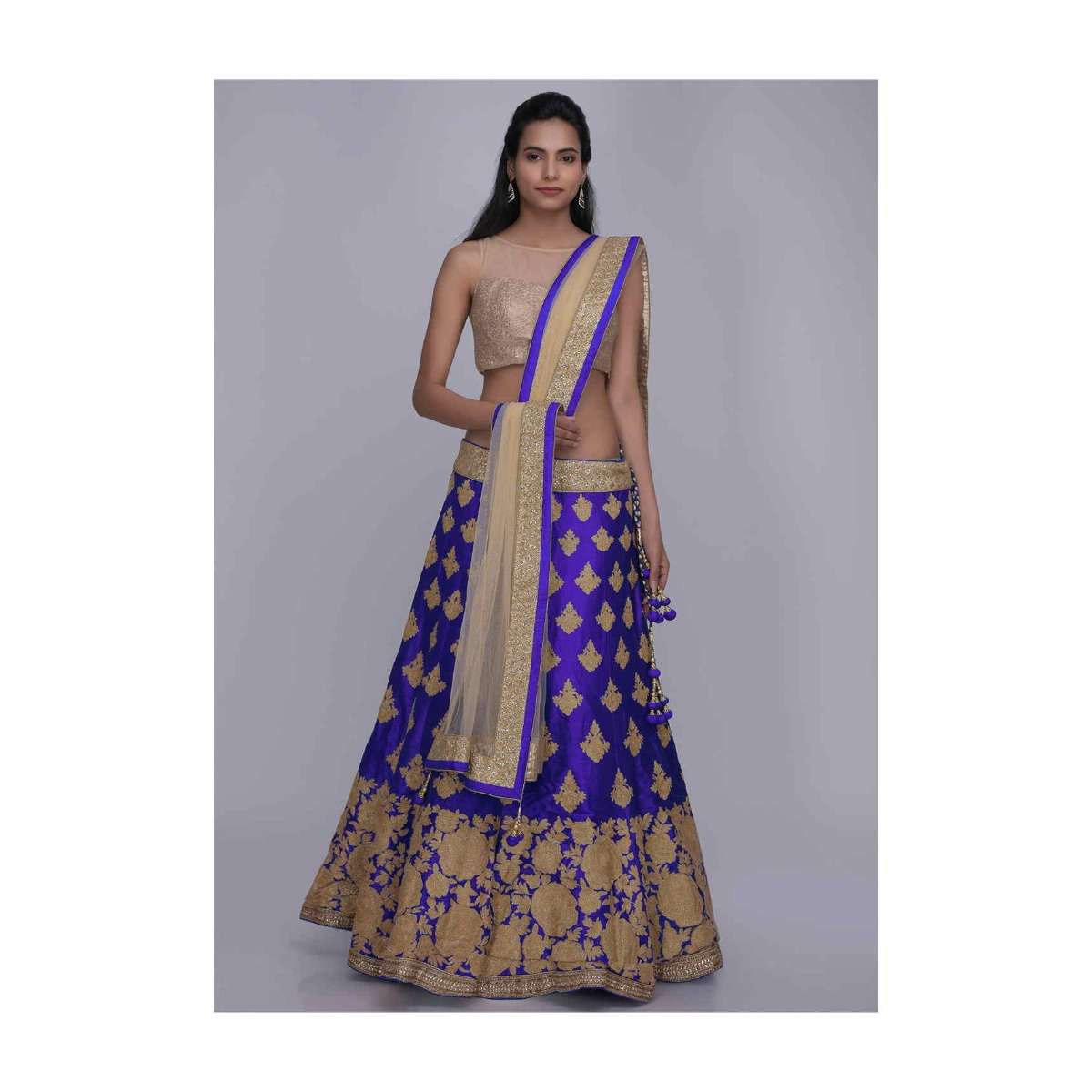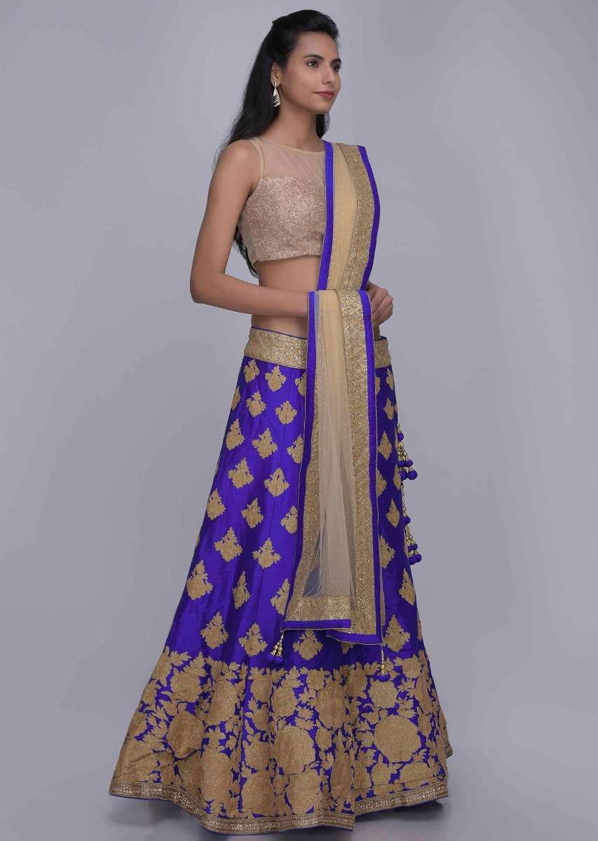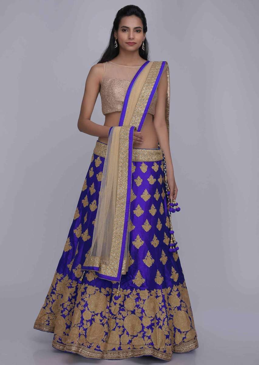 Royal Blue Lehenga Choli In Raw Silk With Shimmer Gold Dupatta Online - Kalki Fashion