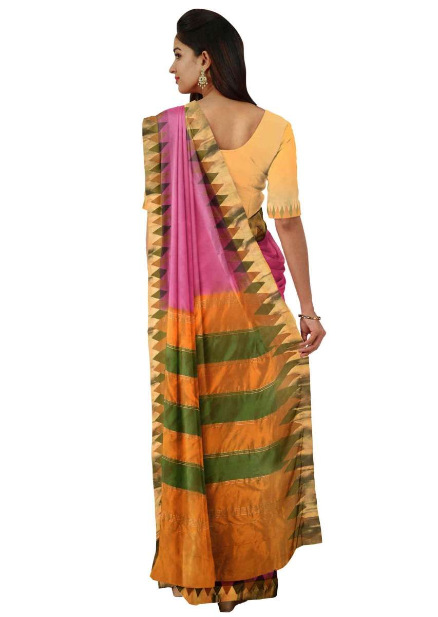 Royal Purple Saree In Banarasi Silk With Yellow Unstitched Blouse Piece Online - Kalki Fashion