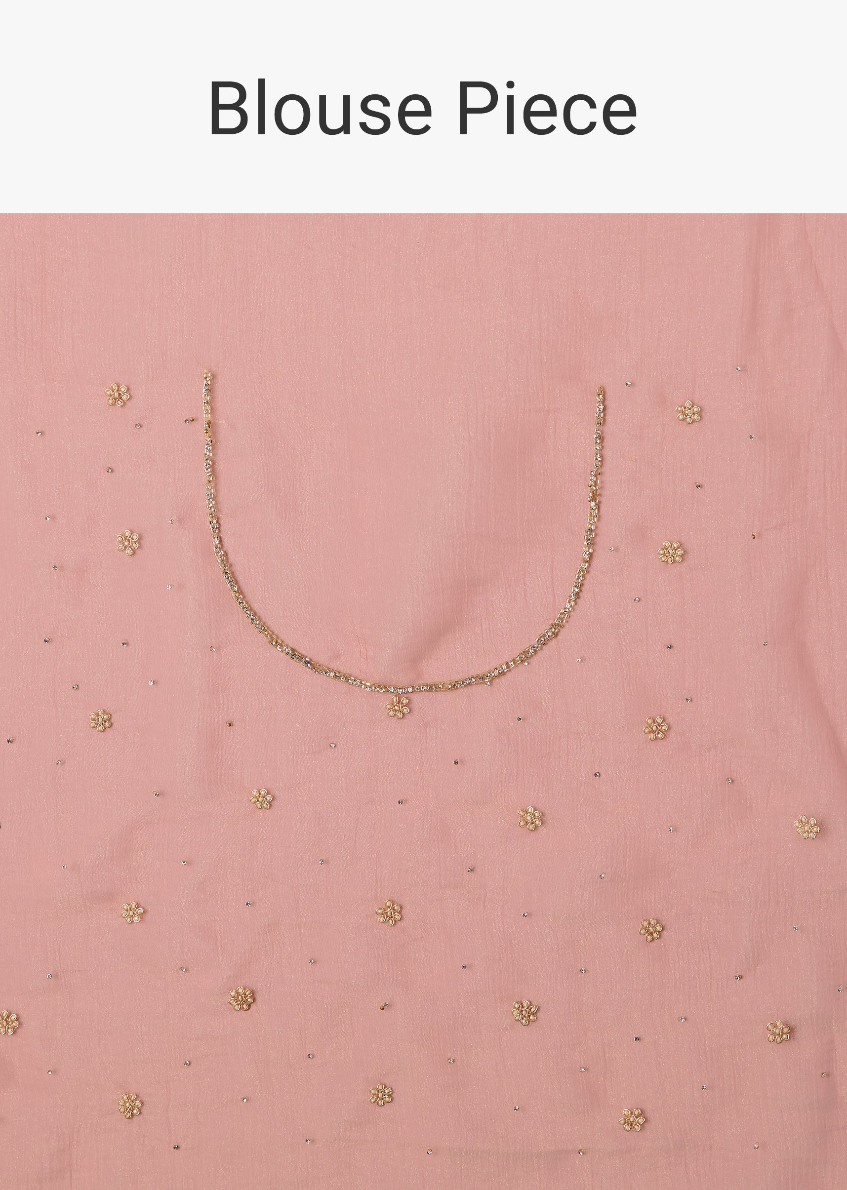- The saree is adorned with intricate stone embellishments while its embroidered border highlighted with cutdana stones and moti adds a refined touch of opulence.