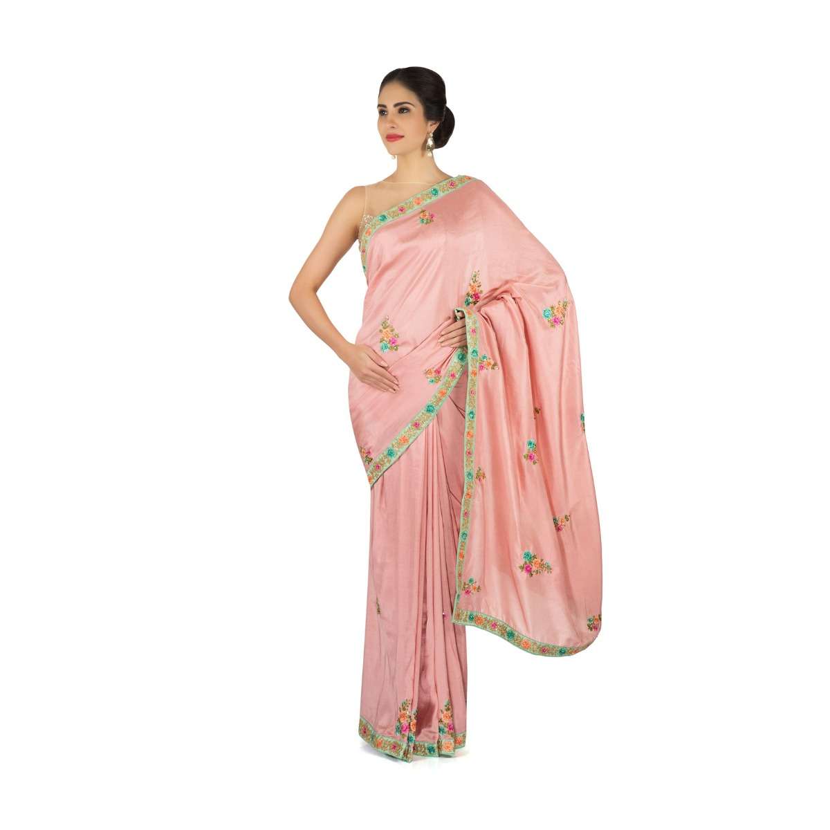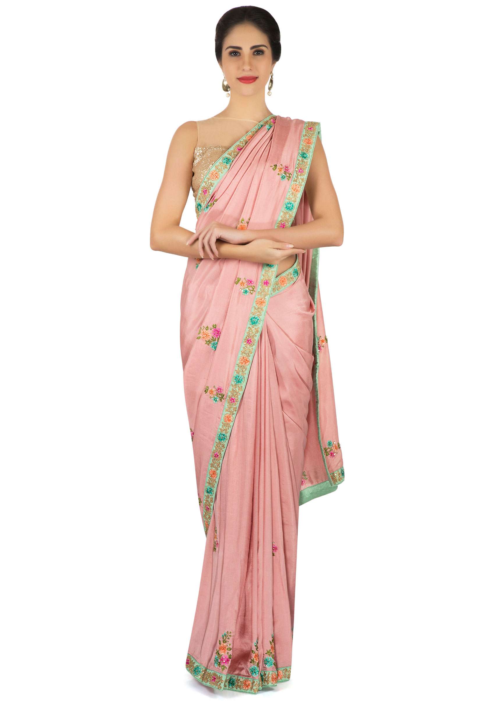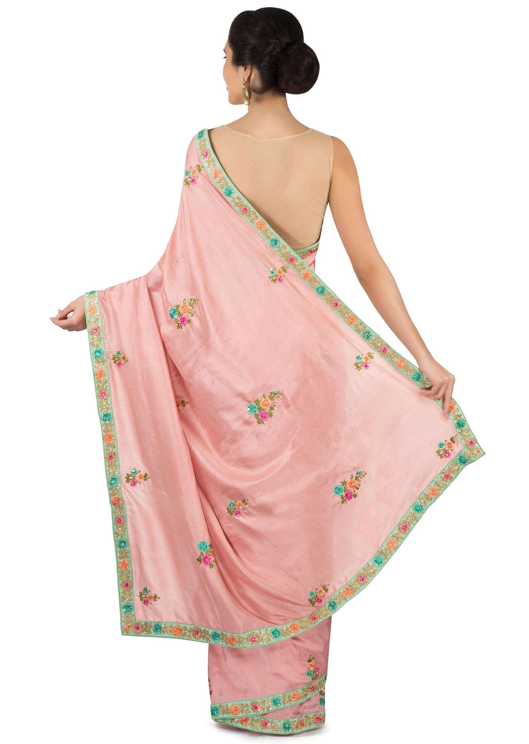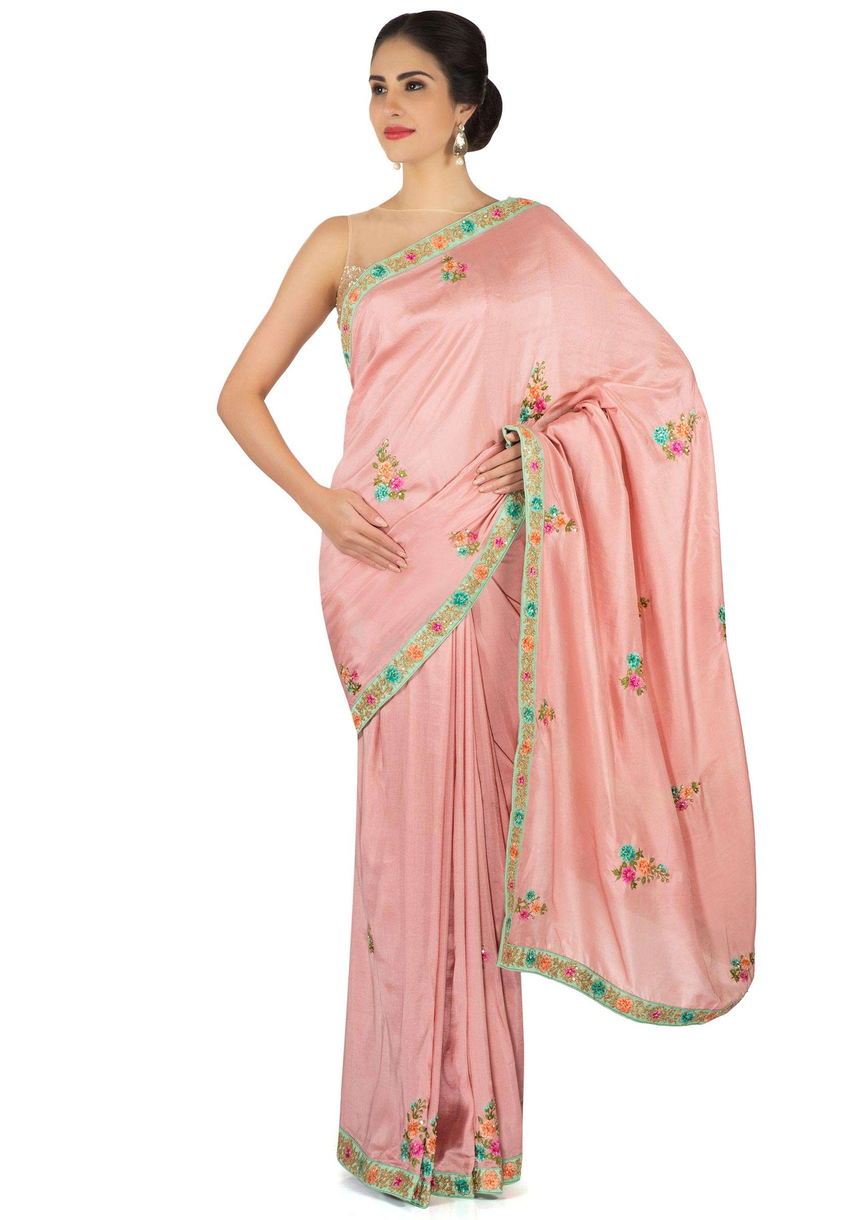 Sachet Pink Saree In Resham Embroidered Buttis Online - Kalki Fashion
