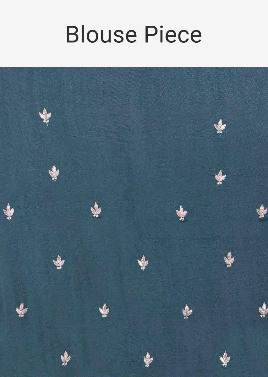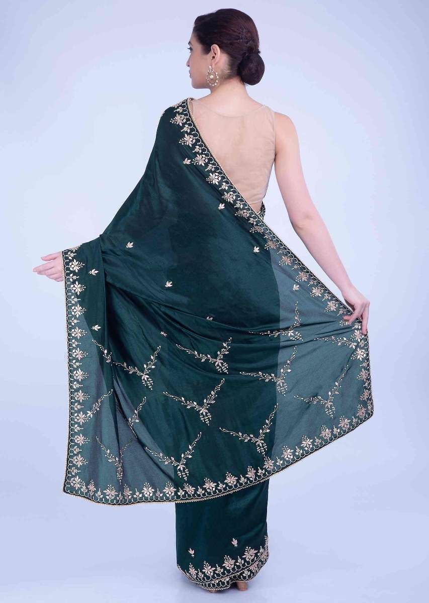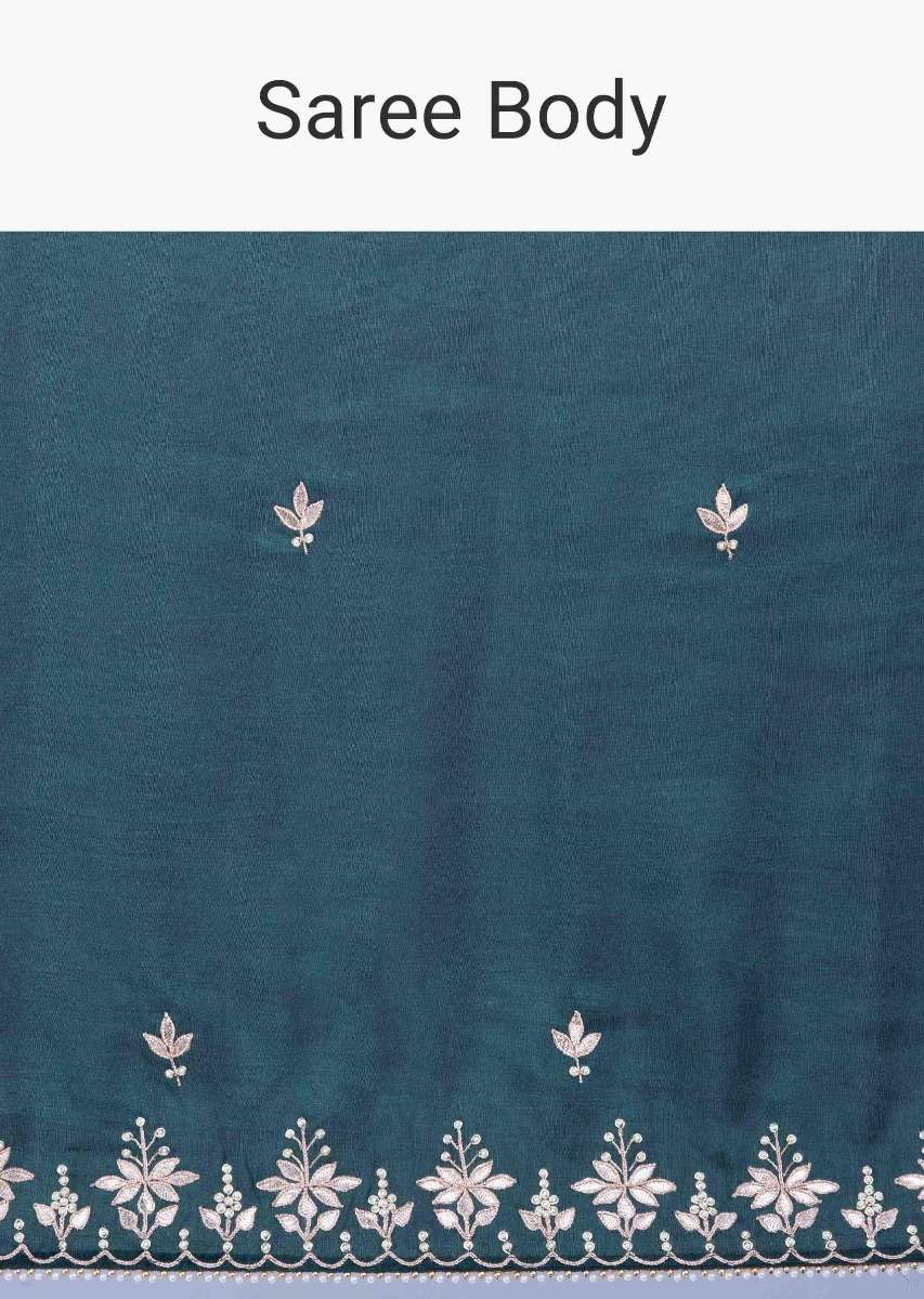 Sacramento Green Saree In Crepe Silk With Floral And Scallop Embroidered Border Online - Kalki Fashion