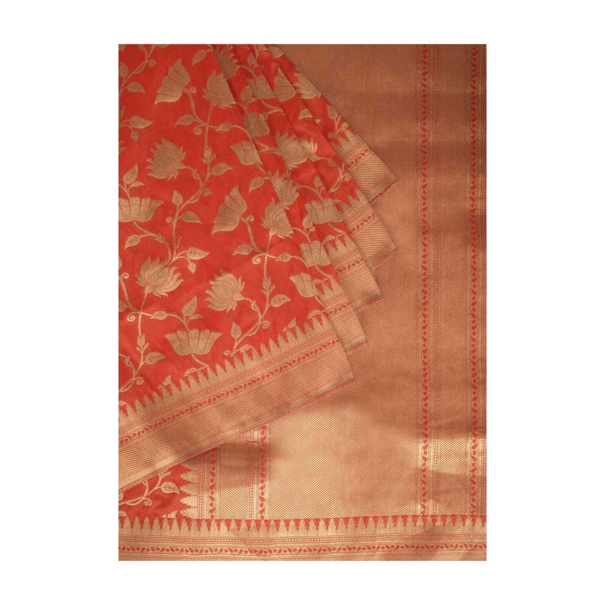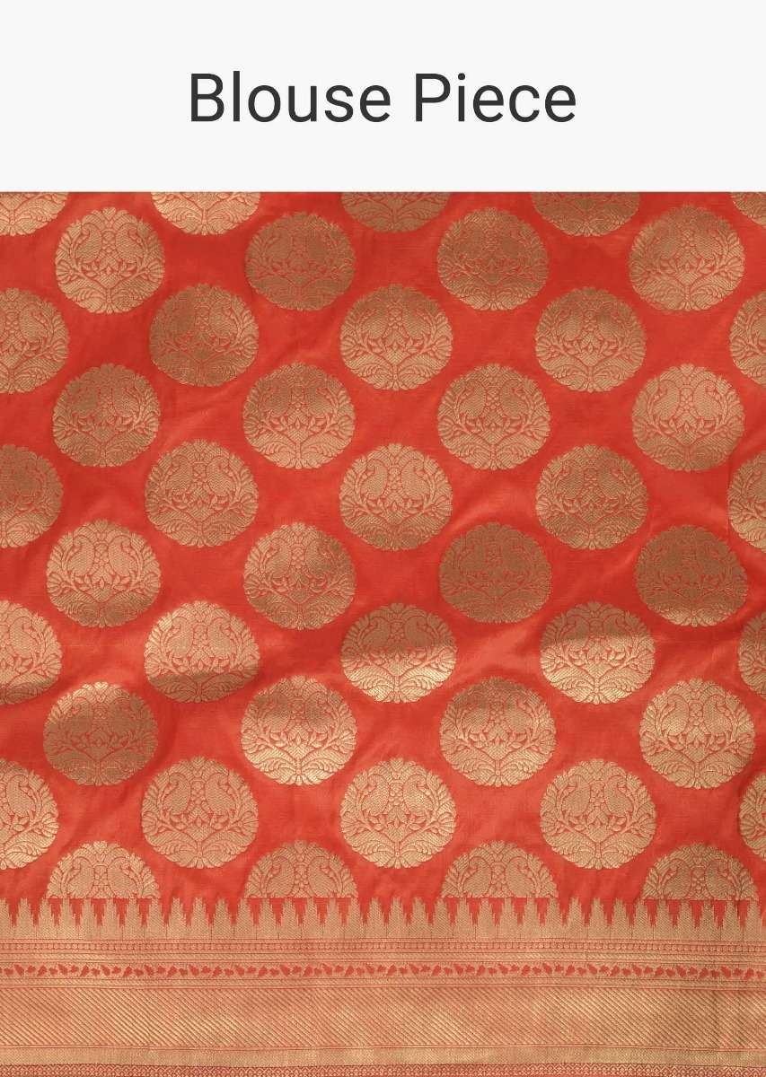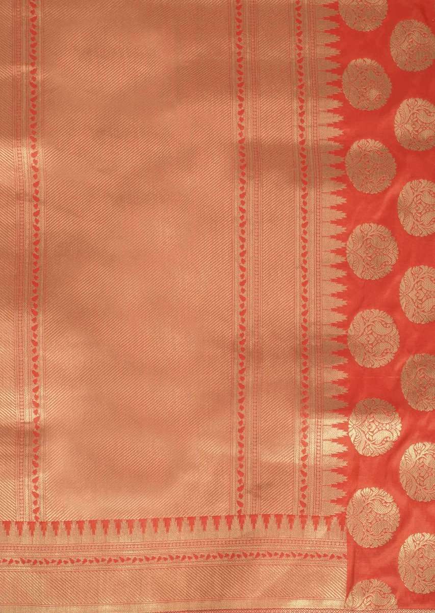 Salamander Orange Saree In Banarasi Silk With Weaved Floral Jaal In Lotus Motif Online - Kalki Fashion