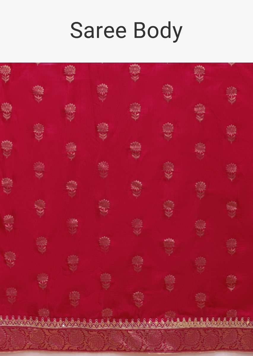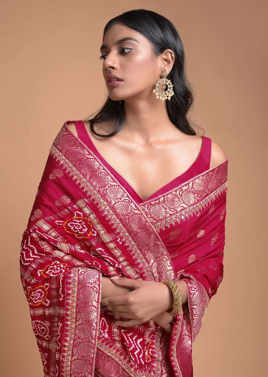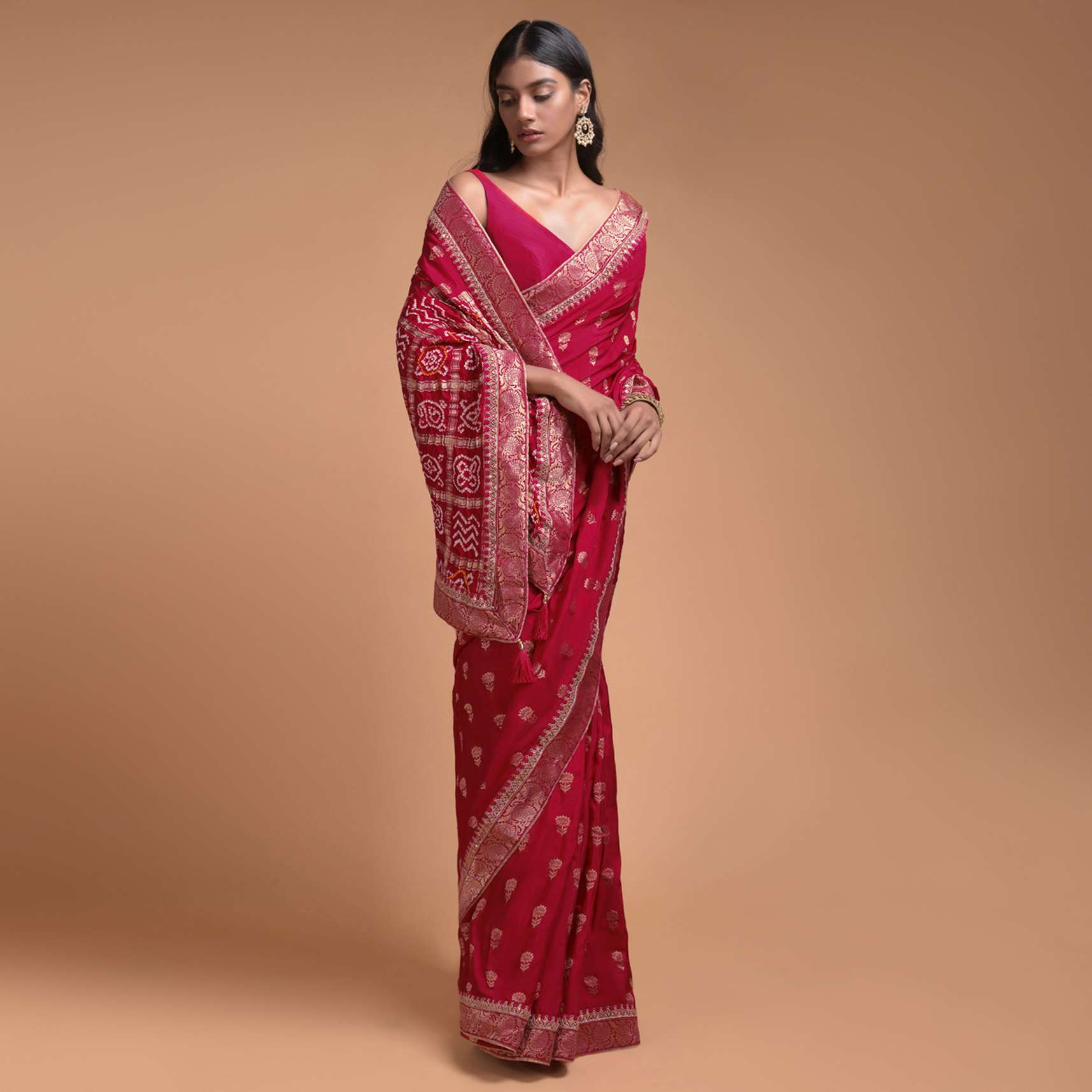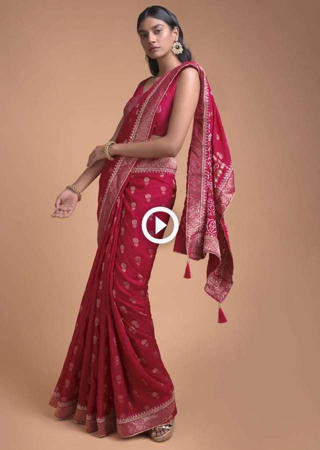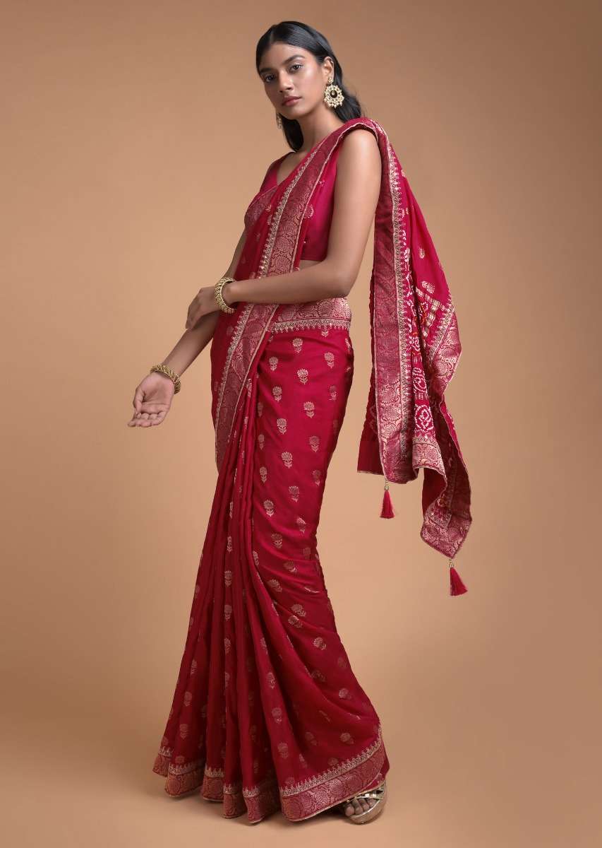 Scarlet Red Saree In Silk With Weaved Floral Buttis And Bandhani Printed Pallu Online - Kalki Fashion