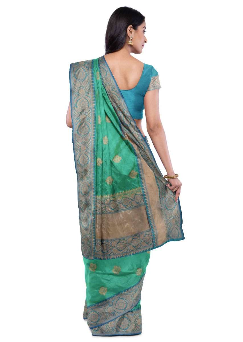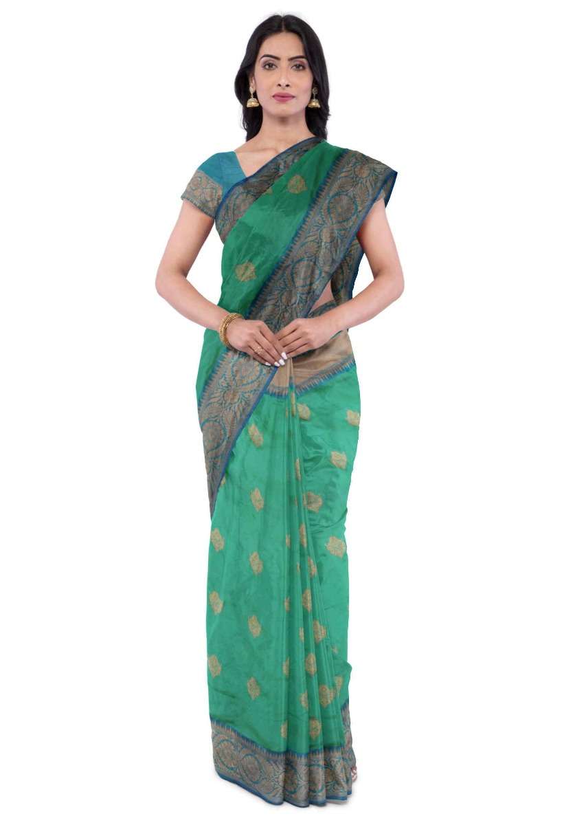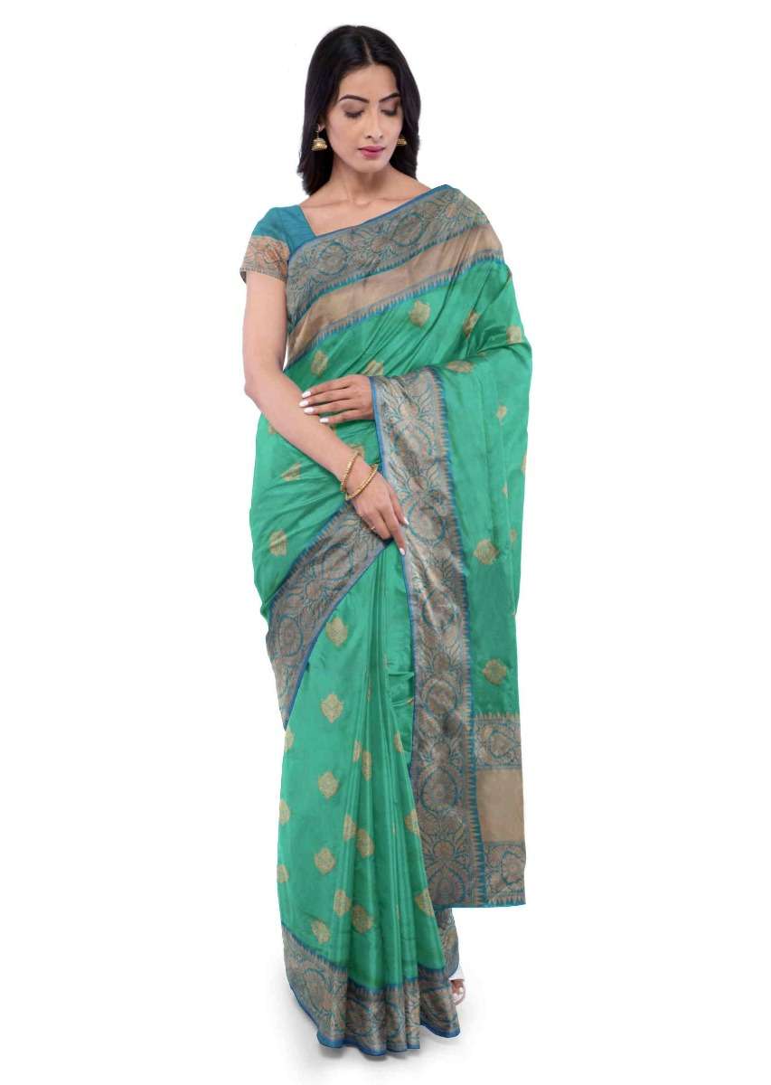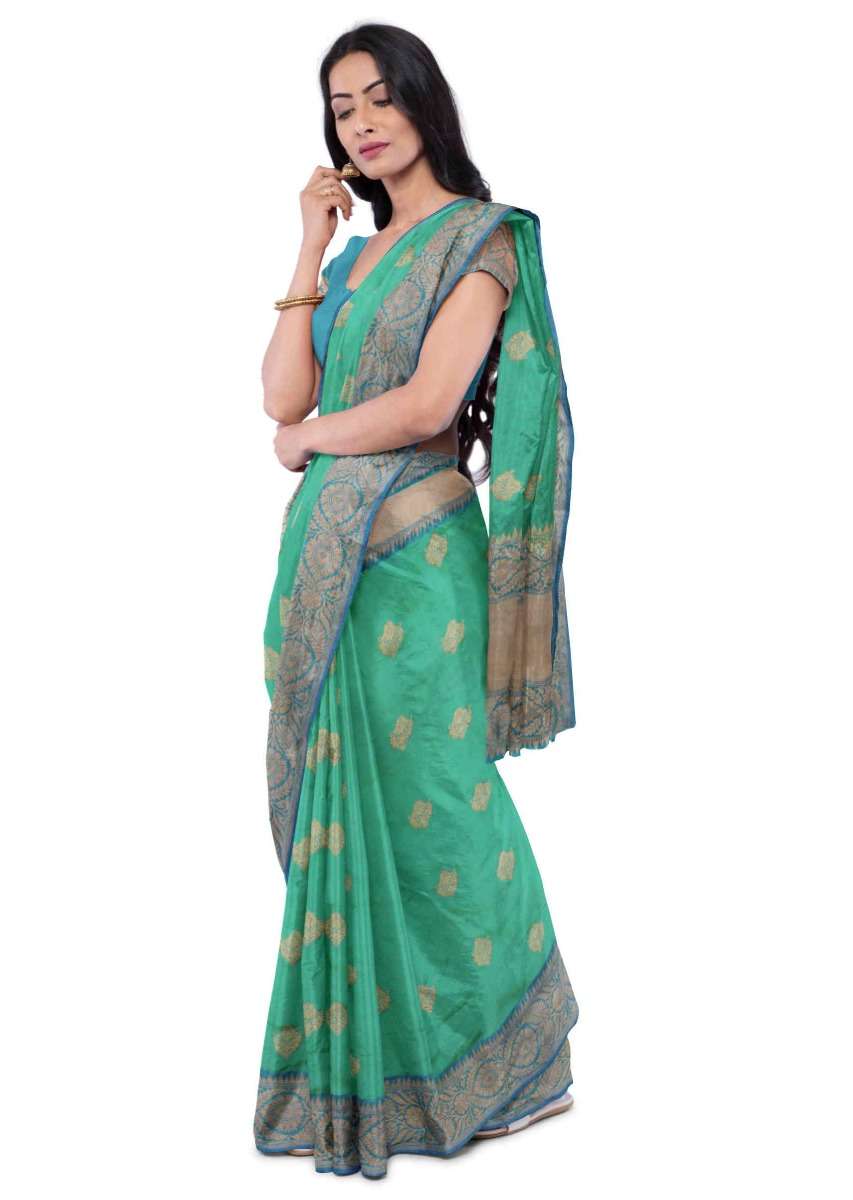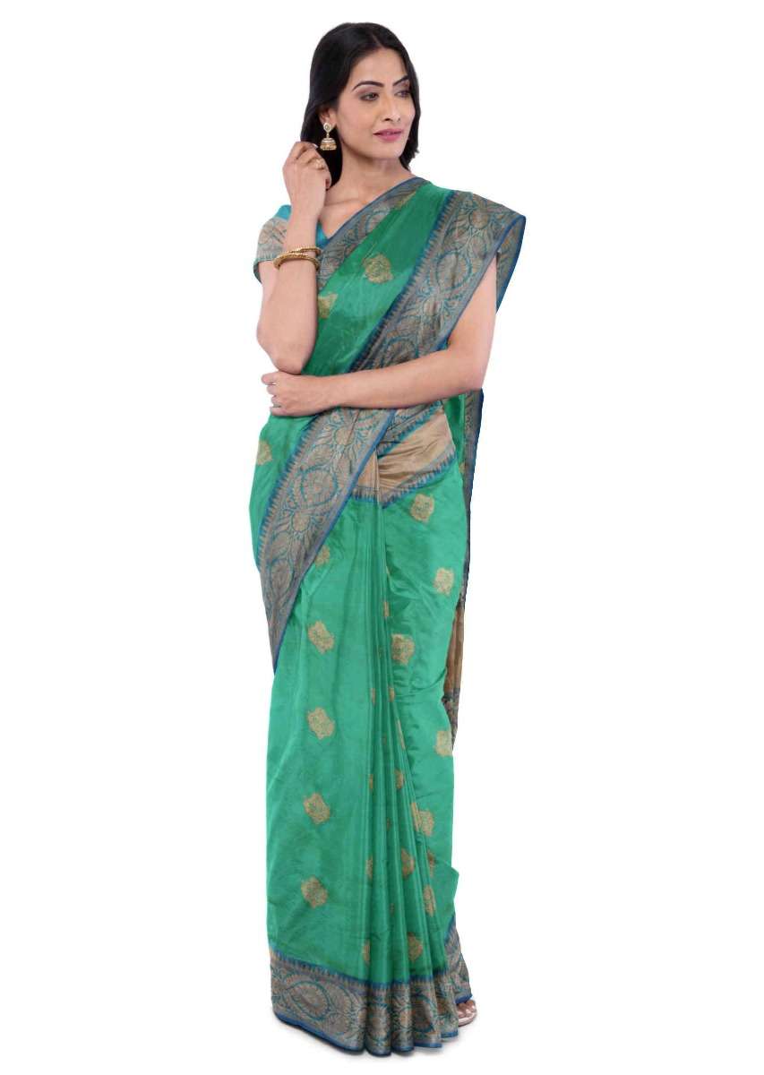 Sea Green Banarasi Saree With Azure Blue Blouse Piece Online - Kalki Fashion