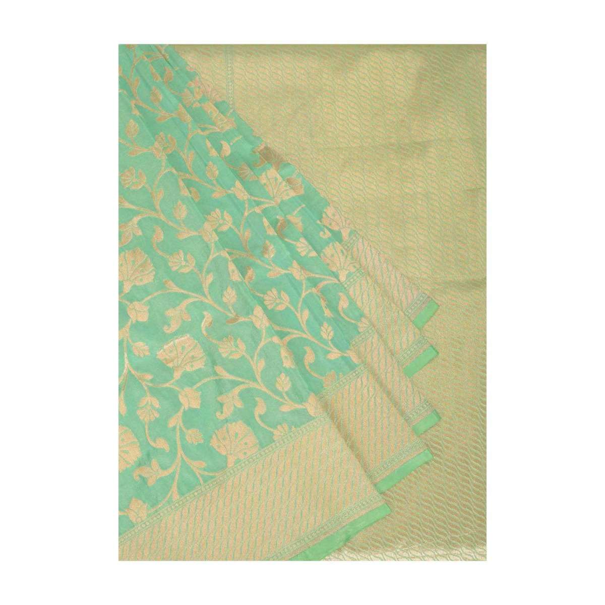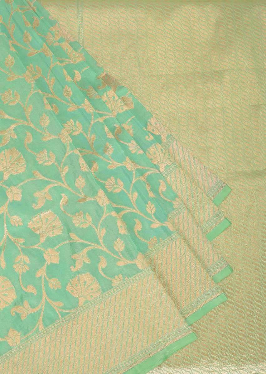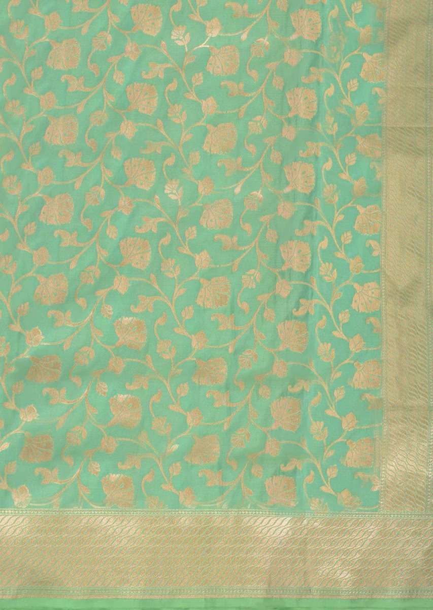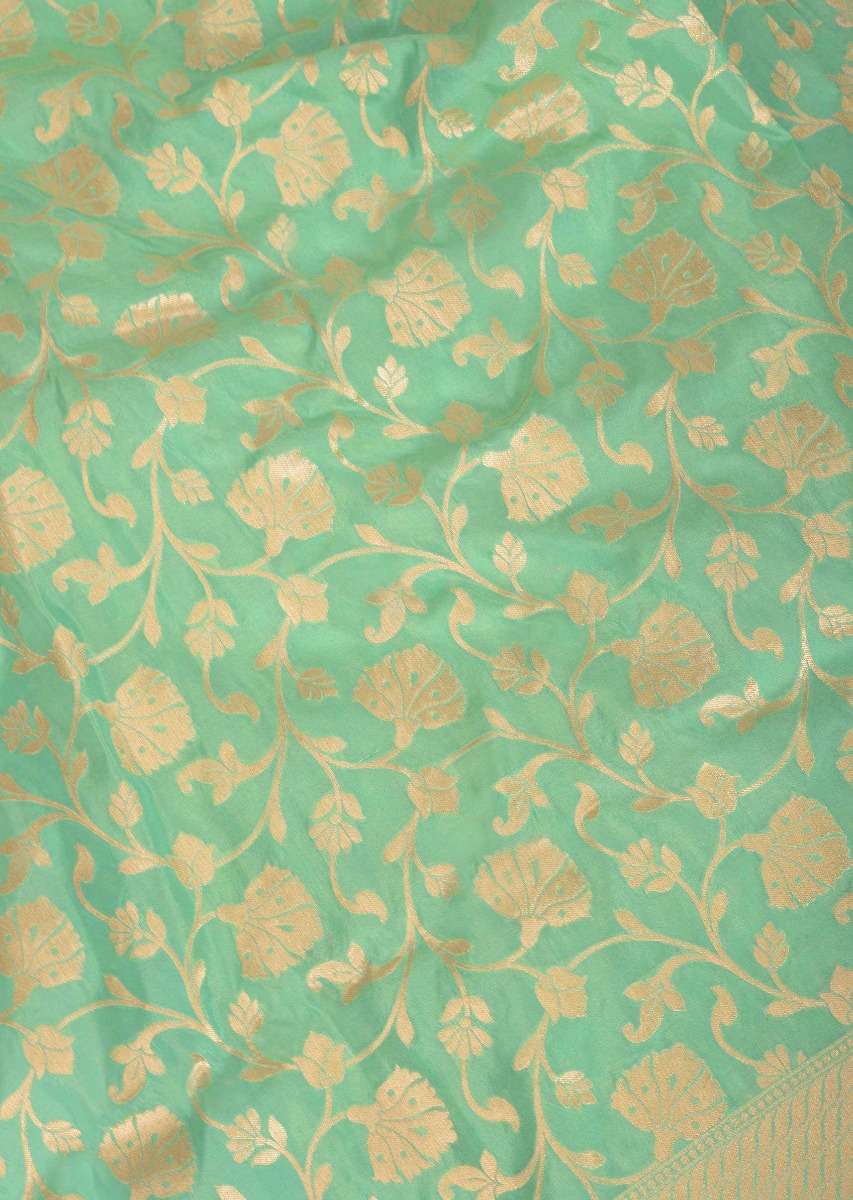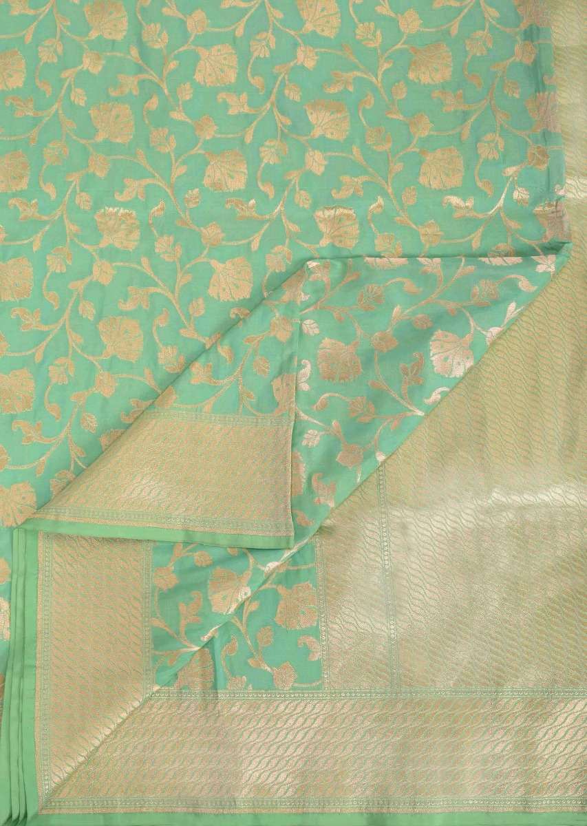Seafoam Green Banarasi Saree In Silk With Floral Jaal Pattern Online - Kalki Fashion