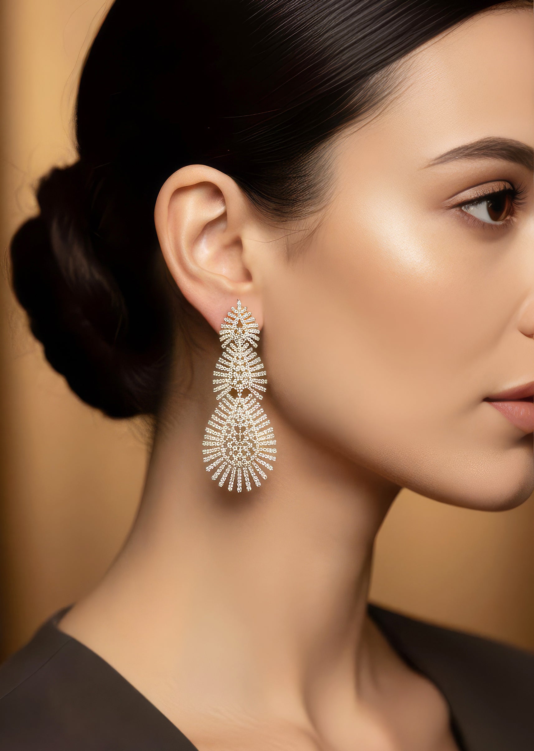 A graceful blend of silver and white tones gives these CZ diamond look earrings a clean, luminous elegance. Crafted in durable rhodium plated brass with an anti tarnish finish, they reflect light beautifully while maintaining a refined, lightweight feel. Ideal for weddings, receptions, and elegant evening affairs where understated sparkle stands out. Awarded as the Most Trusted Brand, we're delivering styles you love, just as promised.