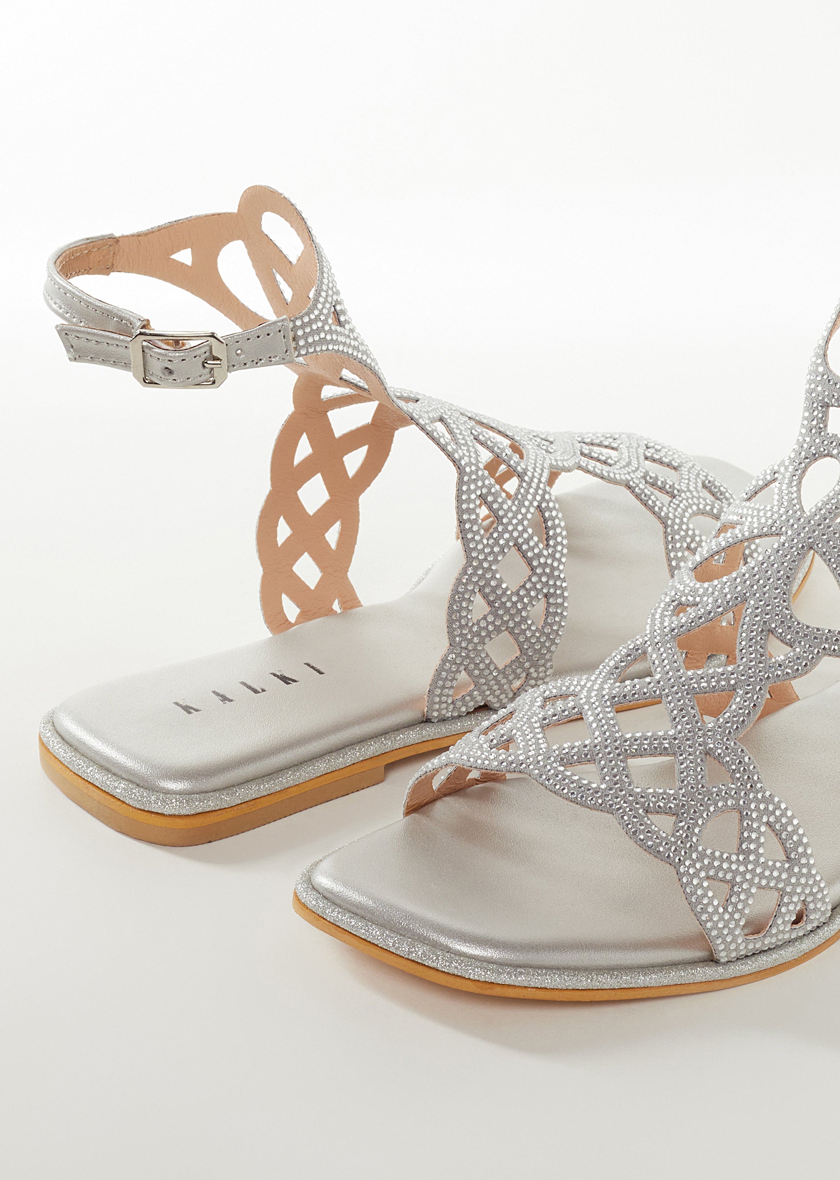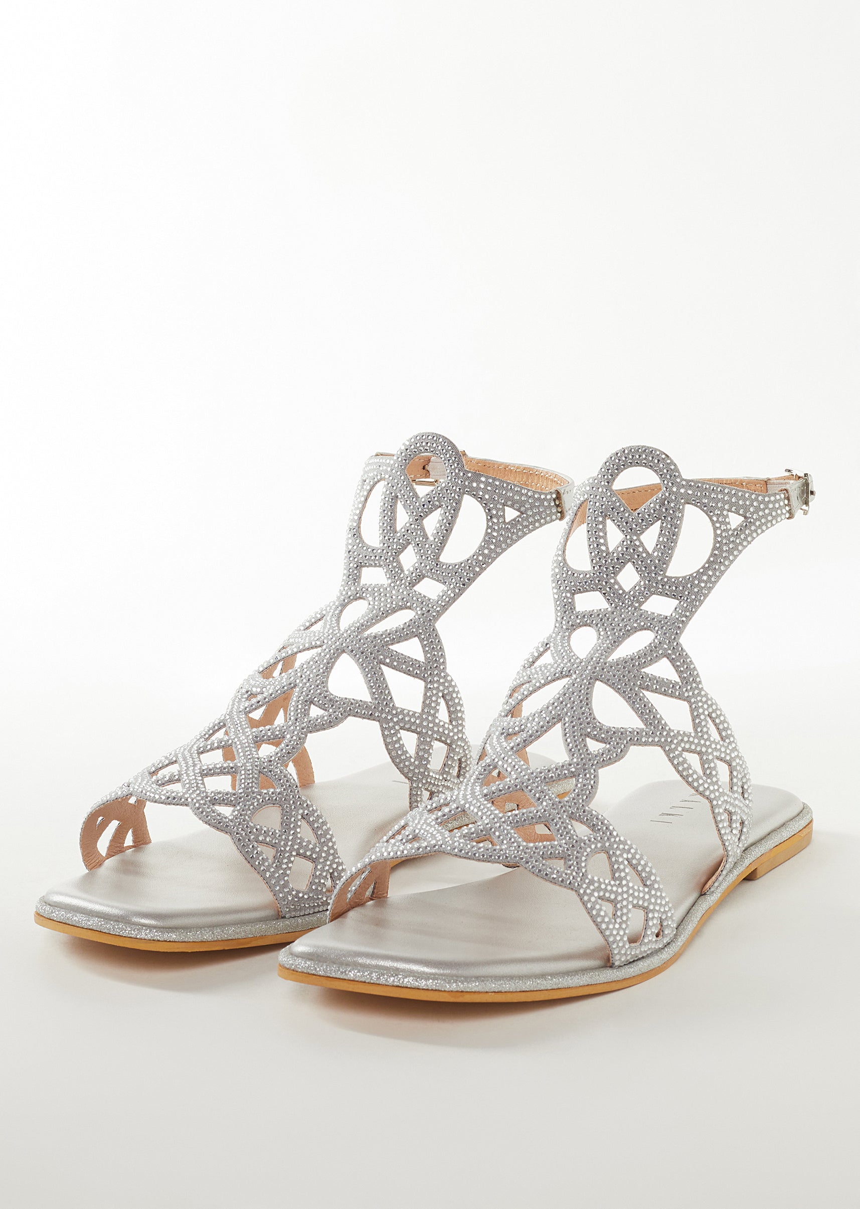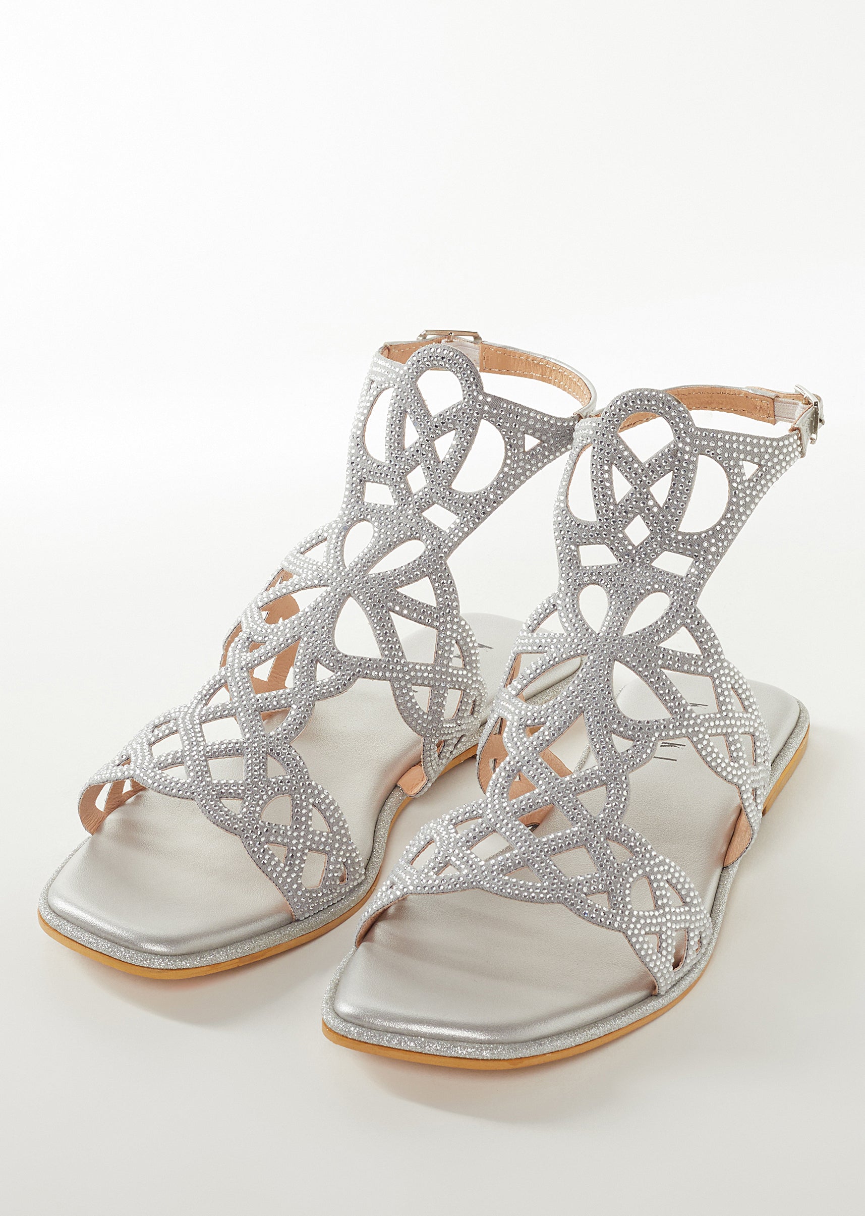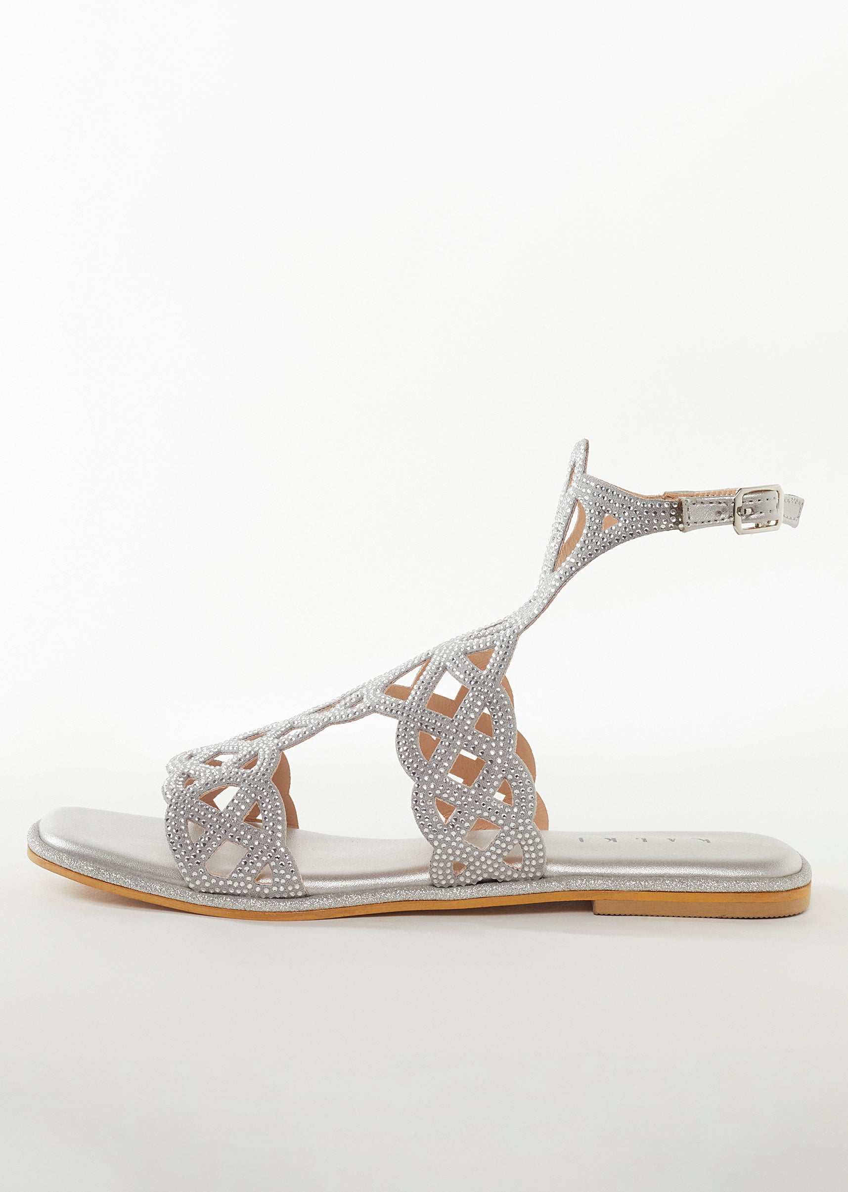 Silver Faux Leather Womens Footwear Festive With Embellished Detail Work