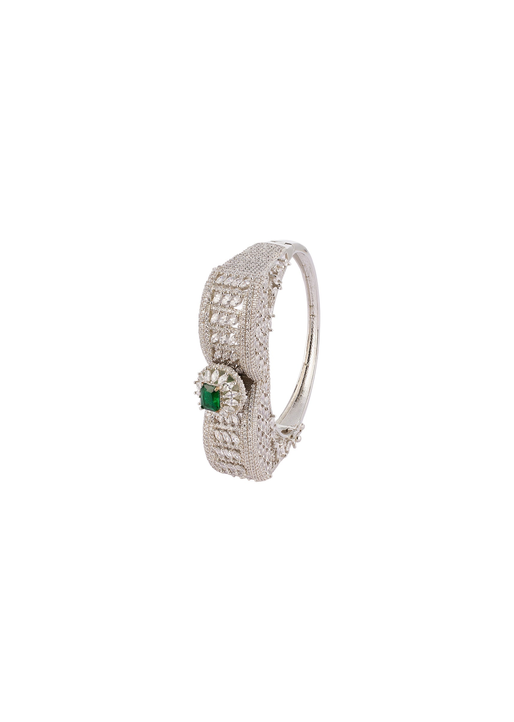 Pair this bracelet with a solid toned saree, lehenga, or anarkali to highlight the green accents and statement style design.