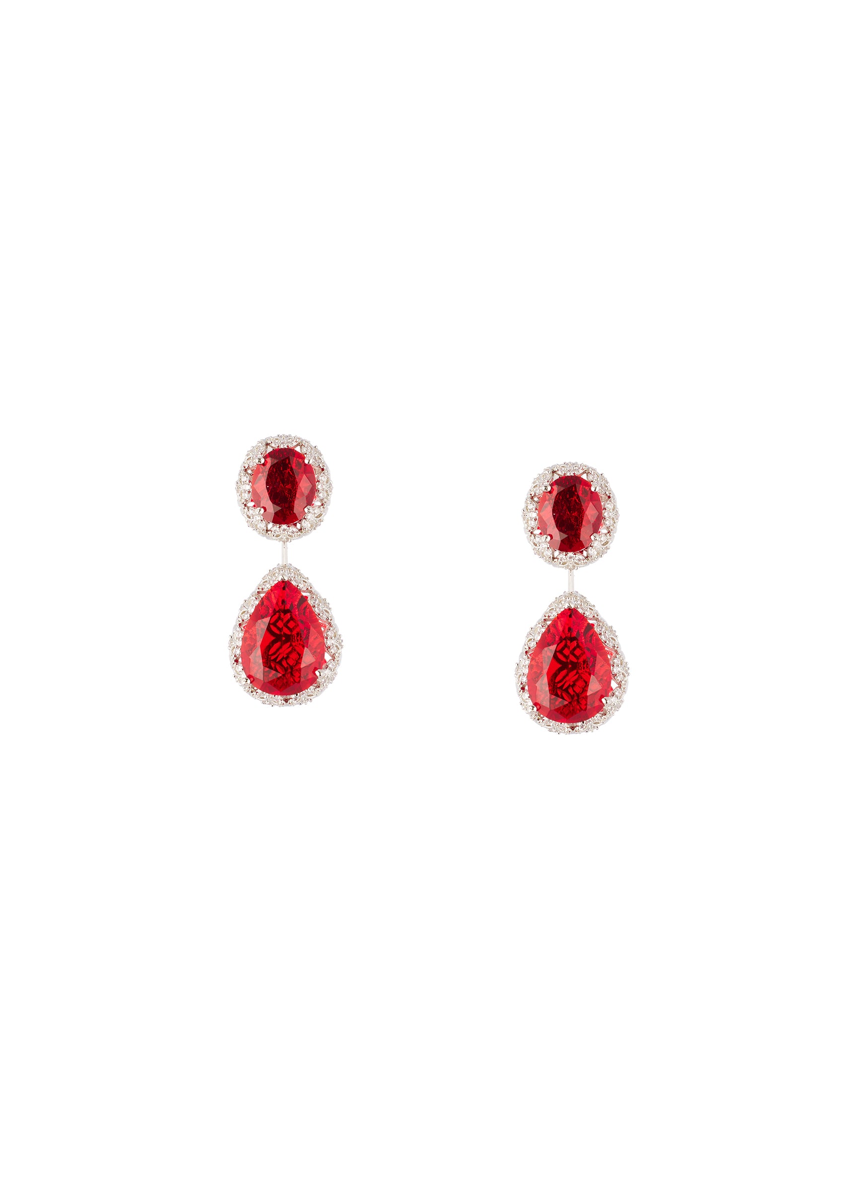 Pair these earrings with solid sarees, evening gowns or structured festive outfits in neutral or jewel tones to highlight the red stones and crystal detailing.
