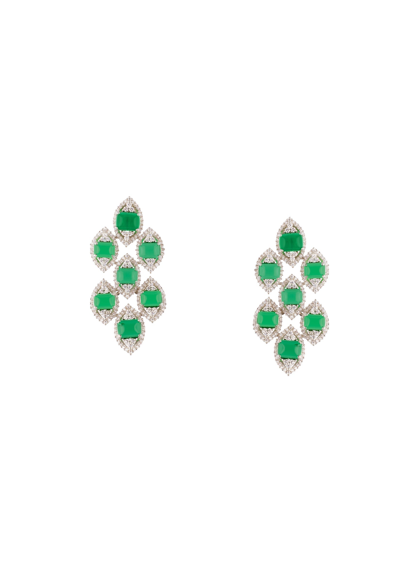 Silver Finish Geometric Drop Earrings With Emerald Green Simulated Stones