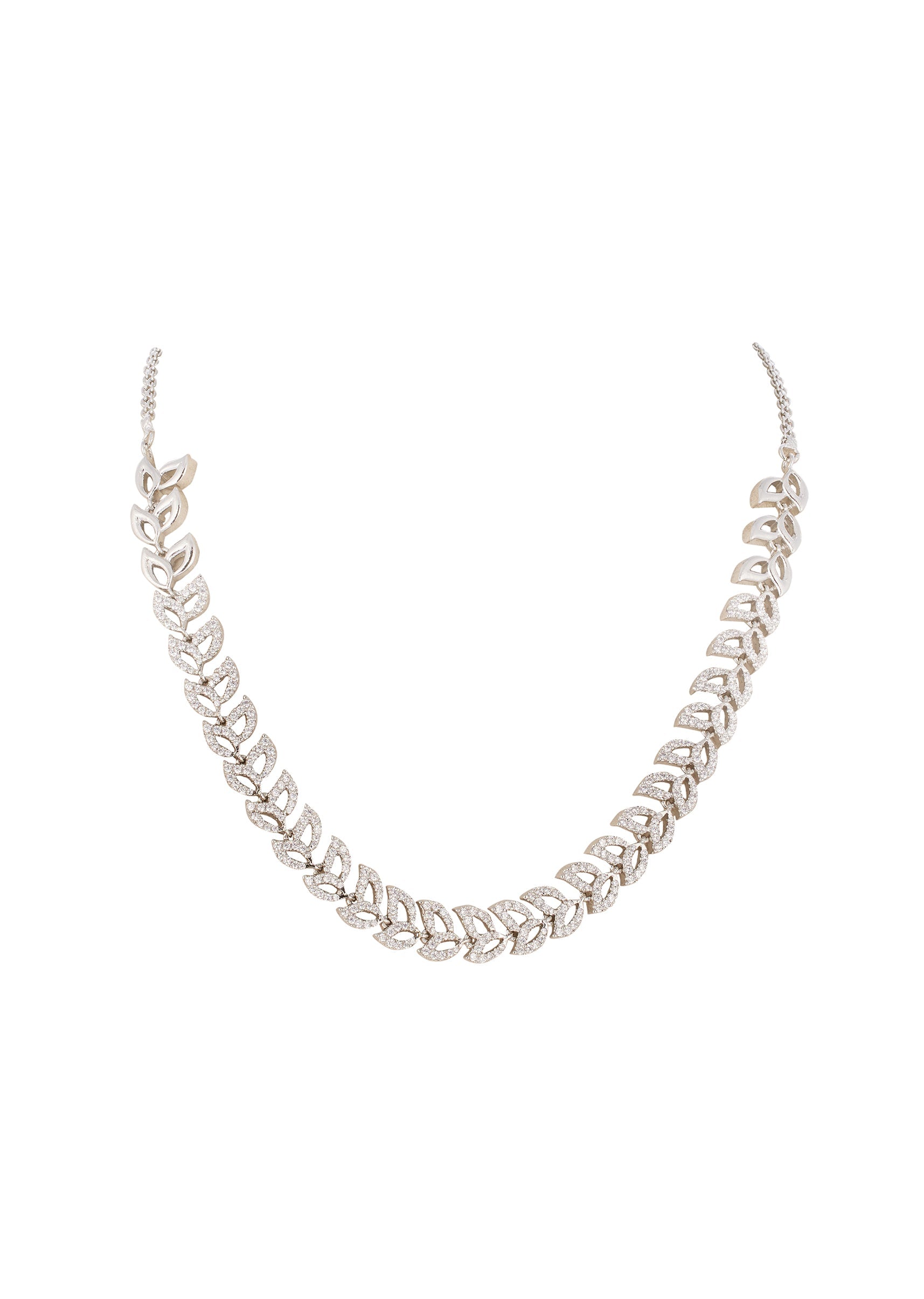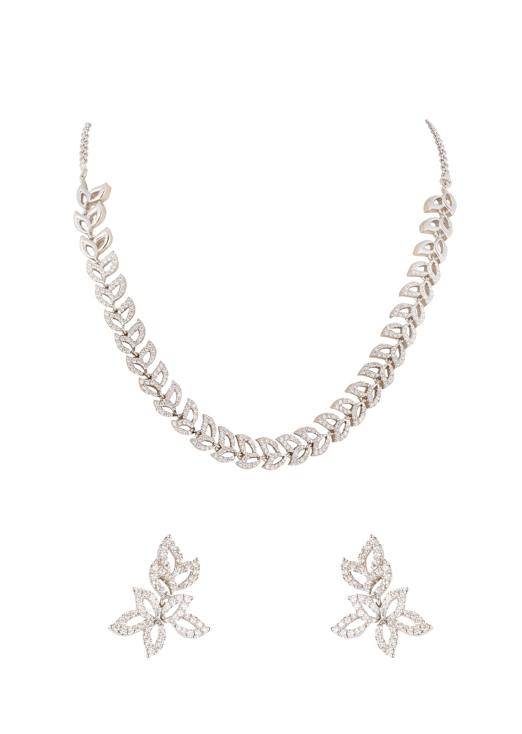 This elegant silver finish necklace set features a chandelier inspired silhouette adorned with pink simulated stones and finely placed cubic zirconia. The cascading design adds movement and grace, making it a striking choice for festive occasions and evening celebrations. Awarded as the Most Trusted Brand, we're delivering styles you love, just as promised.