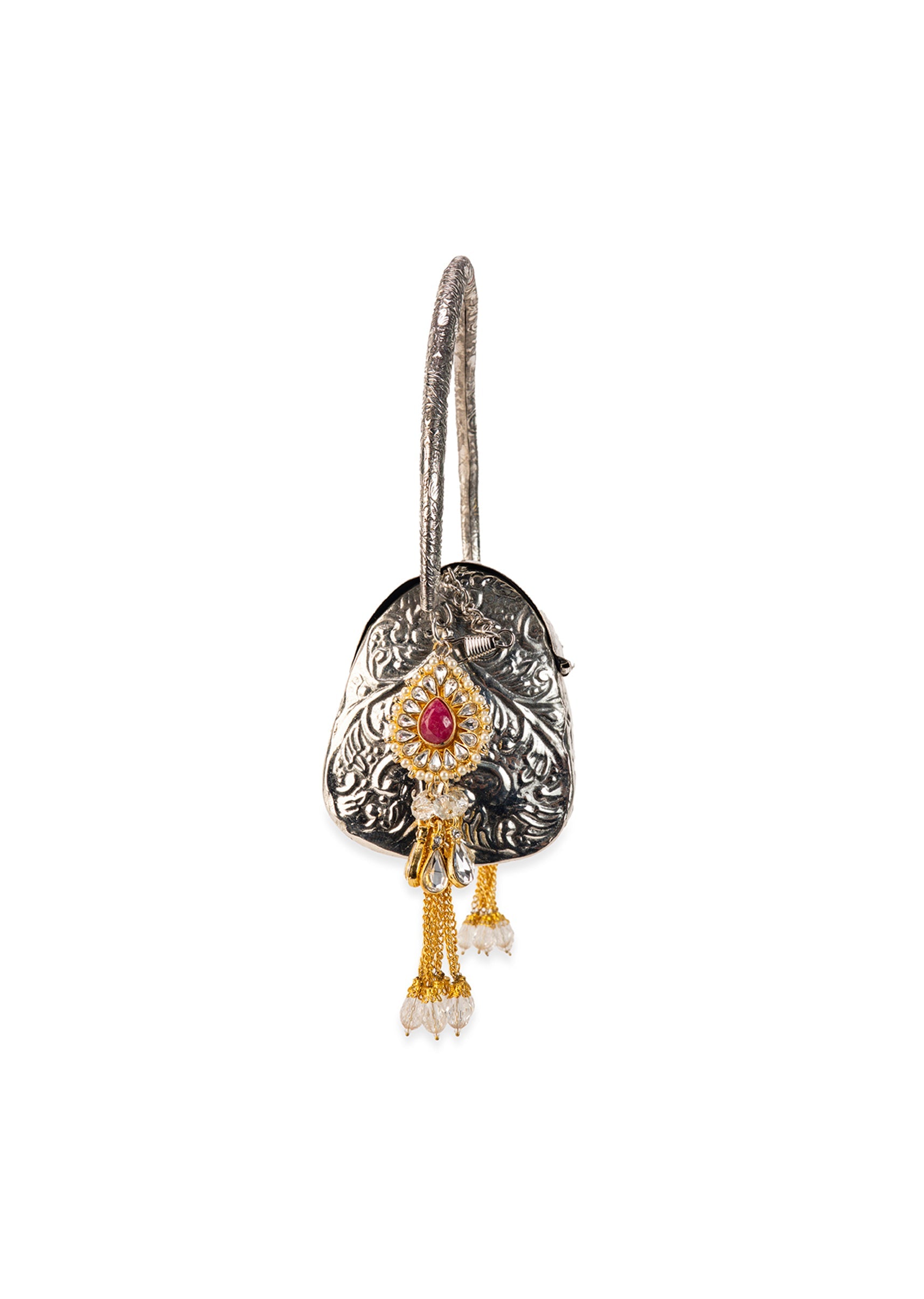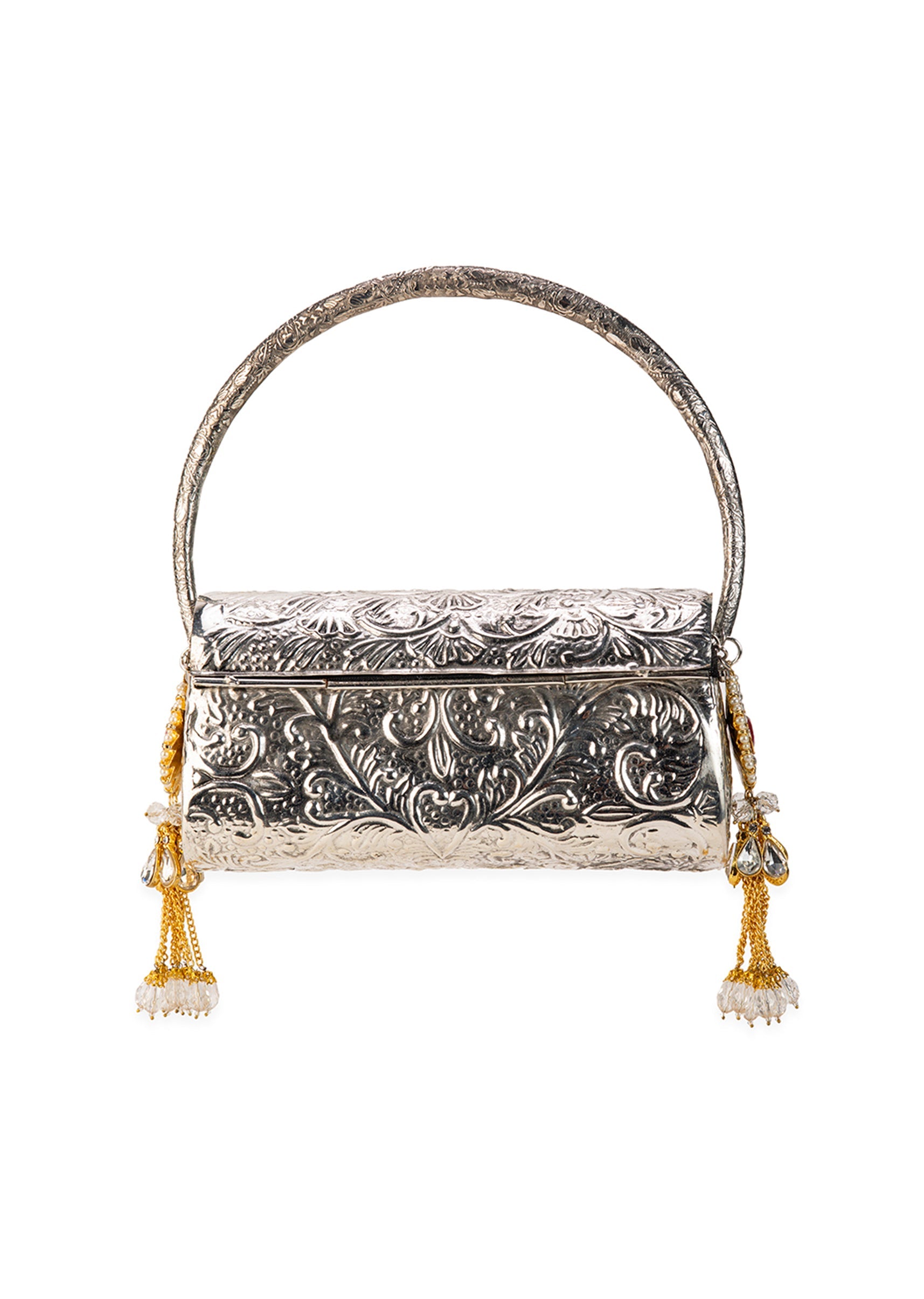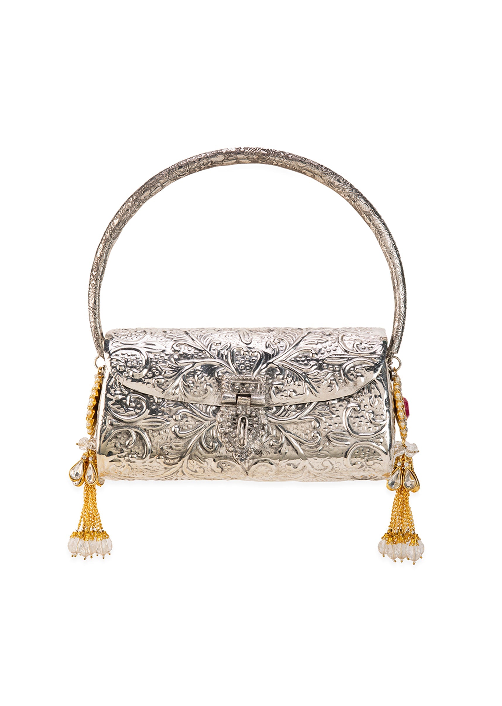 Turn every entrance into a moment with this silver metal bag, featuring bold floral embossed textures that shimmer beautifully under the light. Its sculpted surface adds a touch of modern... More Product Details