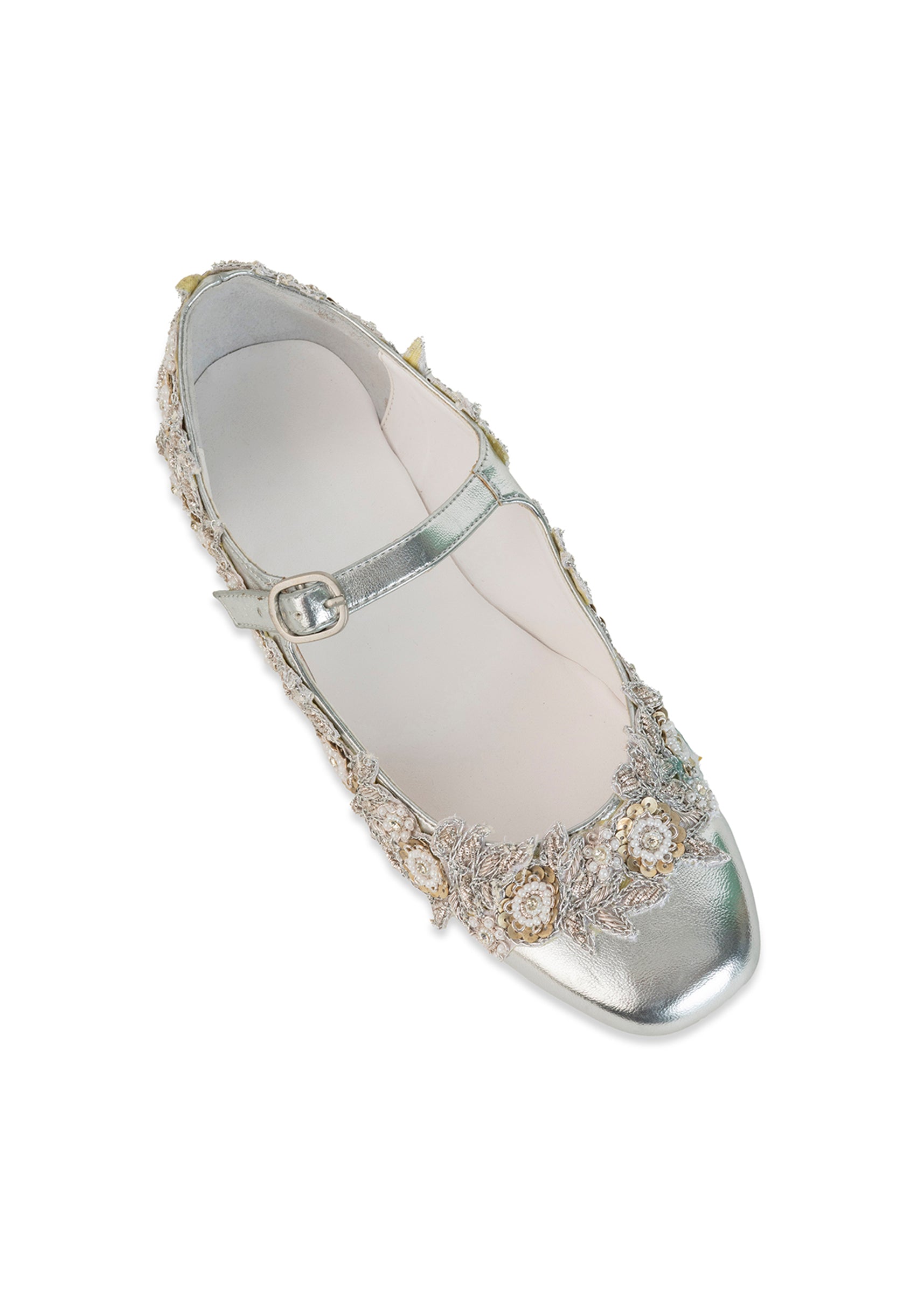 Begin every festive moment with silver juttis beautifully adorned in intricate hand embroidery featuring pearls, sequins, and metallic threads that create delicate floral motifs. Crafted from smooth faux leather, they blend traditional finesse with a polished contemporary finish. Soft lace accents and shimmering embellishment add an ethereal touch ideal for weddings and elegant celebrations. Awarded as the Most Trusted Brand, we're delivering styles you love, just as promised.