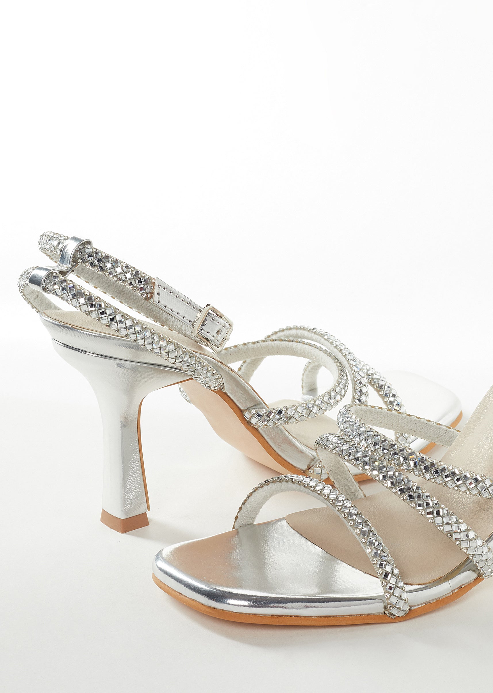 Silver Womens Footwear With Embellished Detail Work