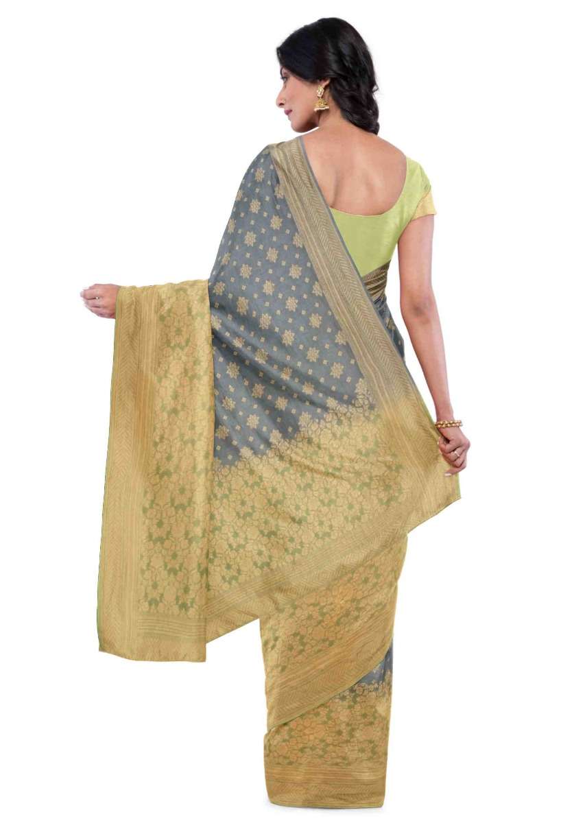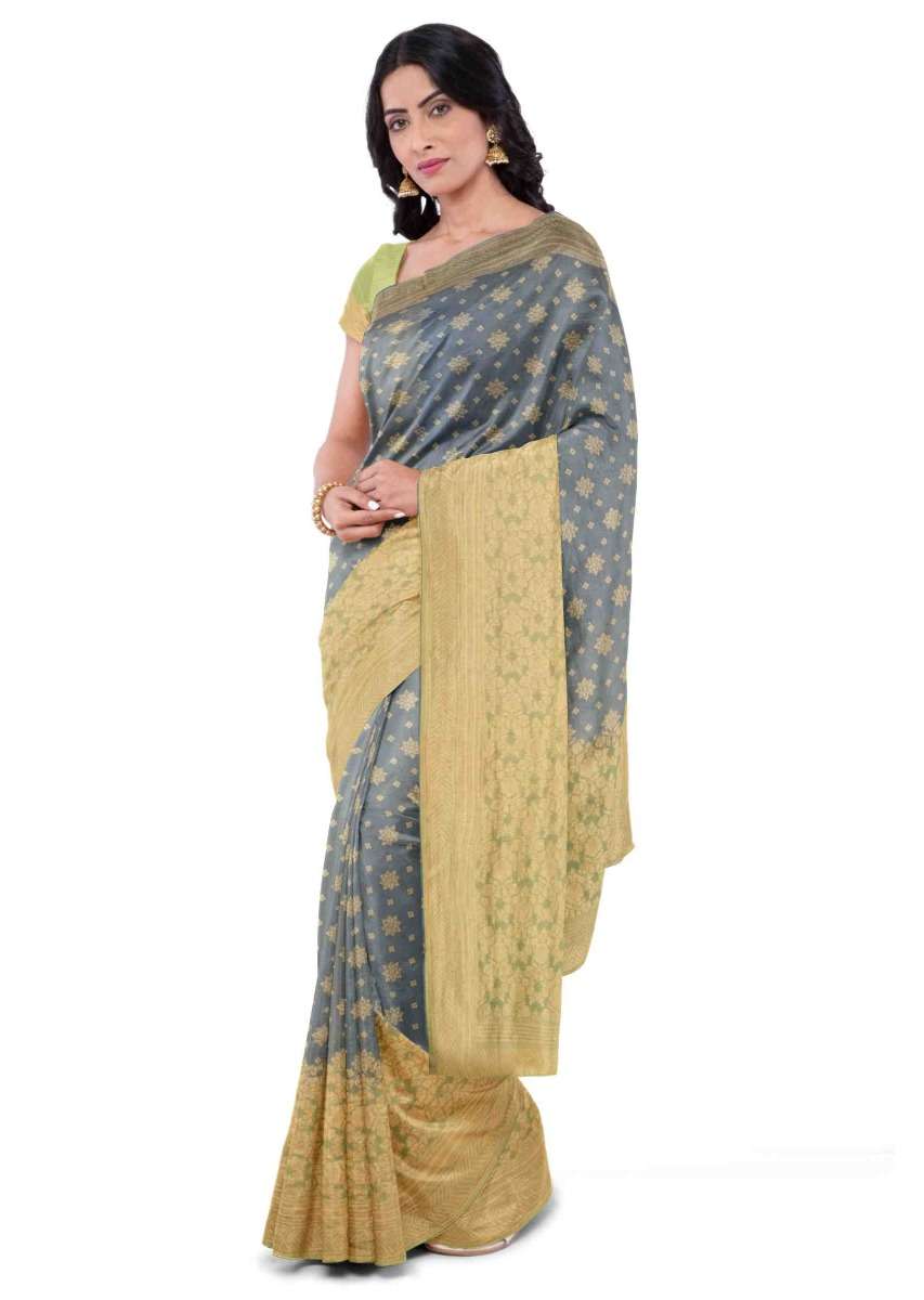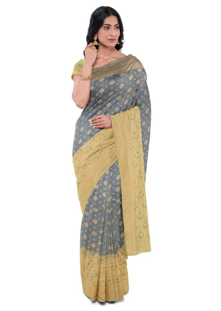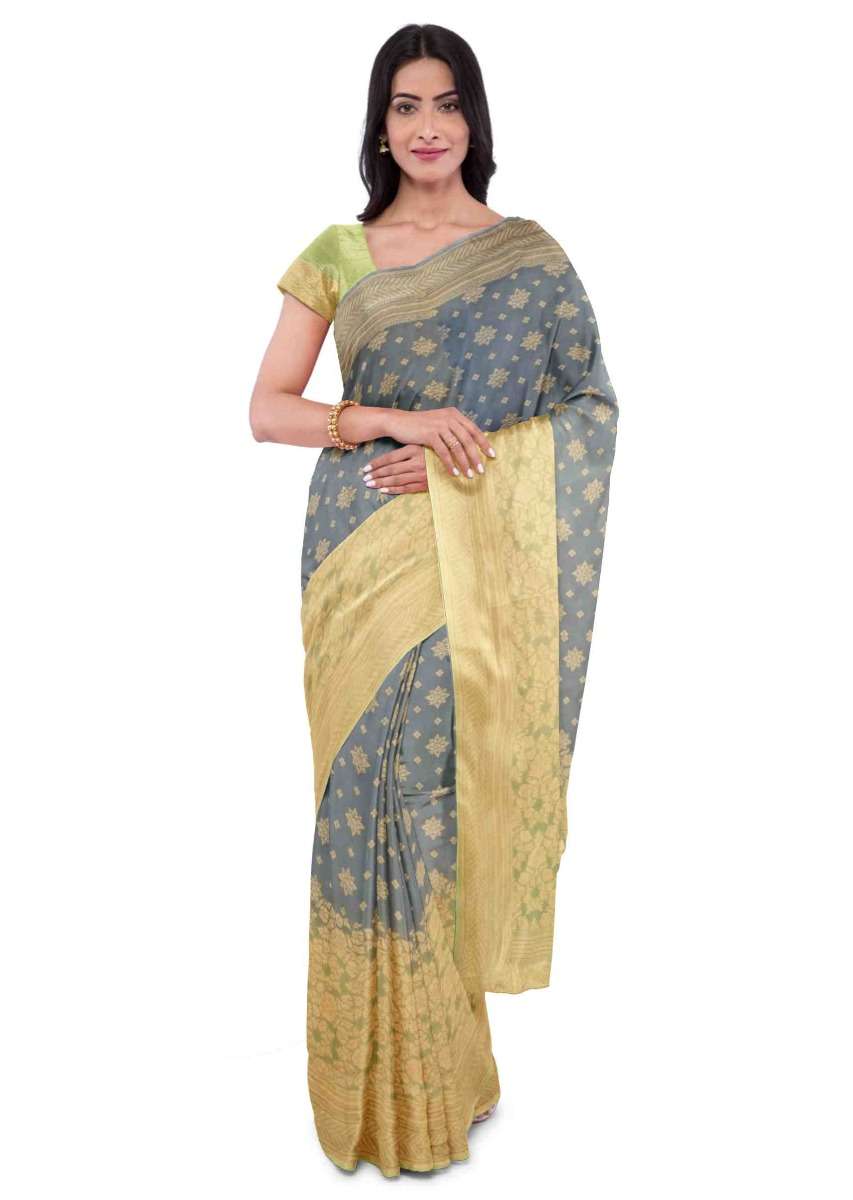 Spruce Blue Banarasi Saree In Georgette With Weaved Floral Buttis Online - Kalki Fashion
