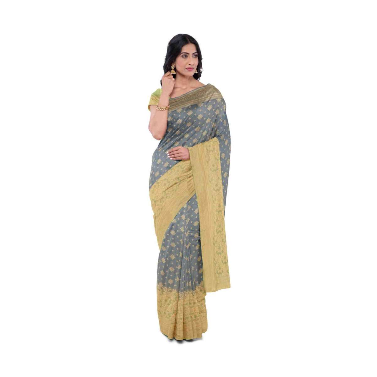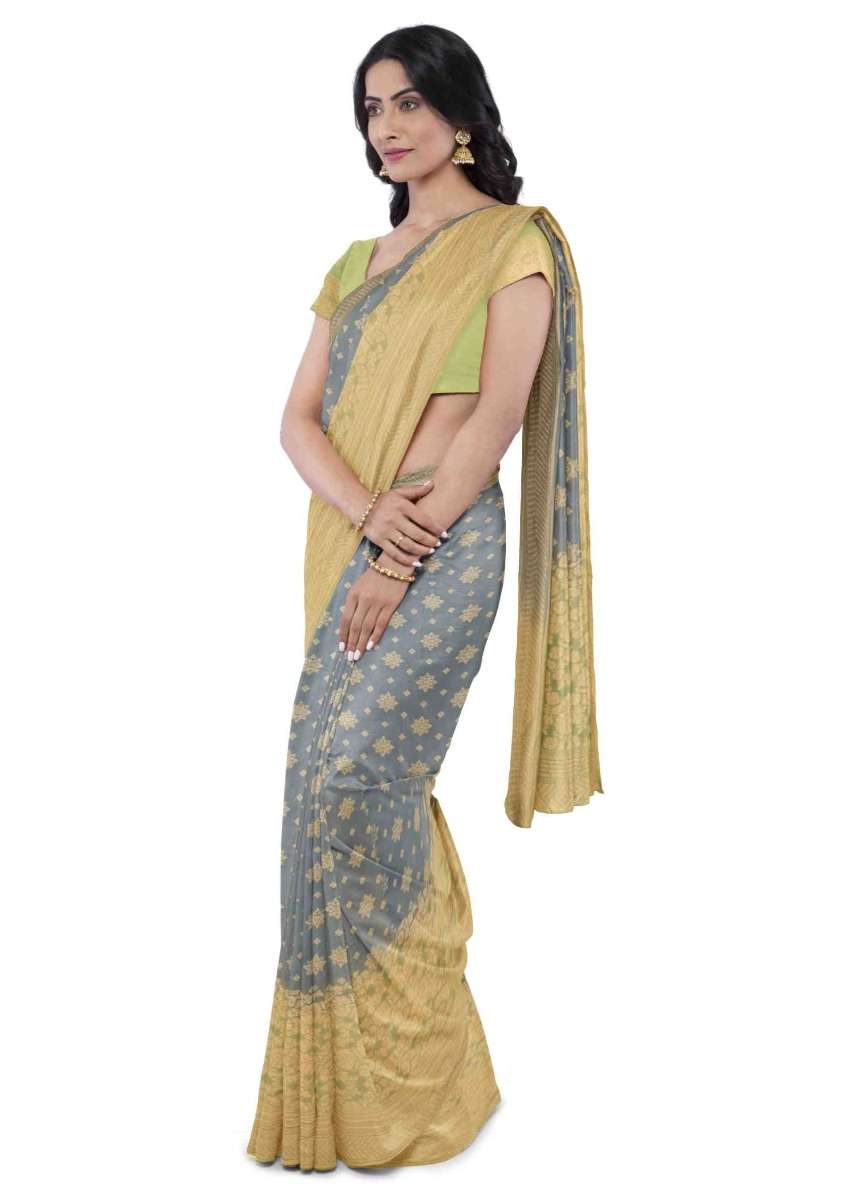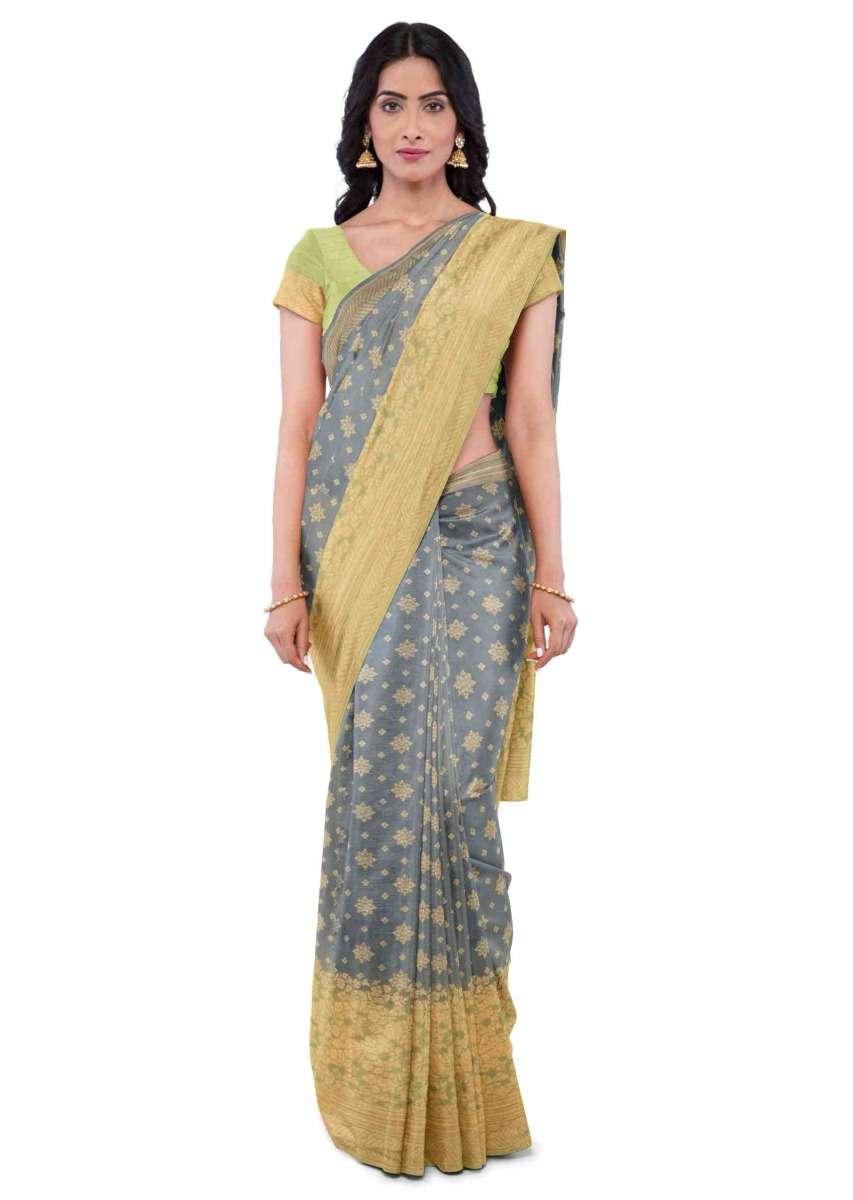 Spruce Blue Banarasi Saree In Georgette With Weaved Floral Buttis Online - Kalki Fashion
