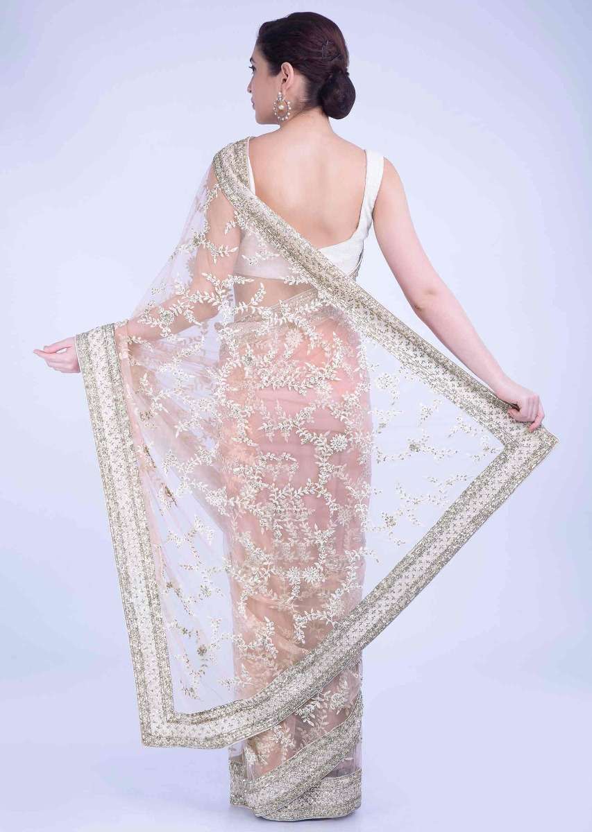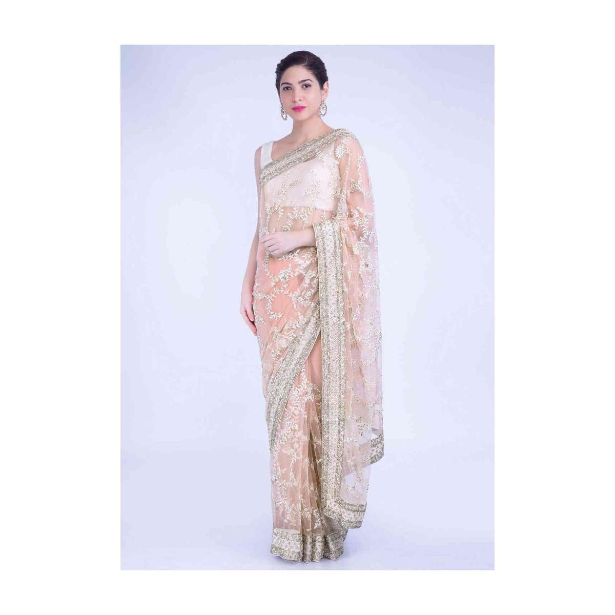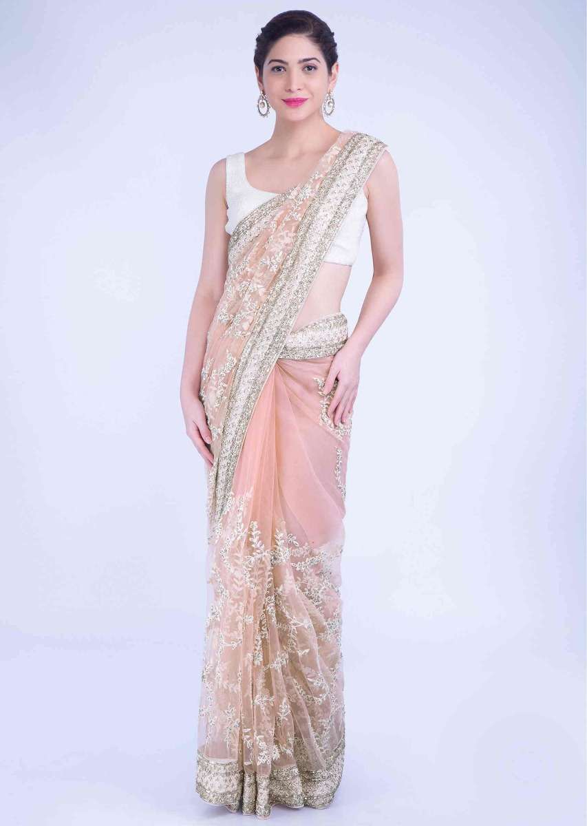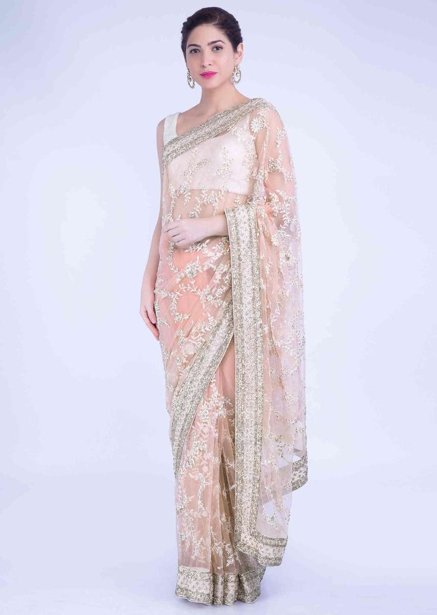 Starfish Peach Saree In Net With Matching Unstitched Blouse Piece Online - Kalki Fashion