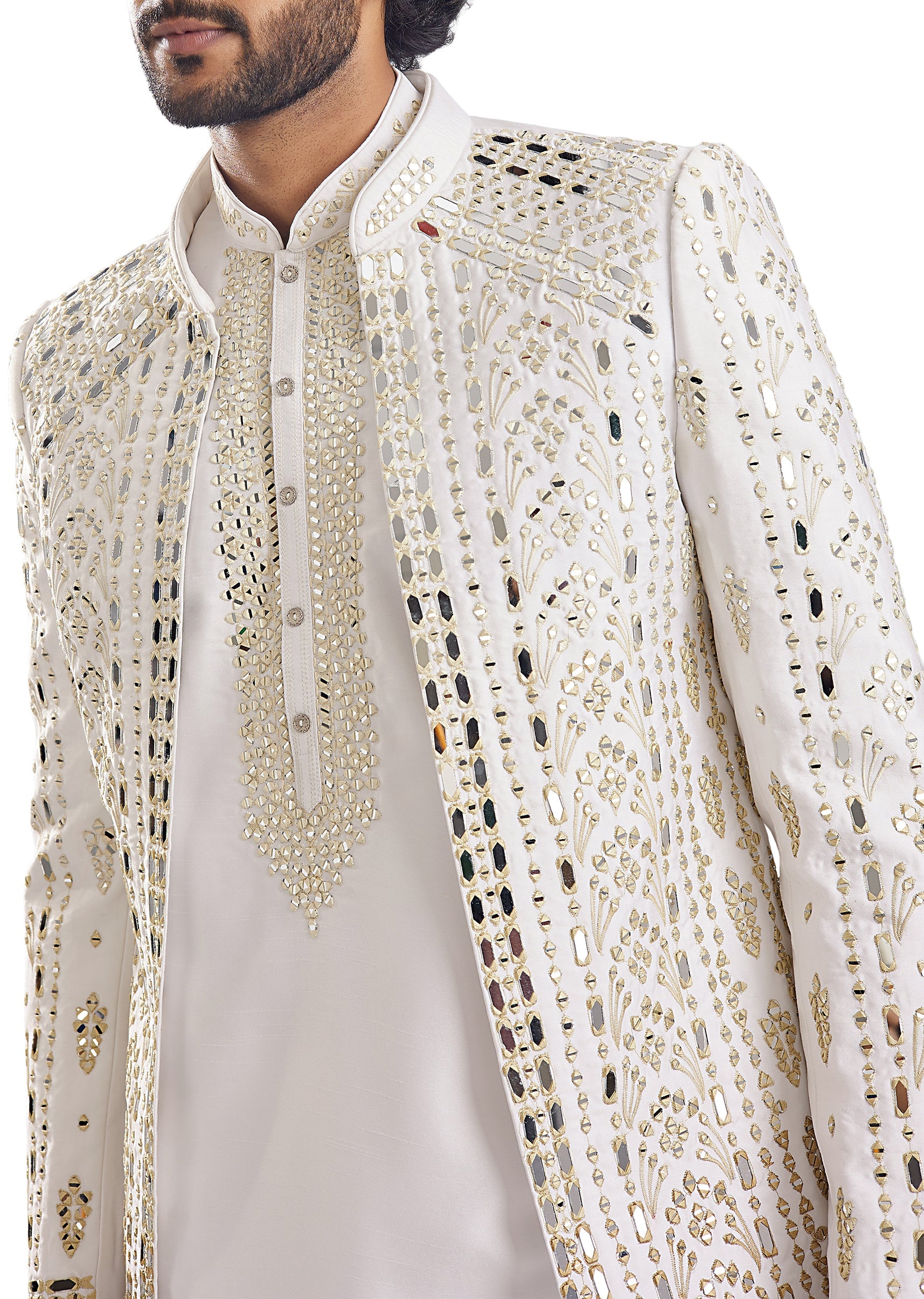 Fit Tips:Yellow works best when the sherwani fits cleanly at the shoulders — ensure your shoulder width measurement is accurate to avoid a droopy or overly stiff fit.