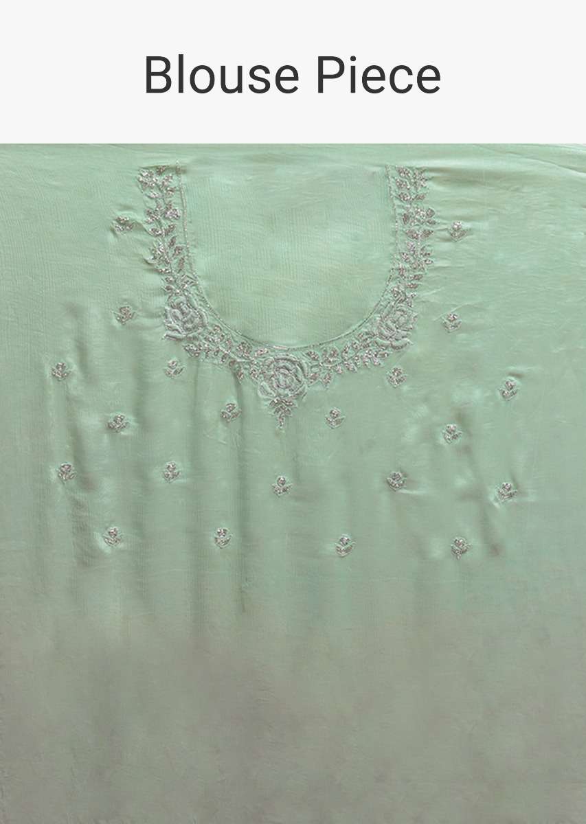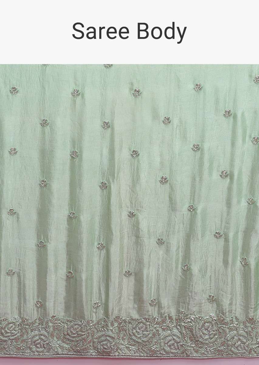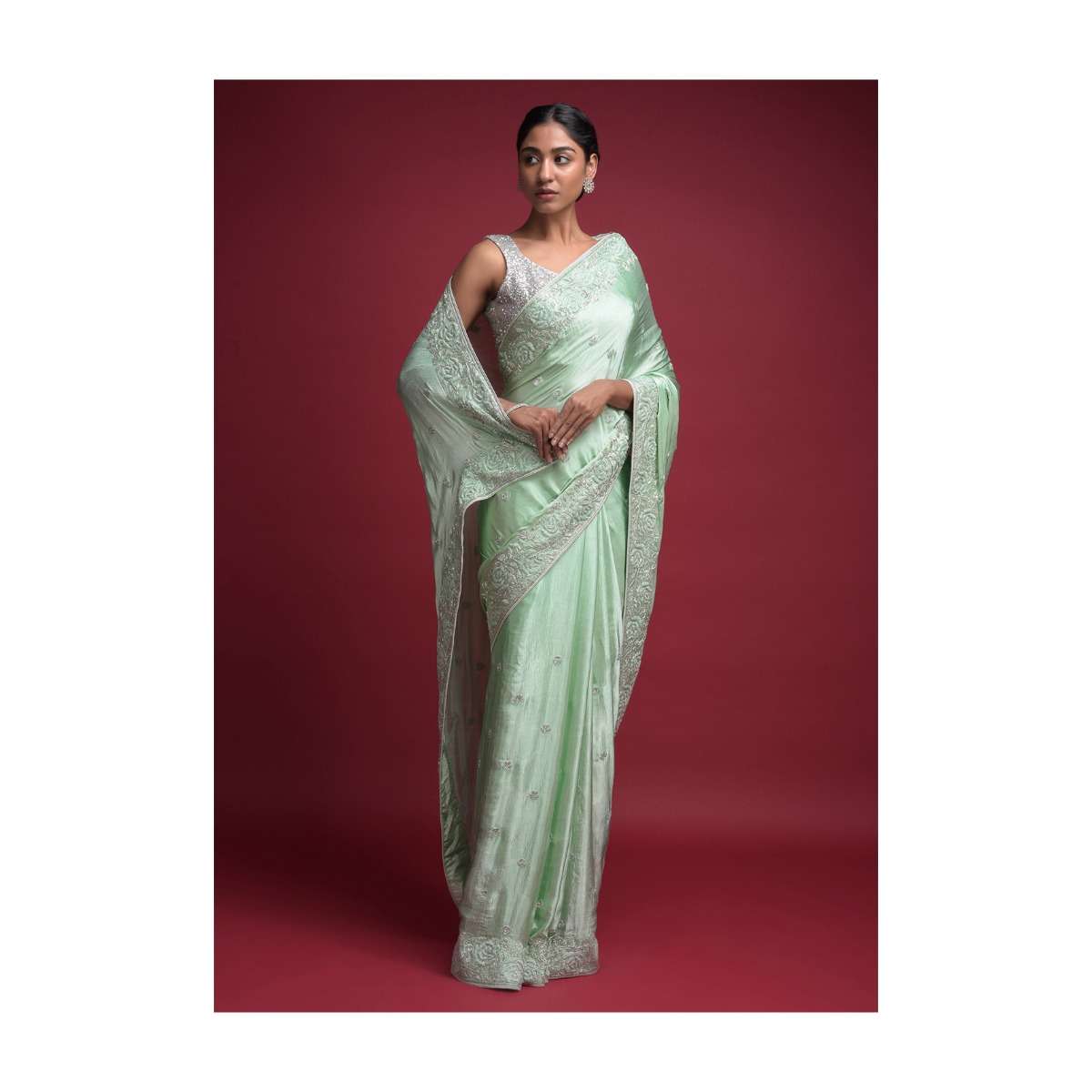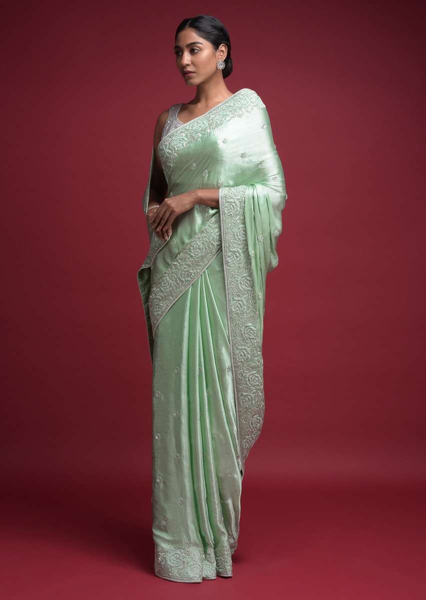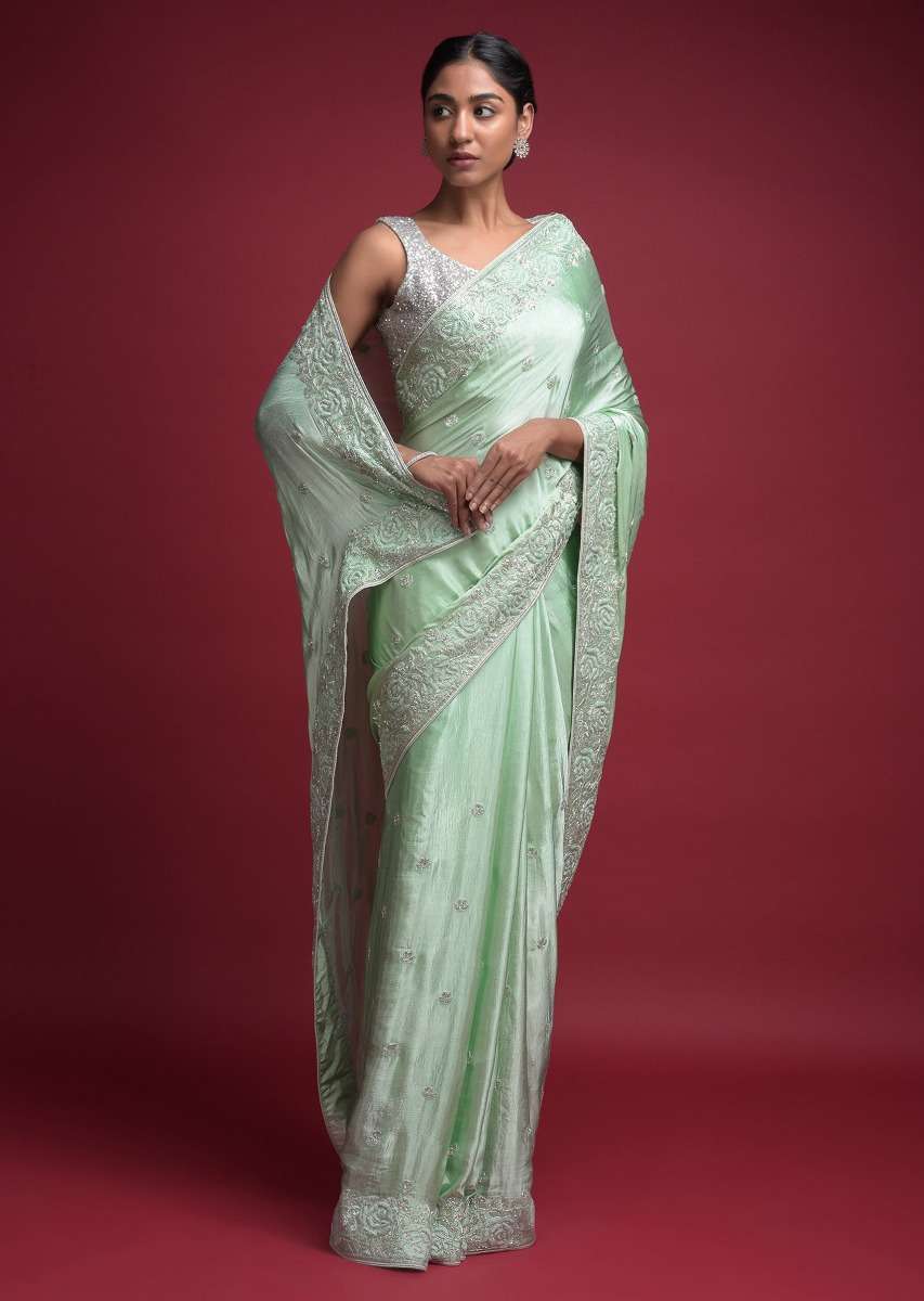 Surf Green Saree In Satin Chiffon With Cut Dana And Resham Embroidered Floral Pattern Online - Kalki Fashion