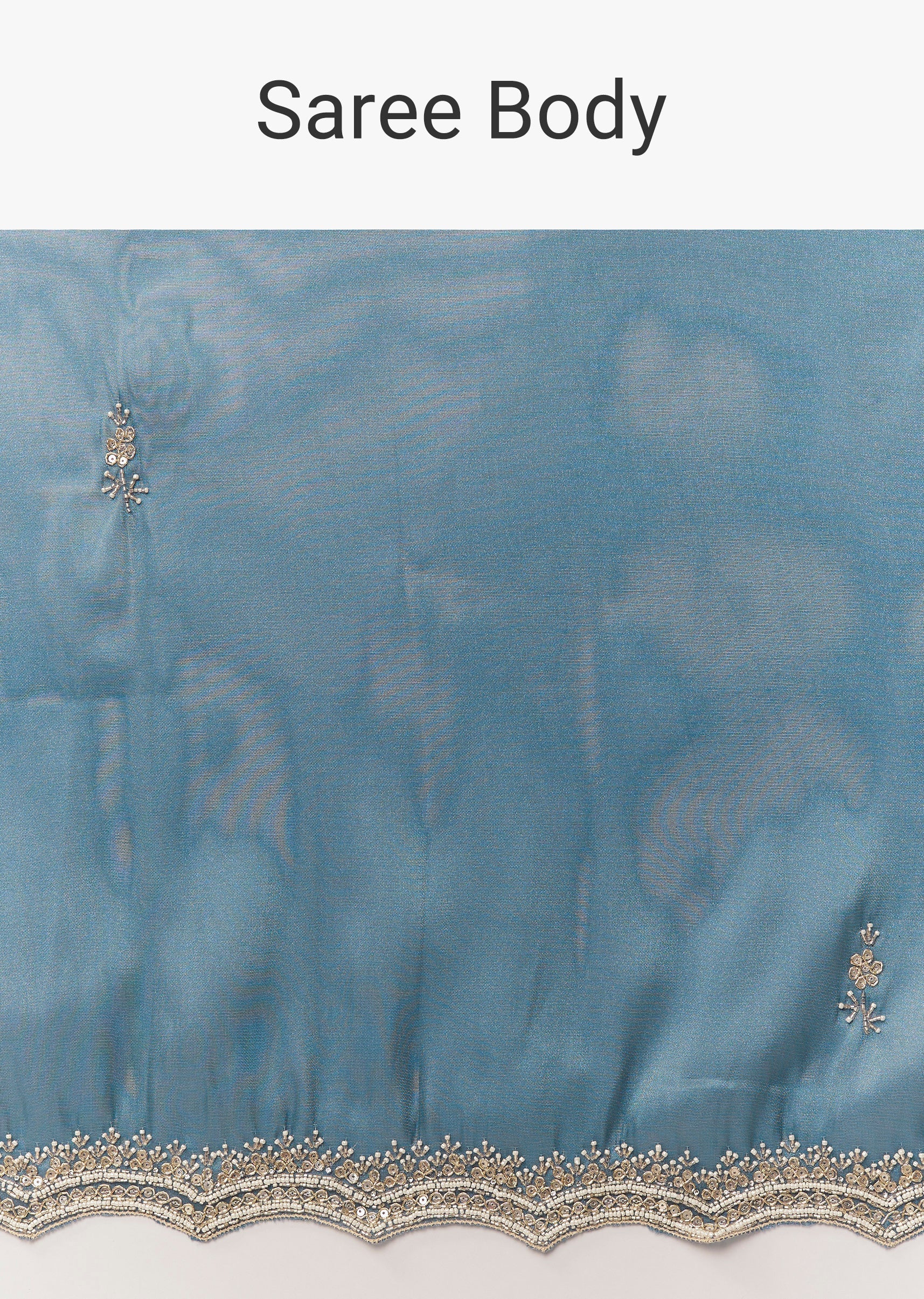 Teal Blue Organza Saree With Cutdana Beads And Sequin Embroidery