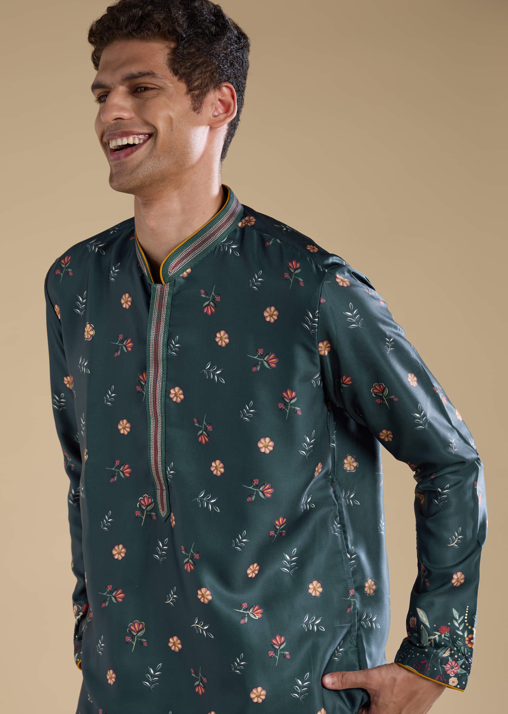 Fit Tips:Ensure a tailored fit through the shoulders and chest to highlight the kurta’s sleek structure and intricate floral detailing.