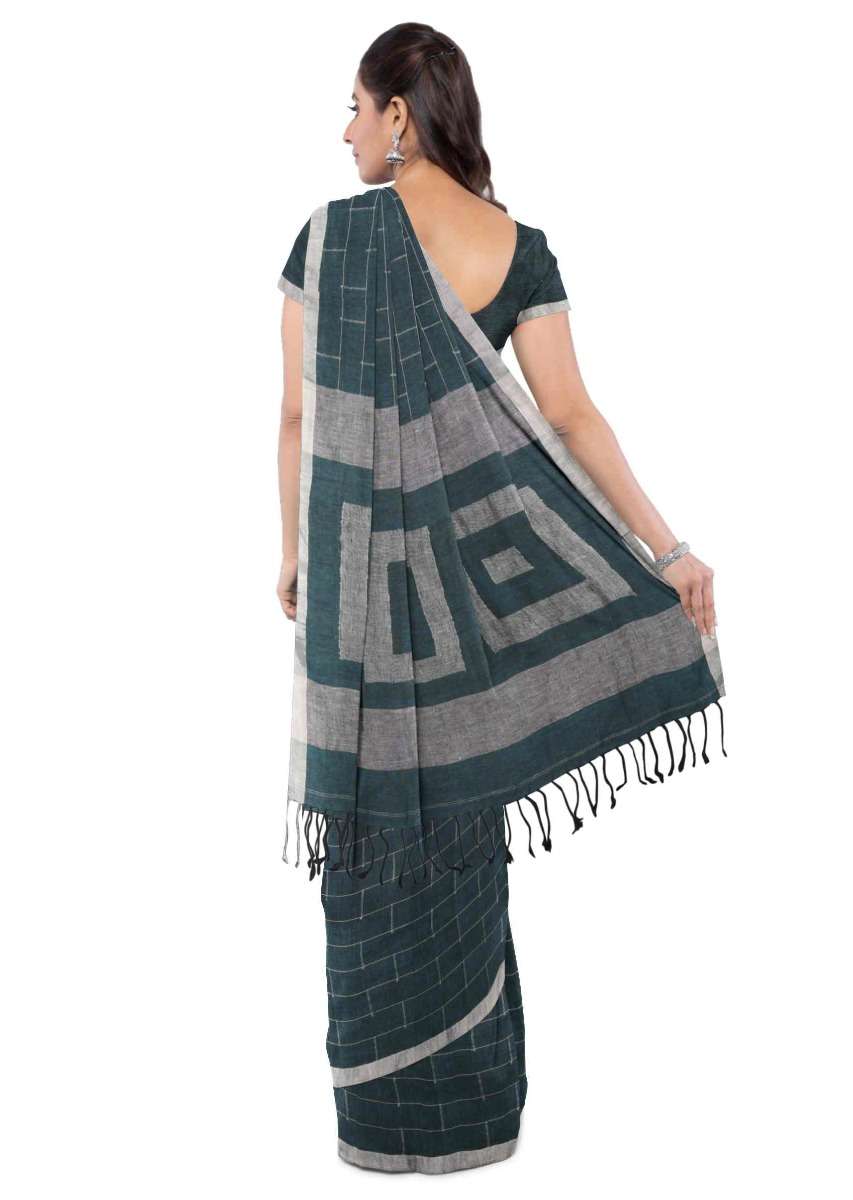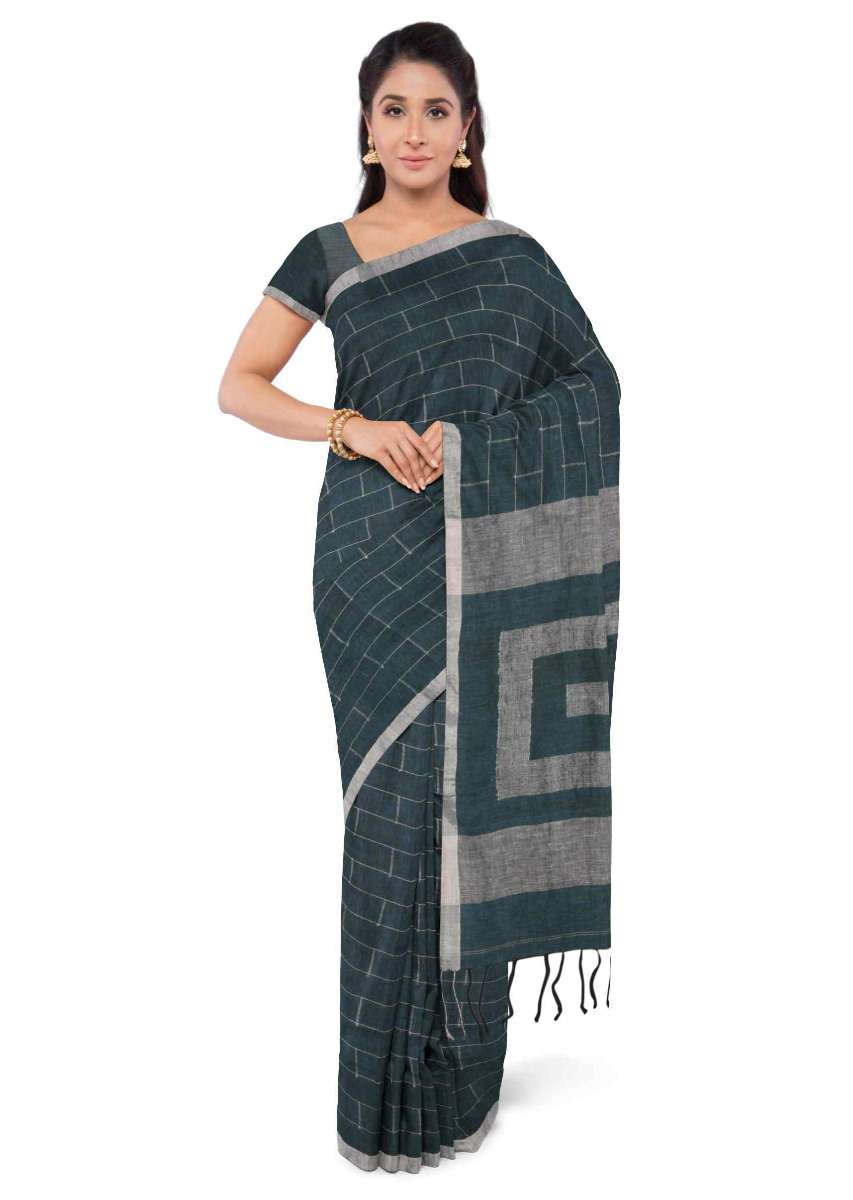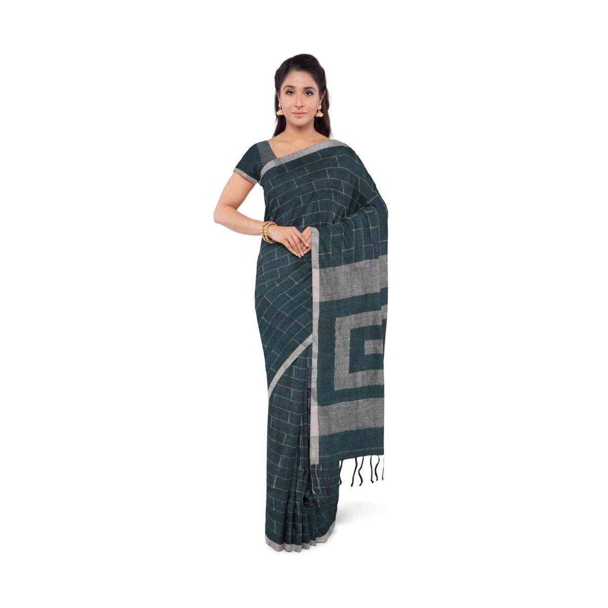 Teal Green Saree In Jute Cotton With Weaved Brick Wall Pattern Online - Kalki Fashion