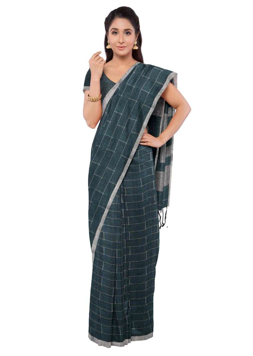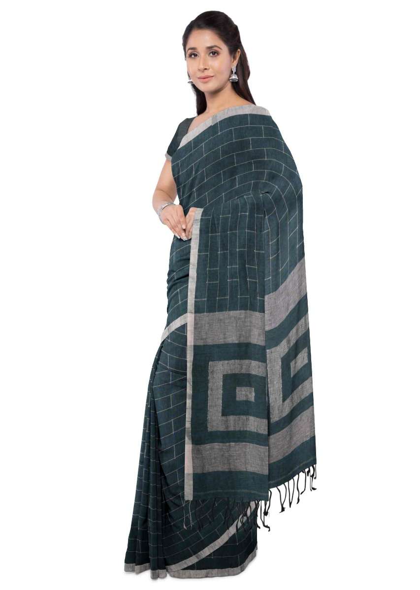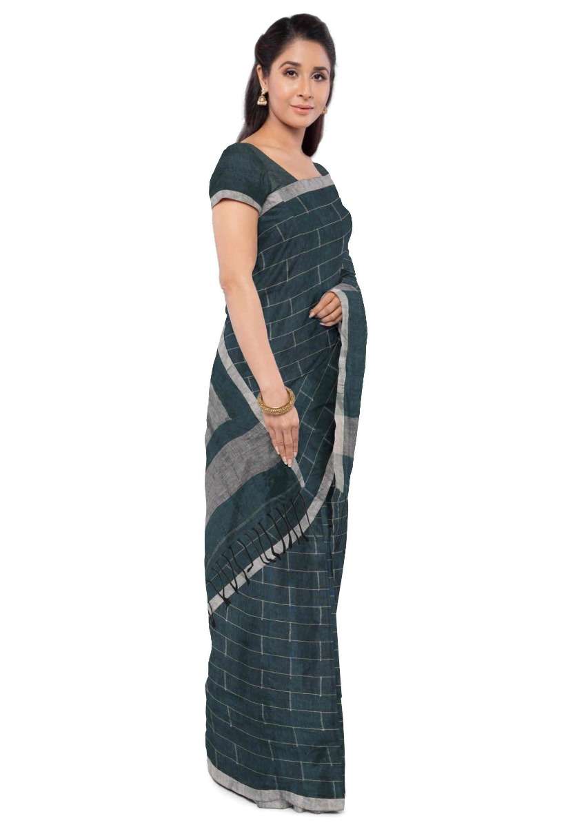 Teal Green Saree In Jute Cotton With Weaved Brick Wall Pattern Online - Kalki Fashion