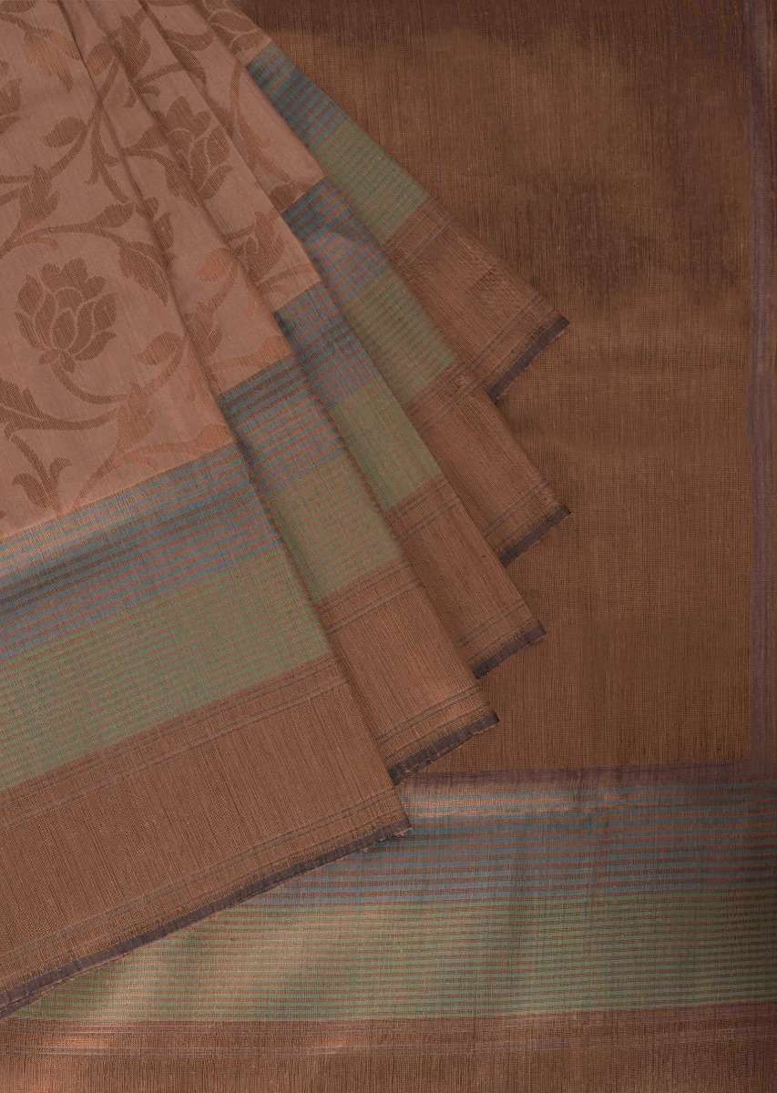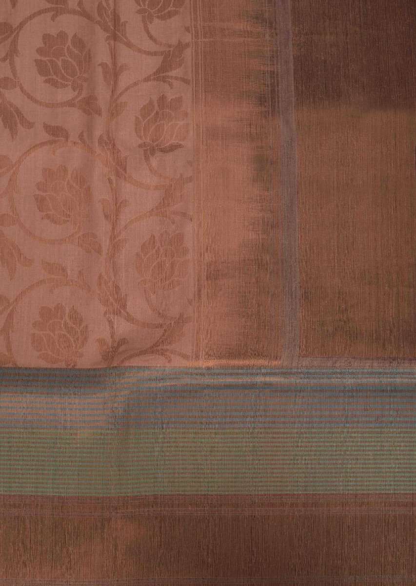 Trusty Tan Beige Banarasi Saree In Tussar Silk With Floral Jaal Weave Pattern Online - Kalki Fashion
