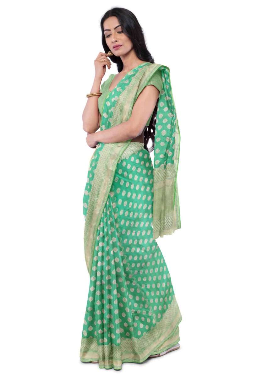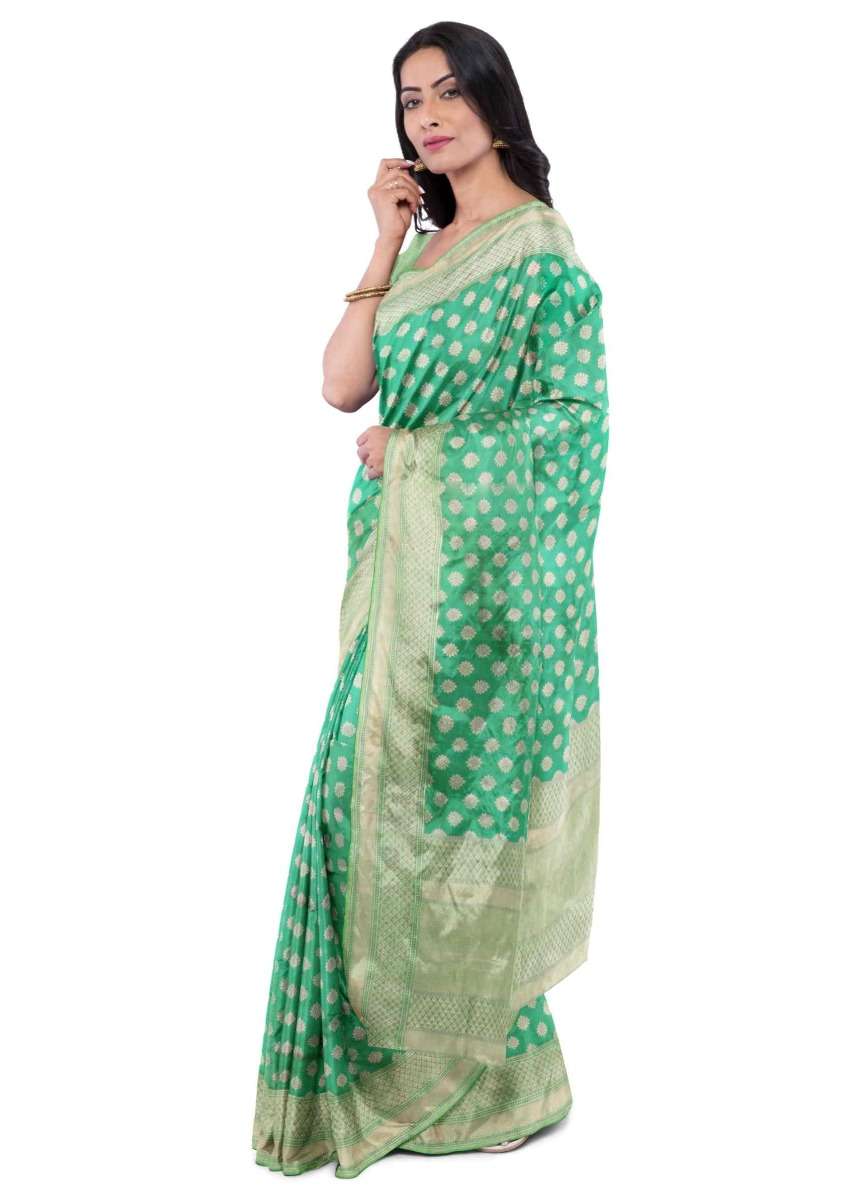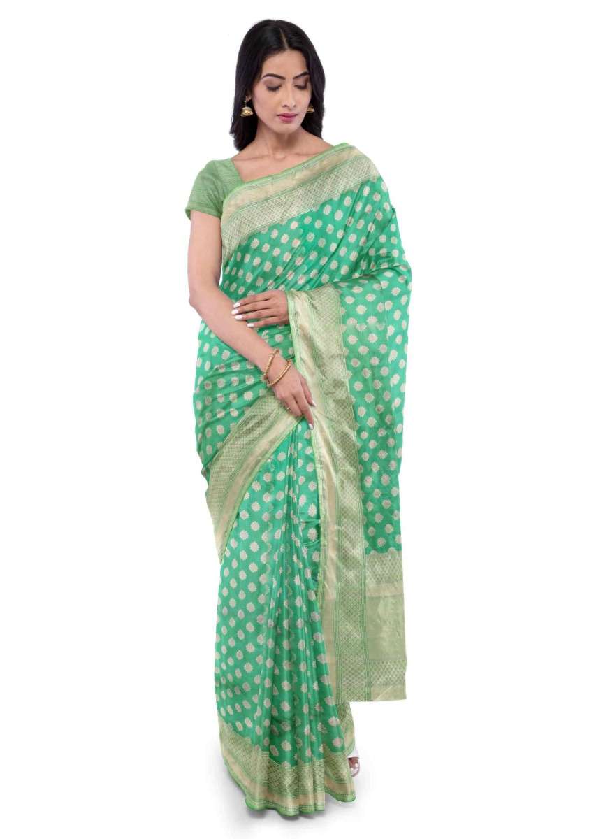 Turq Saree In Banarasi Silk With Weaved Floral Buttis Online - Kalki Fashion
