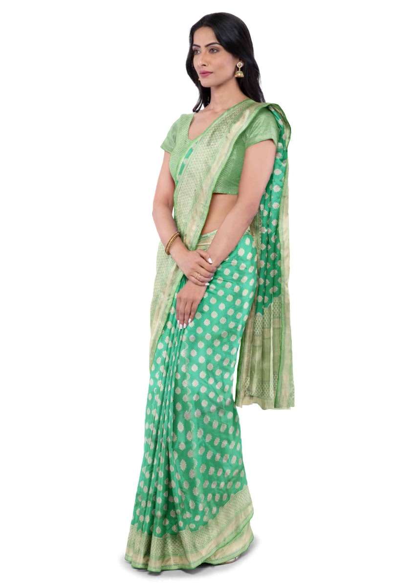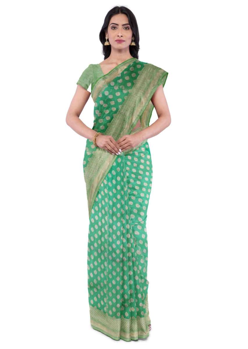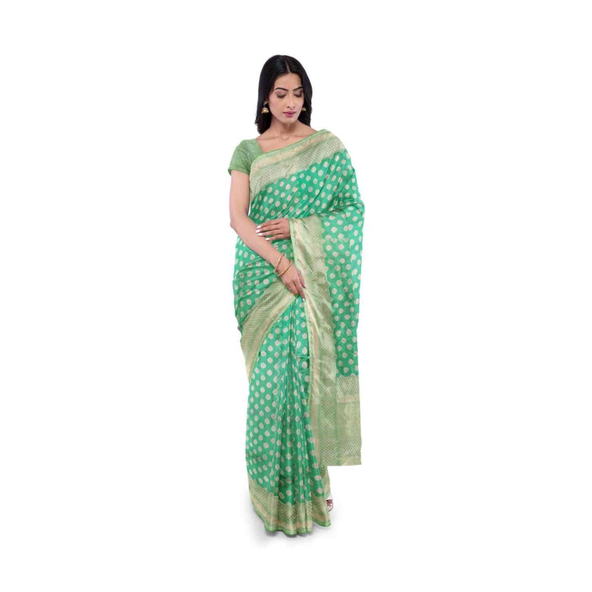 Turq Saree In Banarasi Silk With Weaved Floral Buttis Online - Kalki Fashion