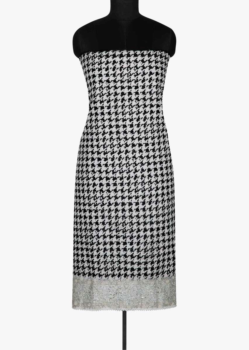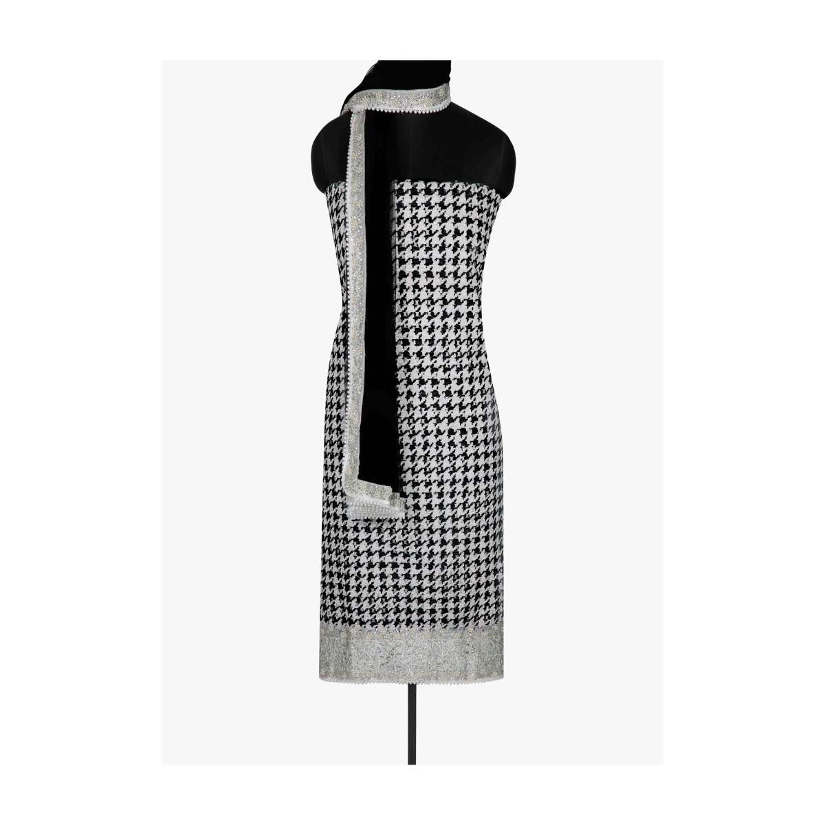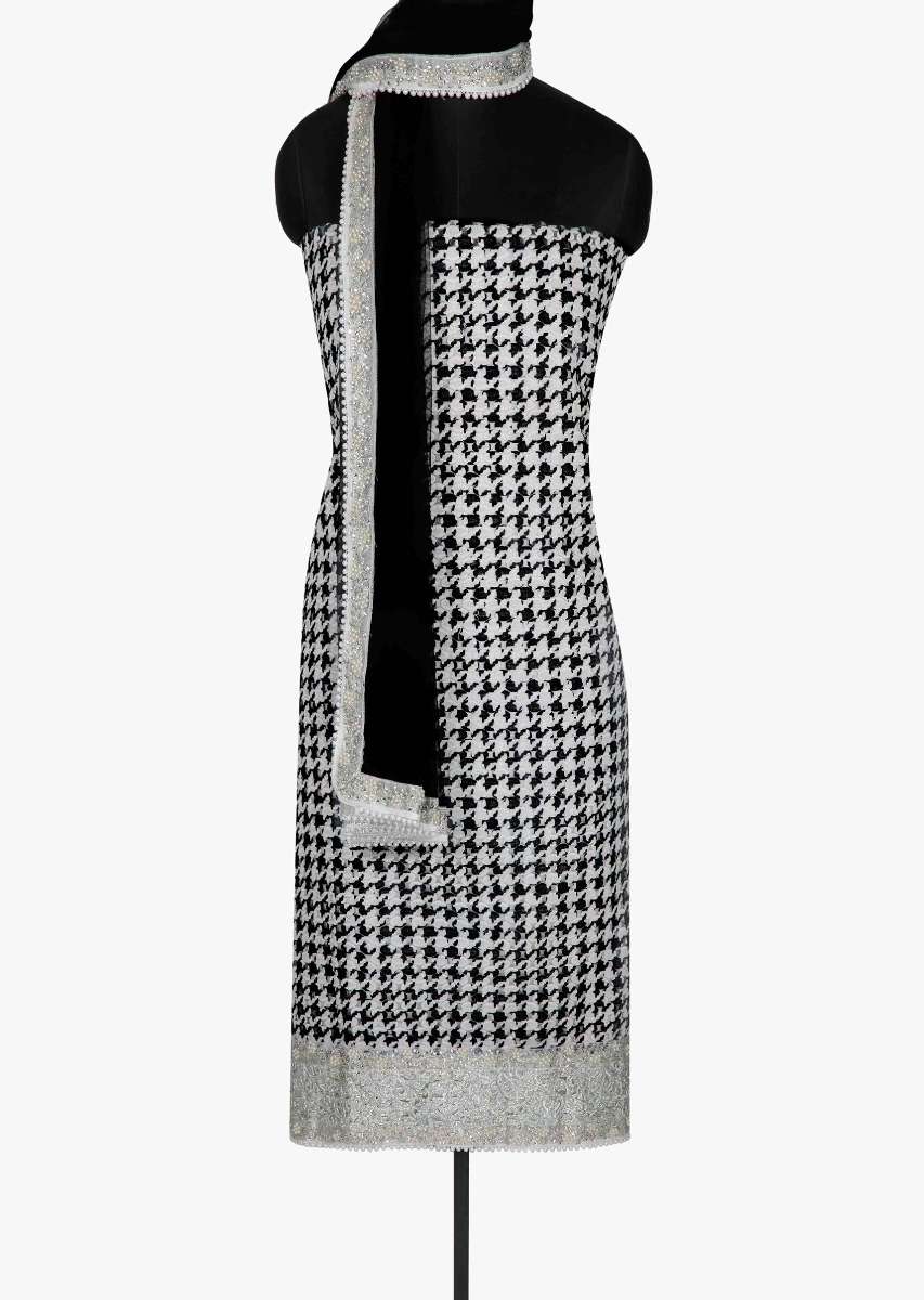 Unstitched suit in black and white embellished in zari cut work only on Kalki