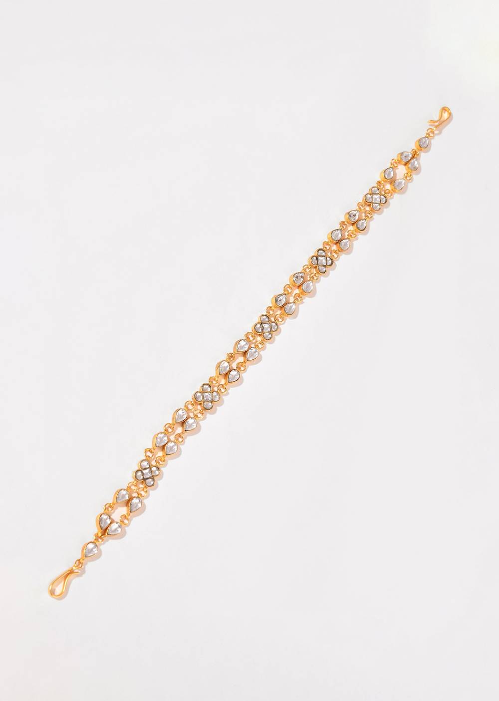 This white and gold Kundan encrusted mathapatti shines with intricate detailing that adds a luminous, regal touch. Its elegant design frames the face beautifully, creating a classic bridal and festive... More Product Details