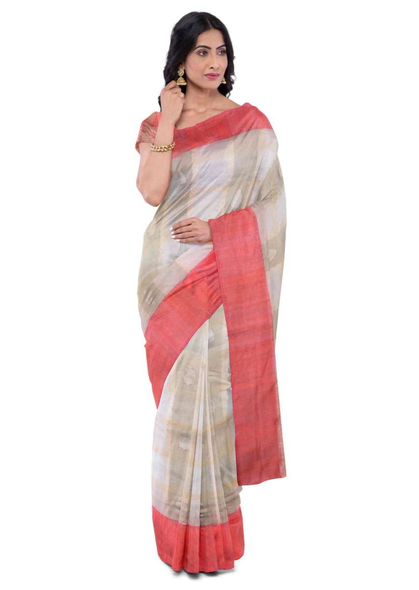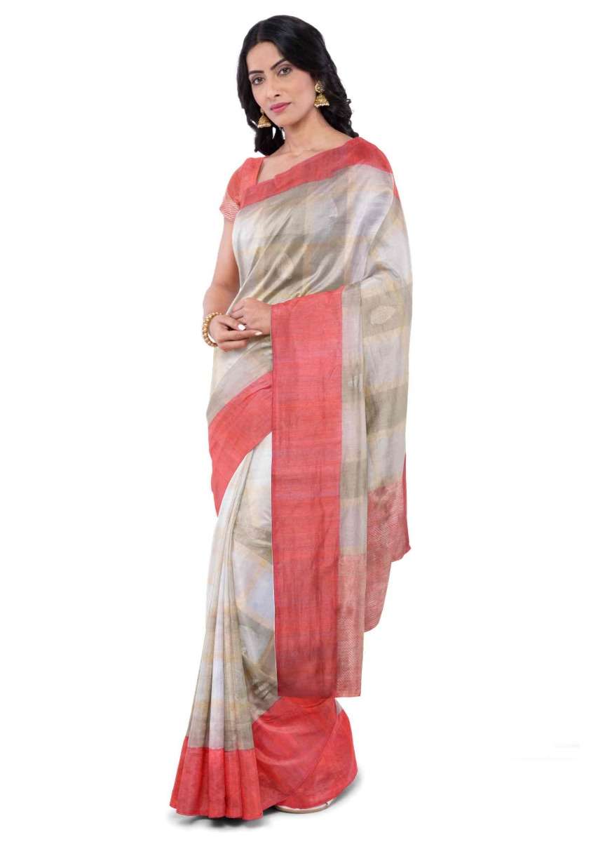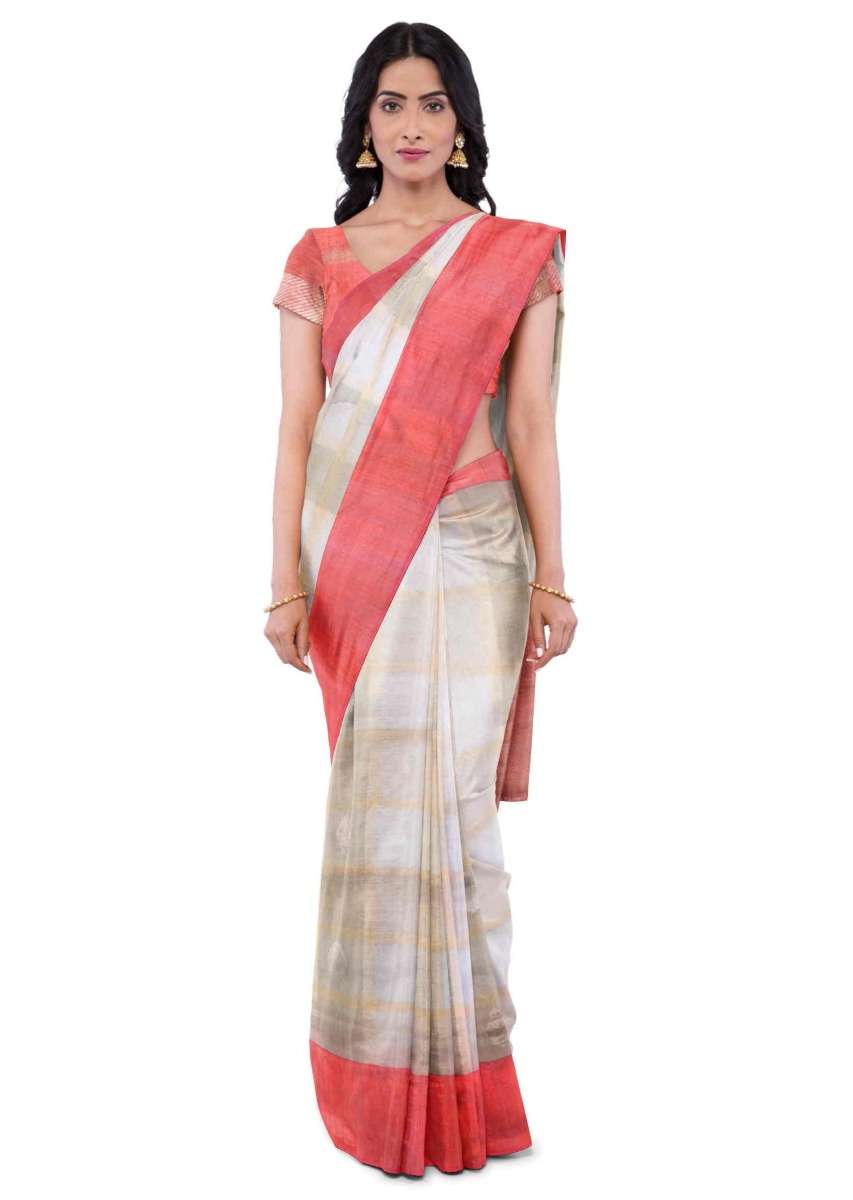 White Banarasi Saree With Weaved Buttis And Checks Pattern Online - Kalki Fashion