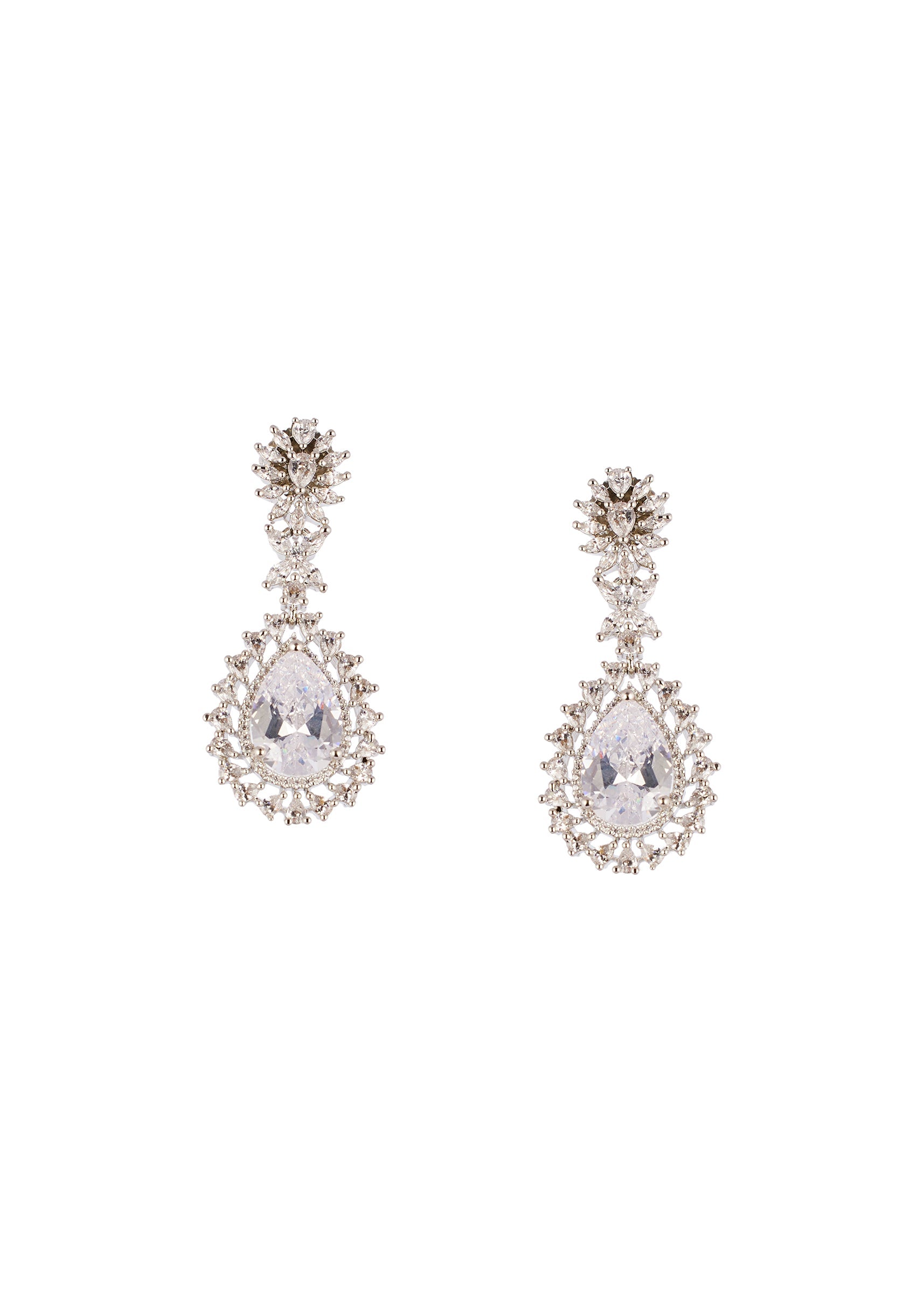 White Cz Diamond Long Necklace Set In Brass with Anti Tarnish Finish