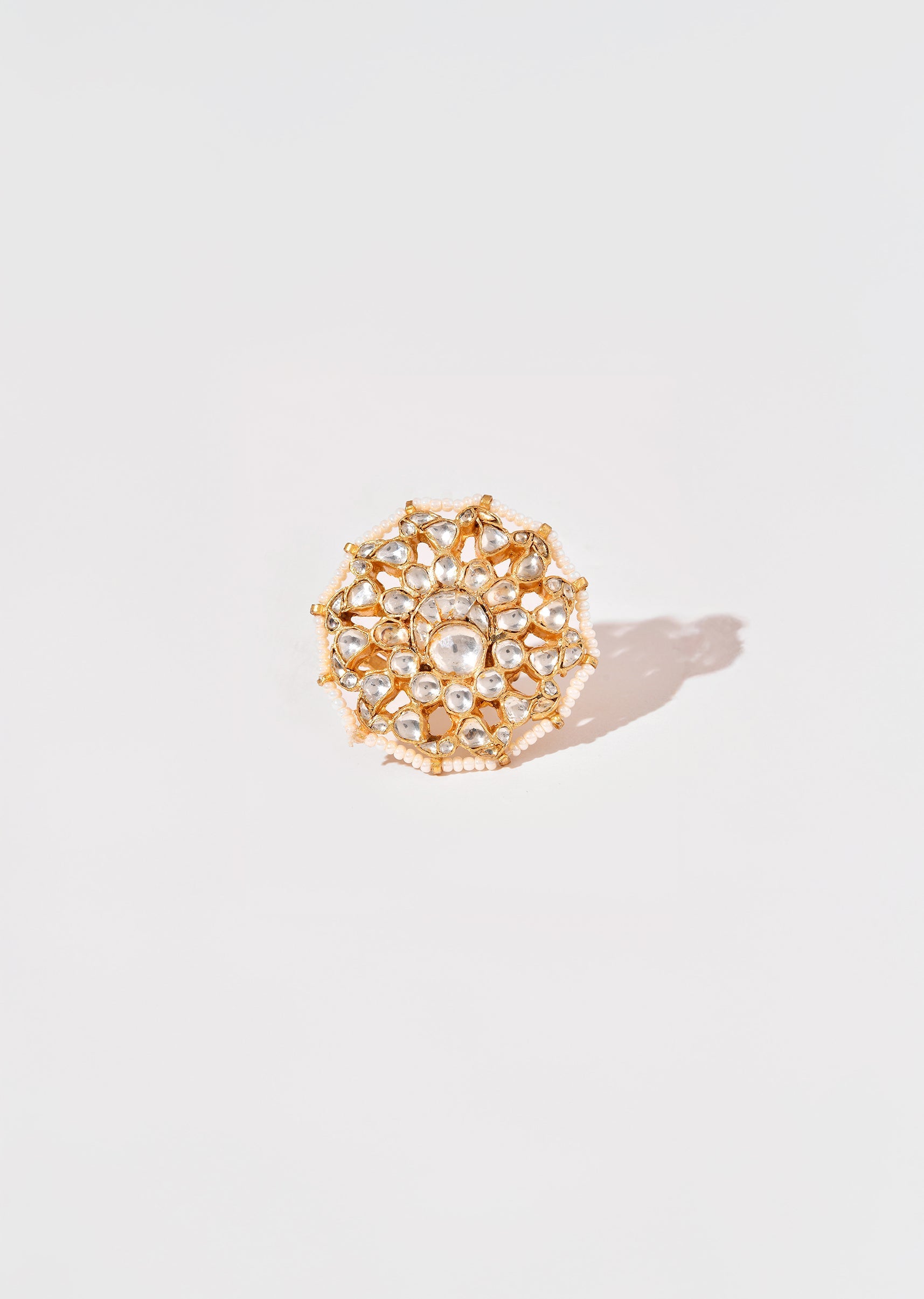 Add delicate elegance to your look with this white floral kundan ring, finished with a charming bead border for a refined traditional touch. Perfect for festive occasions or weddings, it brings a soft, graceful sparkle to any outfit.Awarded as the Most Trusted Brand, we're delivering styles you love, just as promised.