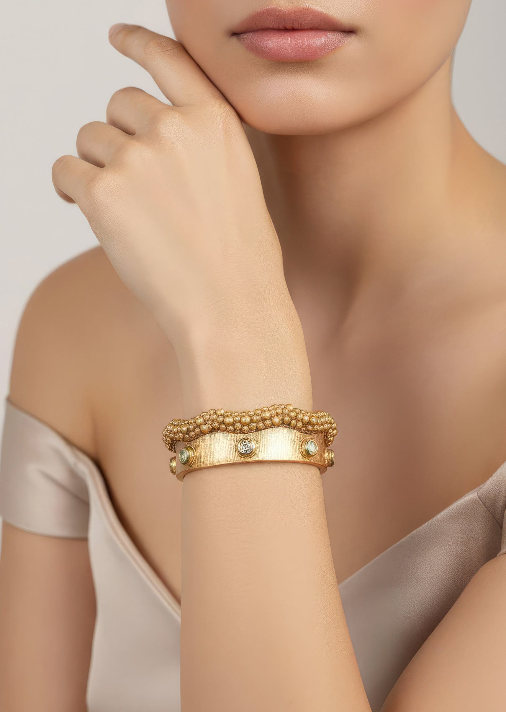 White Gold Kundan Bangles With Delicate Detail
