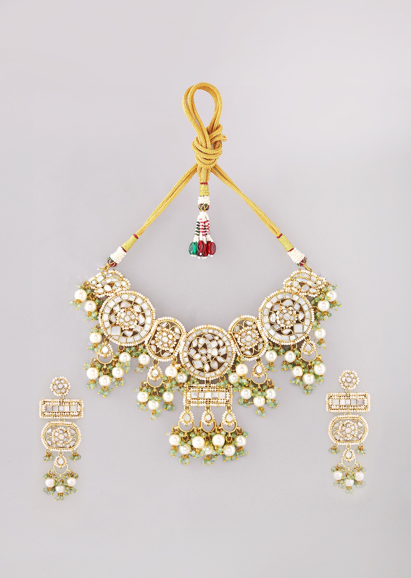 White Kundan Geometric Pendant Necklace and Earrings Set