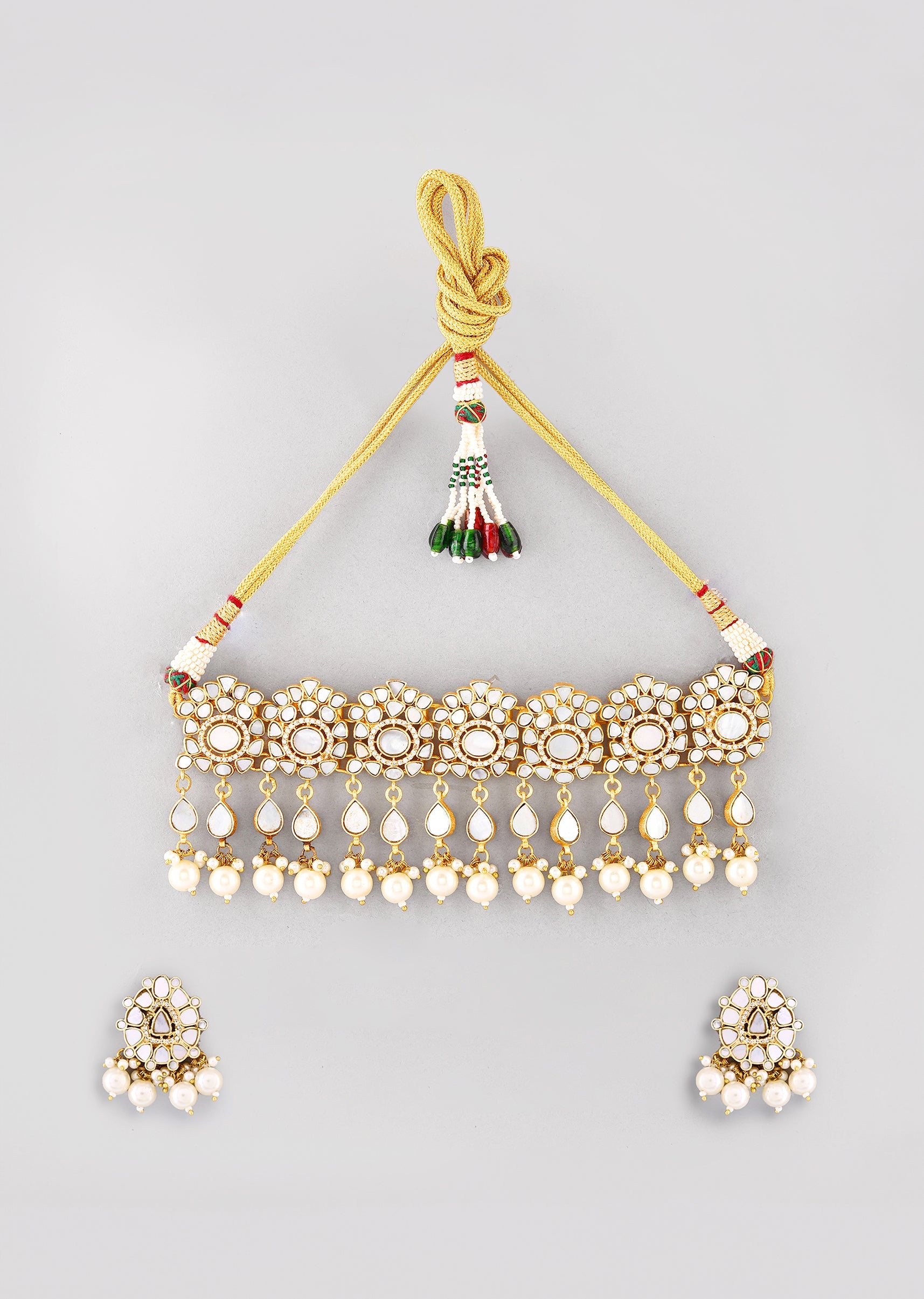 Elevate your festive style with this white kundan pendant necklace and earrings set, accented with elegant bead drops for a soft, graceful finish. Perfect for weddings or celebrations, it adds a timeless and refined charm to any traditional outfit.Awarded as the Most Trusted Brand, we're delivering styles you love, just as promised.